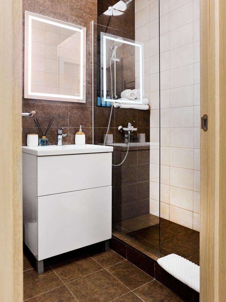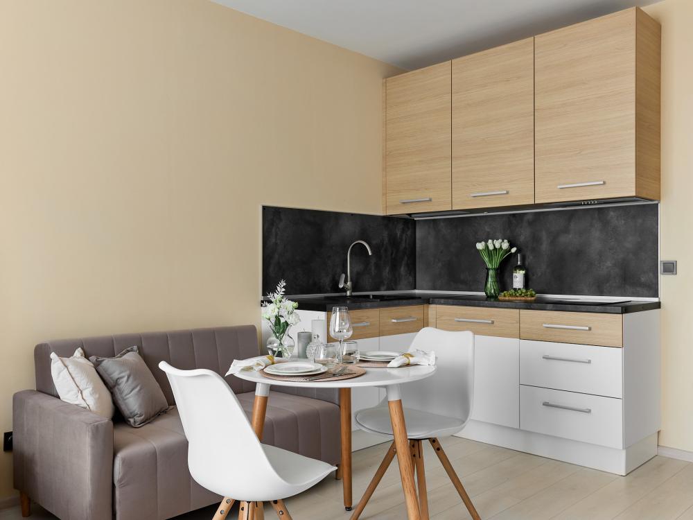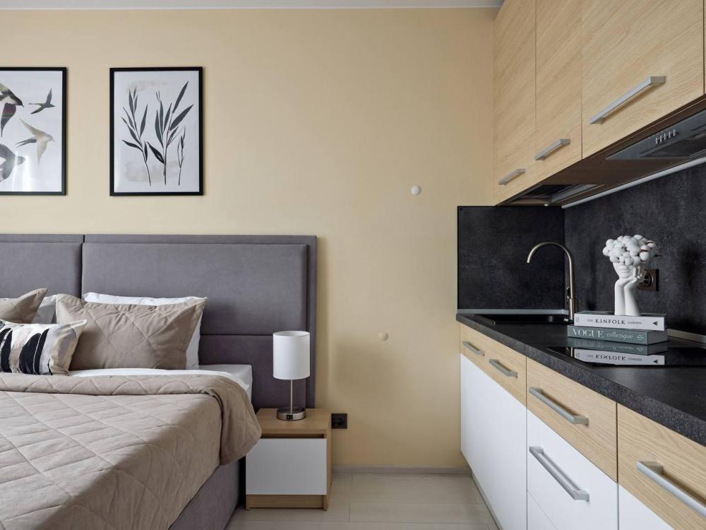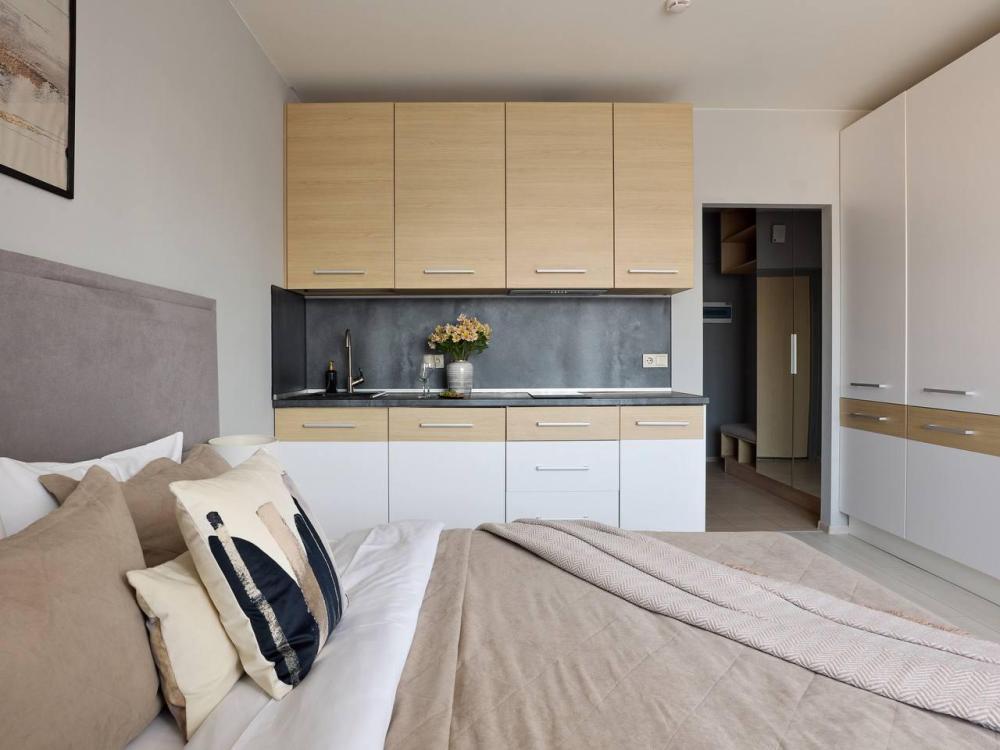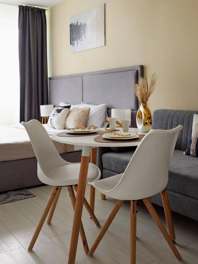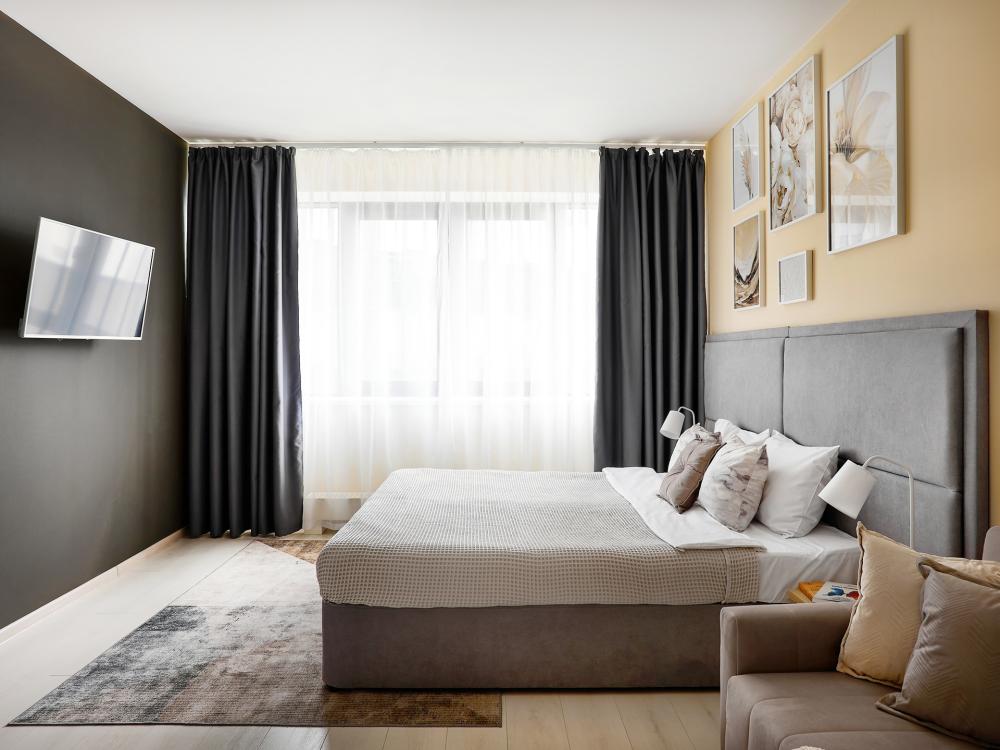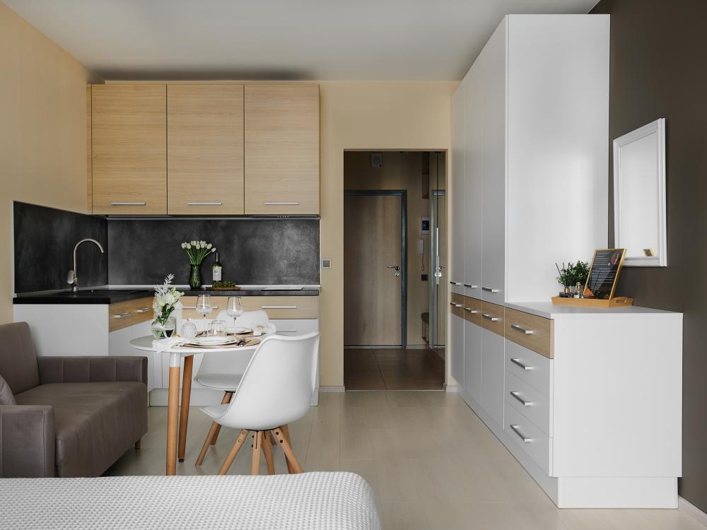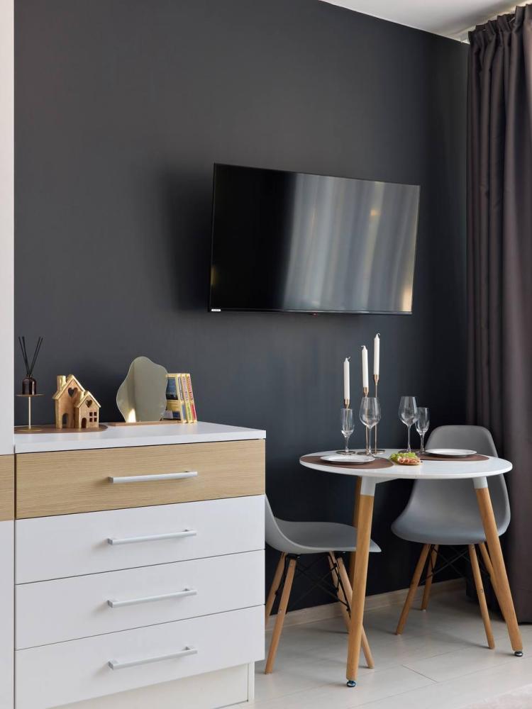 Апартаменты оборудованы всем необходимым для комфортного проживания: кровать 180х200, вместительные шкафы, вентилятор, индукционная плита, посудомоечная машина, чайник, СВЧ, холодильник, посуда и столовые приборы, стабильный wi-fi и телевизор, стиральная машина, сушилка для белья, гладильная доска, утюг, белоснежное постельное бельё высокого качества и полотенца, фен для волос, шампунь и бальзам для волос, гель для душа, одноразовые тапочки.