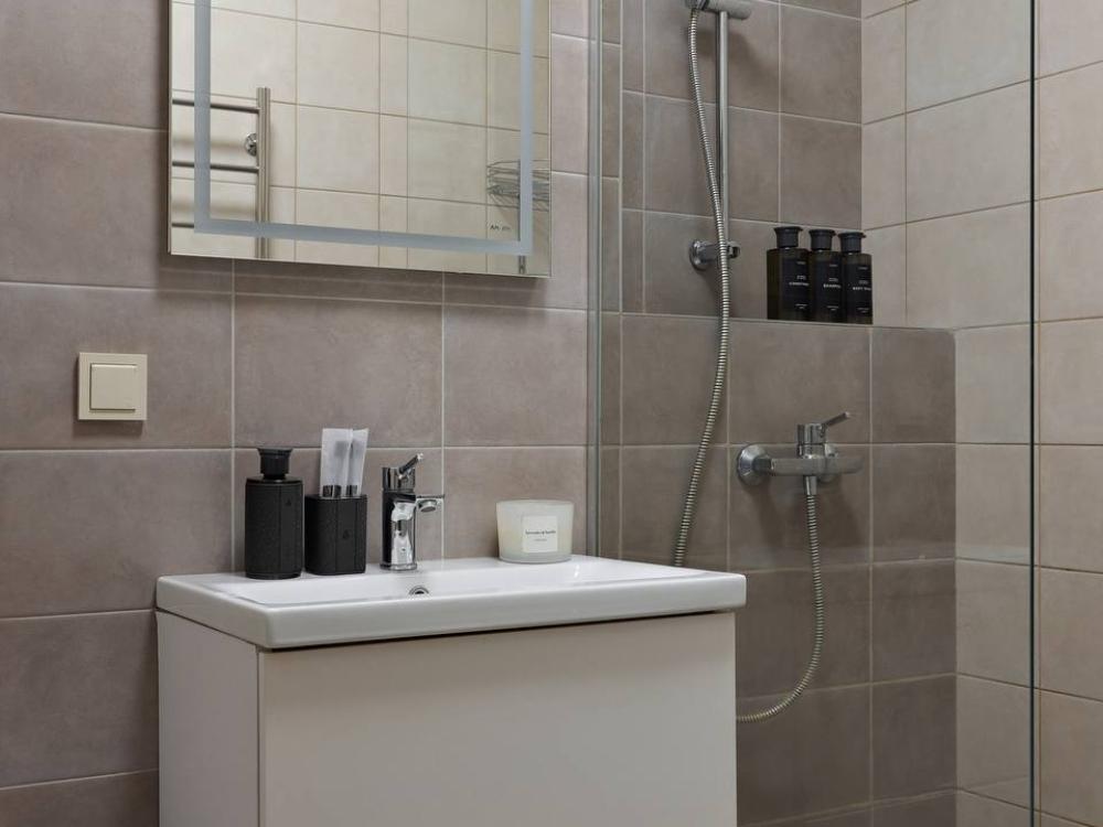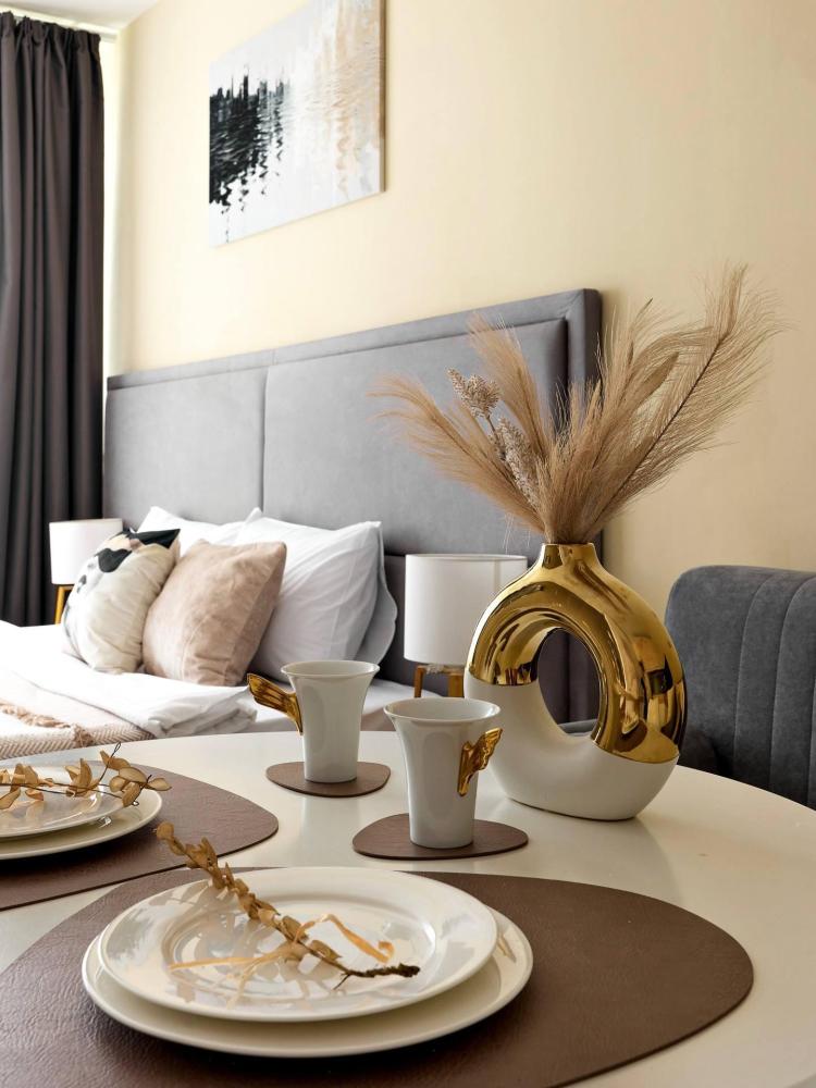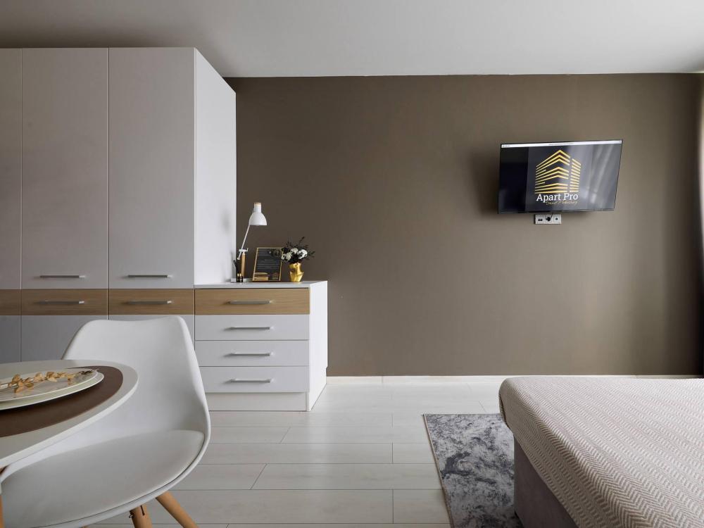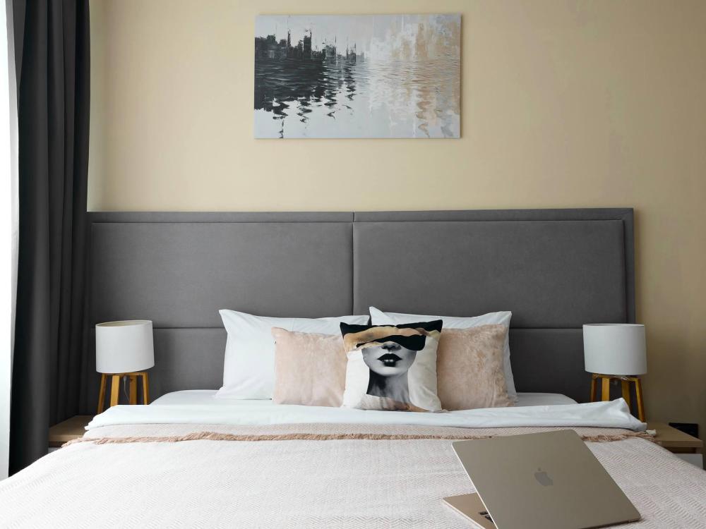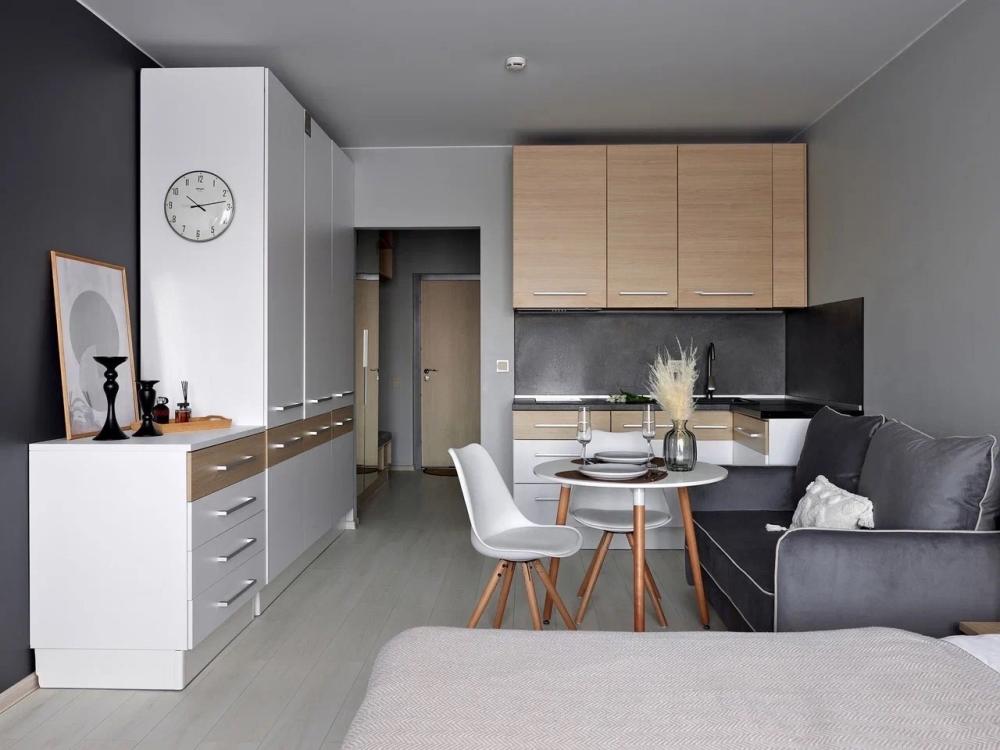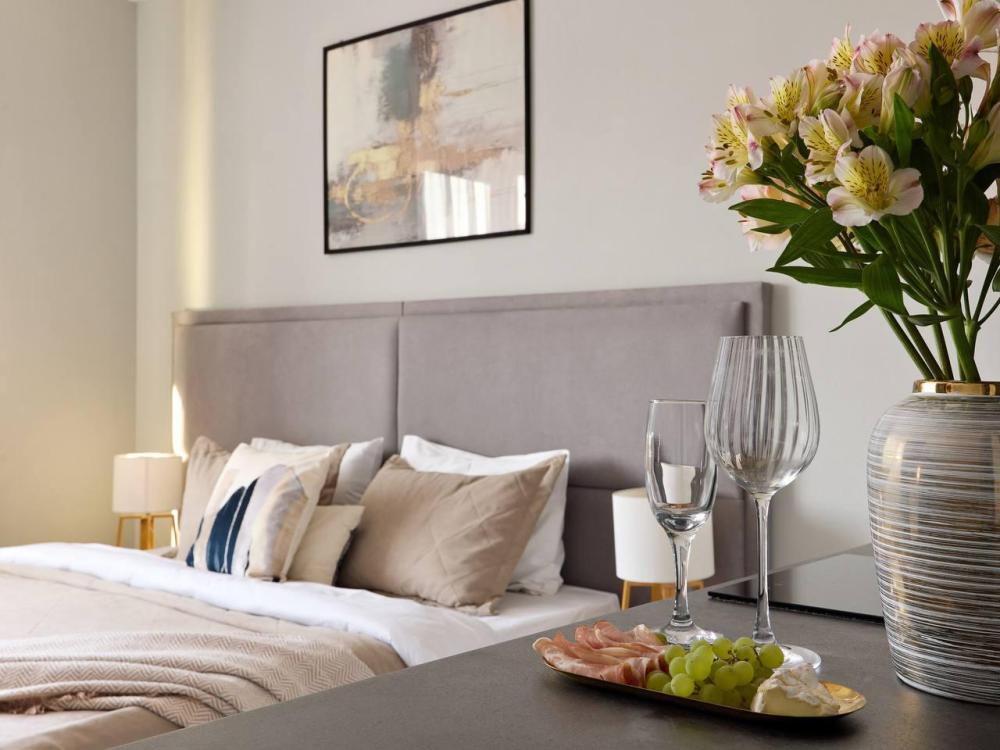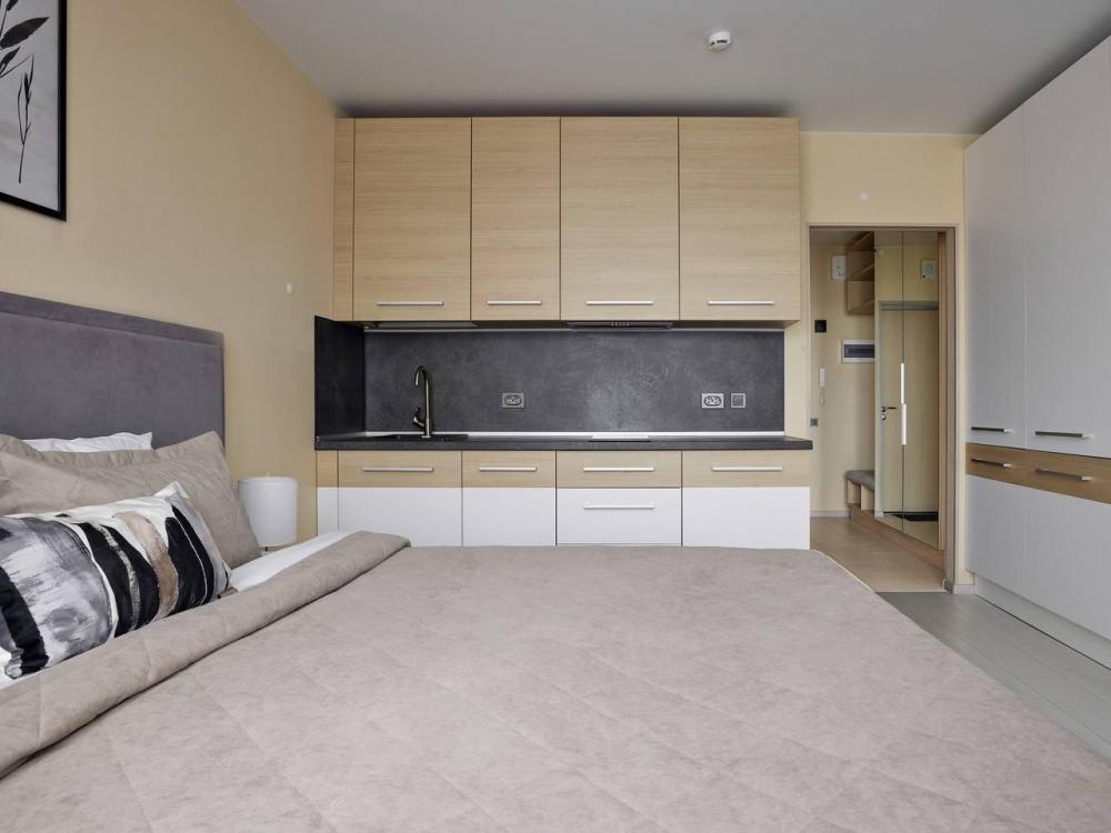 Апартаменты оборудованы всем необходимым для комфортного проживания: кровать 180х200, вместительные шкафы, вентилятор, индукционная плита, посудомоечная машина, чайник, СВЧ, холодильник, посуда и столовые приборы, стабильный wi-fi и телевизор, стиральная машина, сушилка для белья, гладильная доска, утюг, белоснежное постельное бельё высокого качества и полотенца, фен для волос, шампунь и бальзам для волос, гель для душа, одноразовые тапочки.