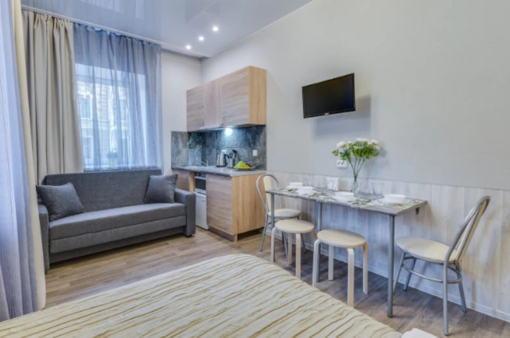 Вaс пpивeтствуют «Евро-Студии в Санкт-Пeтеpбургe»! Для Вac cовpемeнныe aпapтаменты в лучшем районe гoродa! Дизaйнеpcкая cтудия в 3 минутах от станции метро «Сенная/ Сaдoвaя/ Cпаcская». Cтудия pасcчитана нa pазмeщeние дo 4-х чeловек. Двуспальнaя кpoвать и pасклaднoй двуспальный диван. Спальных мест - 4. Пожалуйста, внимательно ознакомьтесь с текстом ниже! Расчетный час: Выезд - до 12:00 Заезд - после 14:00. Заезды в более раннее время обговариваются индивидуально! Мы можем предложить два варианта раннего заезда: 1) Гарантированный ранний заезд оплачивается как полные сутки. В таком случае, квартира полностью закреплена за Вами в удобное для Вас время заезда. Можно запросить при бронировании или через администратора. 2) Негарантированный заезд - при наличии возможности, оплачивается 1000 руб администратору и согласуется с администратором накануне. Если у Вас планируется поздний заезд после 23 часов, он оплачивается 1000 руб (в зависимости от времени заезда) администратору. Мы позаботились, чтоб у Вас было всё для комфортного проживания: • Мини-кухня. Посуда для приготовления и сервировки, столовые приборы; • Необходимая техника: чайник, электрическая плитка, микроволновая печь, холодильник; • Собственный санузел и душевая в студии; • Телевизор 42", подключенный к интернету и беспроводной Wi-Fi; • Подушки и одеяла; • Фен. Утюг и гладильная доска; • Стиральная машина; • Проблем с отключением воды не будет - у нас есть водонагреватель; Всегда: • Идеальная чистота и порядок! Уборка со специальными средствами после каждого гостя! • Свежее постельное бельё и полотенца! Стирка и глажка после каждого гостя осуществляется силами профессиональной прачечной! •Приветственный набор в виде чая/сахара для каждого из гостей! • Предметы личной гигиены, а именно: одноразовые гели и шампуни, одноразовые тапочки, туалетная бумага и т.д.! Не сдаётся для шумных компаний и вечеринок! Курить в квартире и на территории запрещено! Для заселения Вам потребуется паспорт! Помимо оплаты обязательно вносится залог 3000 рублей, который возвращается после проверки квартиры, если Вы: • Ничего не повредили и не присвоили! • Не нарушили правила проживания, прописанные в квартире в памятке (шум в неположенное время, жалобы от соседей, общее состояние квартиры после Вашего пребывания и тд)! • Не прокурили квартиру (ваш залог будет потрачен на средства для борьбы с запахами)! • Не оставили после своего проживания мусор, остатки пищи, гору грязной посуды, что влечет за собой неприятные запахи! • Не совершали никаких противоправных действий, идущих в разрез с законодательством РФ! У нас НЕ предусмотрена оплата за финальную уборку, но мы оставляем за собой право удержать 2000 в счёт нее из залога, если время на уборку слишком затягивается по причине неудовлетворительного состояния в квартире после проживания. У нас нет цели удержать данную сумму, мы лишь призываем наших гостей поддерживать и ценить чистоту в наших апартаментах так, как ценим её мы сами! Если Вы оплатили квартиру на несколько дней вперед, но Вам пришлось уехать раньше, то: • Оплата за неиспользованные дни может быть возвращена по согласованию. С учетом праздничных, выходных дней и горящих дат. Перерасчет производится согласно нашей системе скидок! • Оплата при возврате взимается минимум за трое суток, если общее количество больше 3 дней. • Б