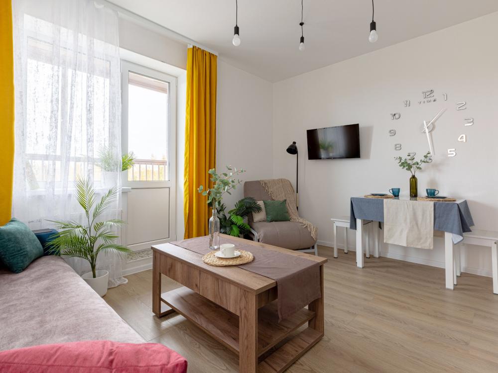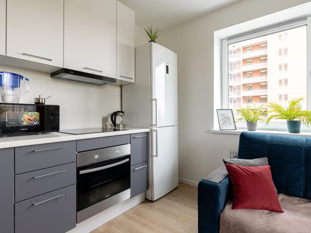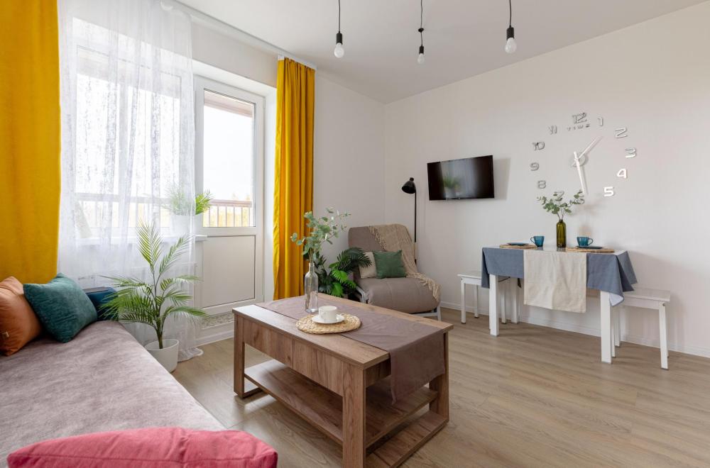 Красивая квартира, оборудованная всем необходимым для комфортного проживания (мебель и бытовая техника, а также посуда и столовые приборы). Сдается после влажной уборки, гостям предоставляются свежие полотенца и чистое постельное белье. В квартире с комфортом могут разместиться 5 человек, в комнате двуспальная кровать, просторная кухня оборудована раскладным диваном и выдвижным креслом. В пешей доступности продуктовые магазины, общепит, и другие заведения. Двор оборудован детской площадкой.