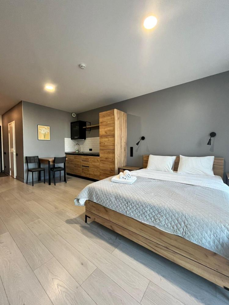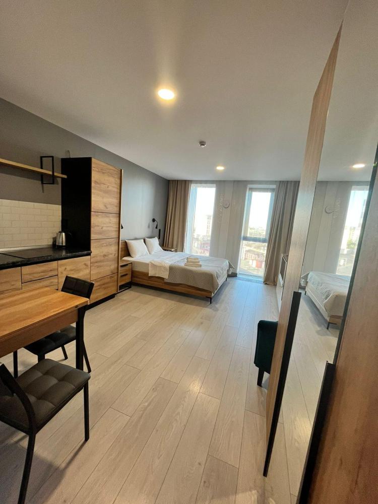 Уютные апартаменты на улице Херсонская. Для комфортного проживания гостей апартаменты оборудованы всем необходимым: всегда свежее и чистое постельное белье и полотенца, варочная панель и СВЧ, посуда, доступ в интернет.