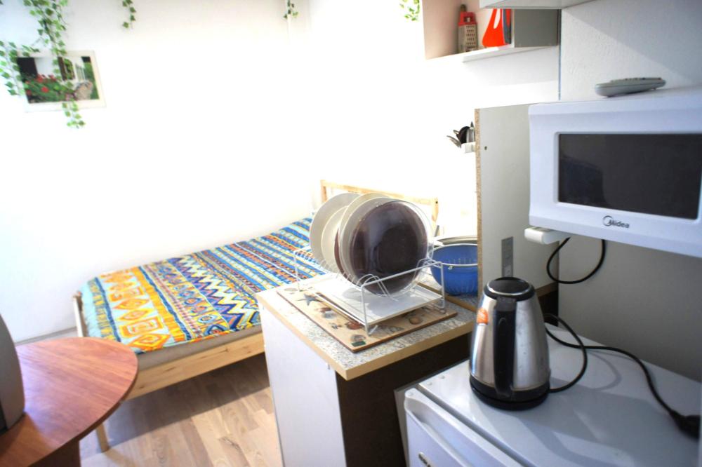 Уютные апартаменты студия, оборудованные всем необходимым для комфортного проживания. В апартаментах: двуспальная кровать, Wi-Fi, кухонная хона со всей необходимой техникой и посудой, санузел с душем и стиральной машиной. Гостям предоставляется свежее постельное бельё, полотенца.