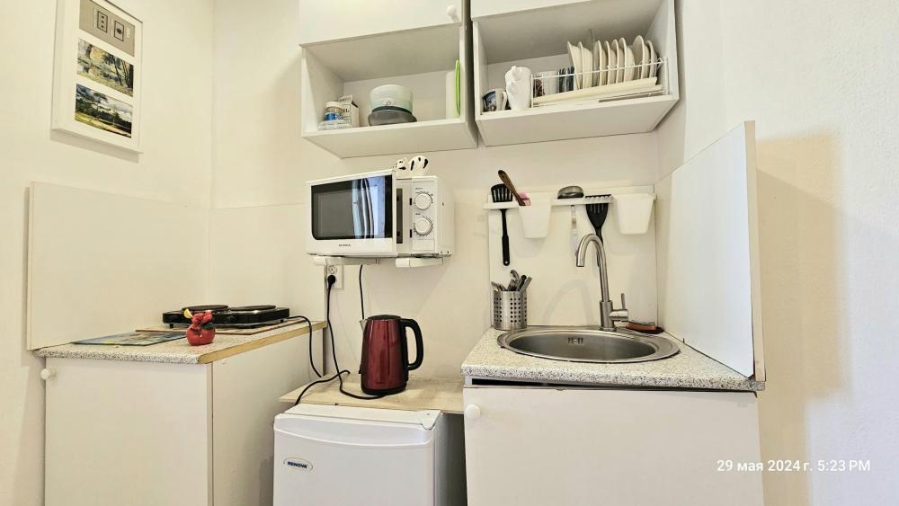 Уютные апартаменты студия, оборудованные всем необходимым для комфортного проживания. В апартаментах: двуспальная кровать, Wi-Fi, кухонная хона со всей необходимой техникой и посудой, санузел с душем и стиральной машиной. Гостям предоставляется свежее постельное бельё, полотенца.