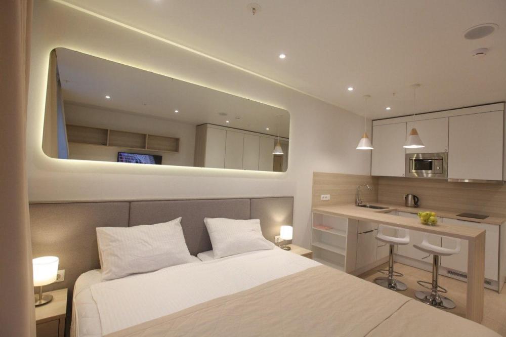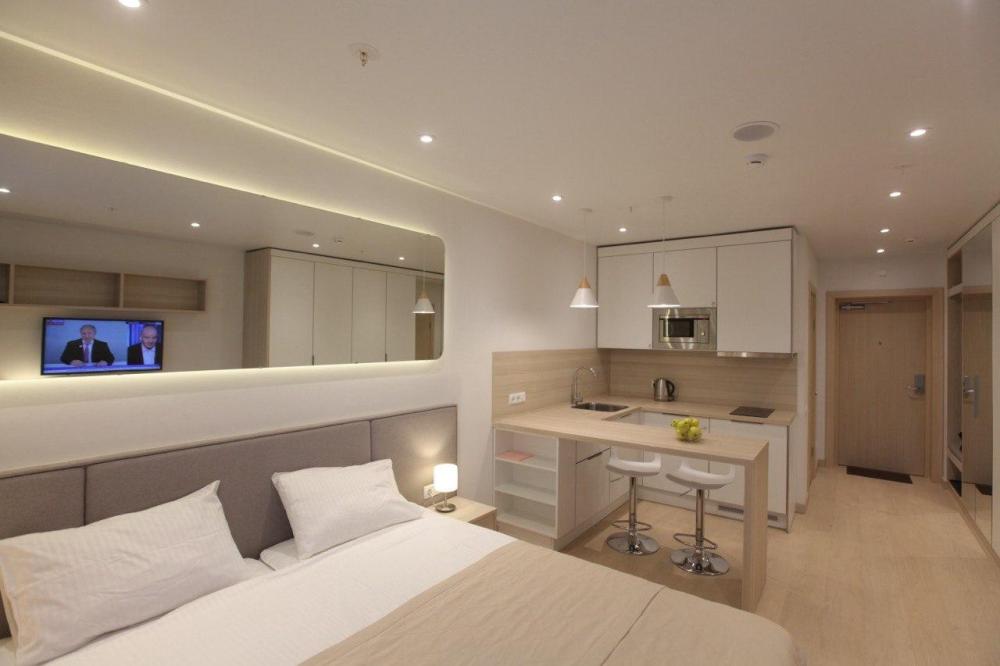 К услугам гостей : двуспальная кровать, постельное бельё, полотенца, Wi-Fi, телевизор, микроволновка, холодильник, электрический чайник, электрическая плита и вытяжка.