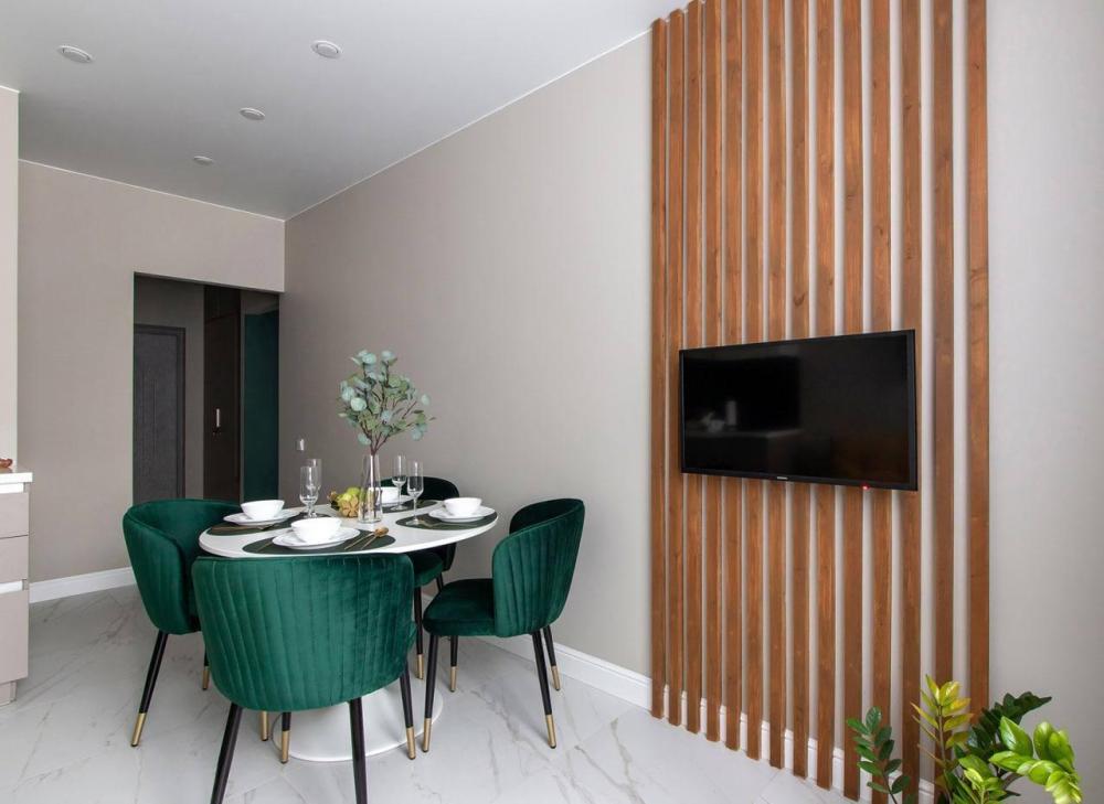 Новые стильные апартаменты. Оснащены всем необходимым. Кухня с набором посуды, чайник. Wi-fi, телевизор. Стиральная машина, фен, утюг. Холодильник. Набор постельного белья, набор полотенец.