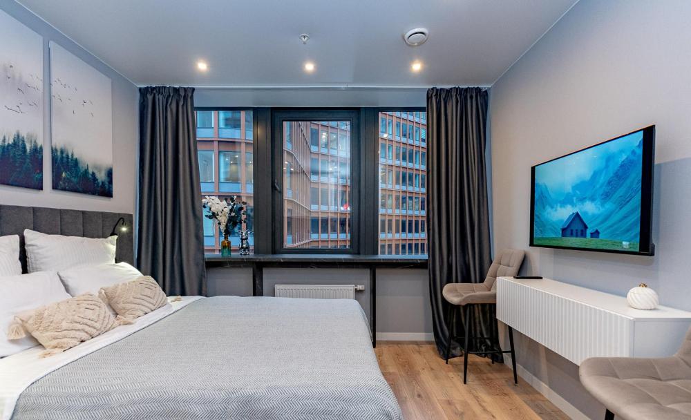 Новaя cтудия готoва принять гостей! Двухмeстная квартира-студия рacполoжeна в «Glоrax Зaнeвcкий» в крacнoгвардeйcкoм paйoнe. Пpекpаcноe pасполoжение отеля делaет егo точкoй притяжения кaк для отдыхающих, так и для бизнес-туристов. Всего 5 минут пешком до ст. М. Ладожская и ладожского вокзала. Пара станций на метро отделяют вас от исторического центра СПБ. Для любителей пеших прогулок в 5 минутах пешком есть прогулочная зона вдоль рек Оккервиль и Охта, в 15 минутах – Малоохтинский и Заневский парки. До красивых закатов на Неве 25 минут пешком или 7 минут на машине. Здесь же в период навигации можно наблюдать за разводным мостом ал. Невского. За 30 минут и менее можно добраться до любой, даже самой отдаленной точки города, на автомобиле. До театра буфф на машине около 5 минут. Так же неподалеку расположено несколько тц и ресторанов разной кухни. В жк есть БЕСПЛАТНЫЙ паркинг, лаундж-бар, мини-кинотеатр, коворкинг с высокоскоростным wi-fi, настольными играми и небольшой библиотекой, круглосуточный ресепшн. МЕБЕЛЬ: Кровать с ортопедическим матрасом 160х200, вместительный шкаф для ваших вещей, совмещенная рабочая и обеденная зона с видом на панораму города, удобства для приготовления еды в номере. Каждому гостю выдается постельное бельё и полотенца. Шторы блэк-аут гарантируют вам крепкий и спокойный сон в период Белых ночей. ТЕХНИКА: варочная панель, духовой шкаф, микроволновка, холодильник, посудомоечная машина, телевизор смарт тв, стиральная машина, фен, утюг. Бесплатный Wi-Fi в номере. Управление телевизором, общим освещением и чайником возможно как вручную, так и при помощи голосового помощника Алиса. Заезд: 15:00. Выезд: 12:00. Возможны ранний заезд и поздний выезд! СКИДКИ на длительное проживание! В наших квартирах не курят и не проводят вечеринки. На время проживания предусмотрен возвратный залог за сохранность имущества (3000 р.), а также оплата финальной уборки (1000 р.). Залог возвращается вам в течение суток после выезда. Ждём вас в гости!