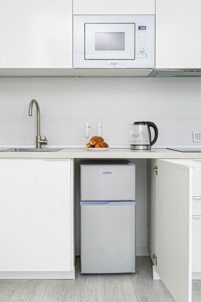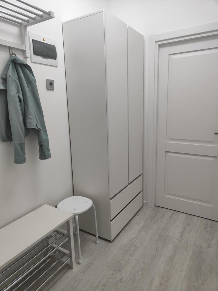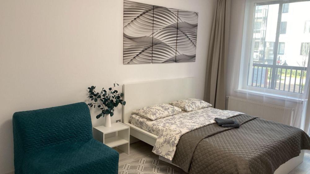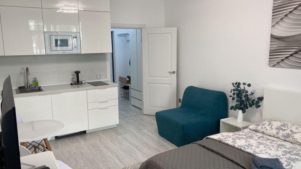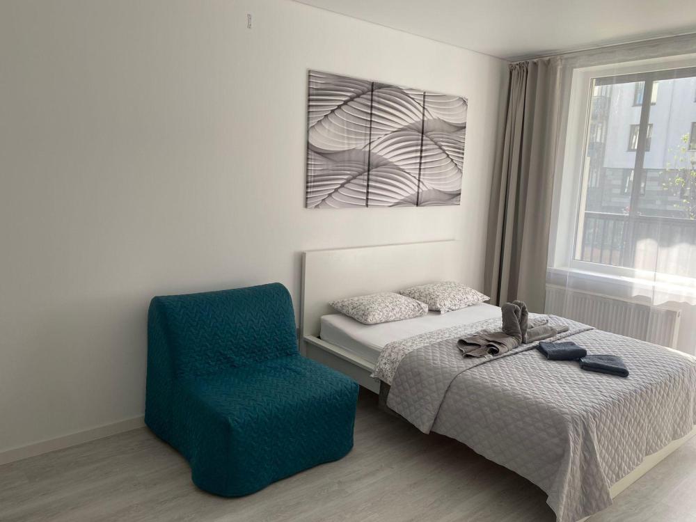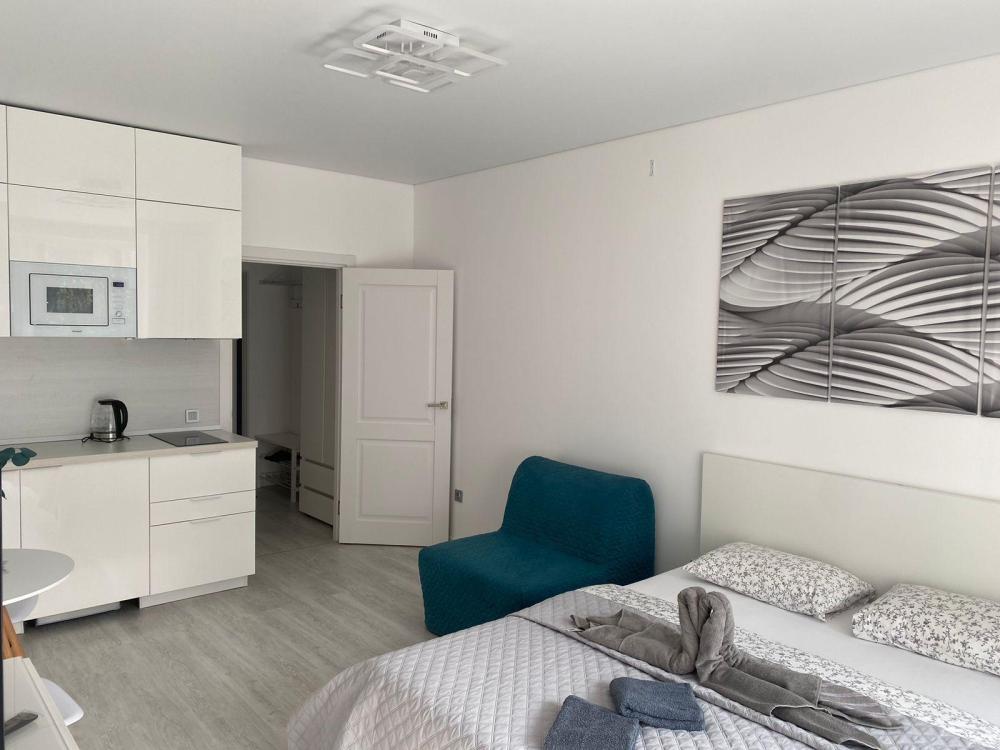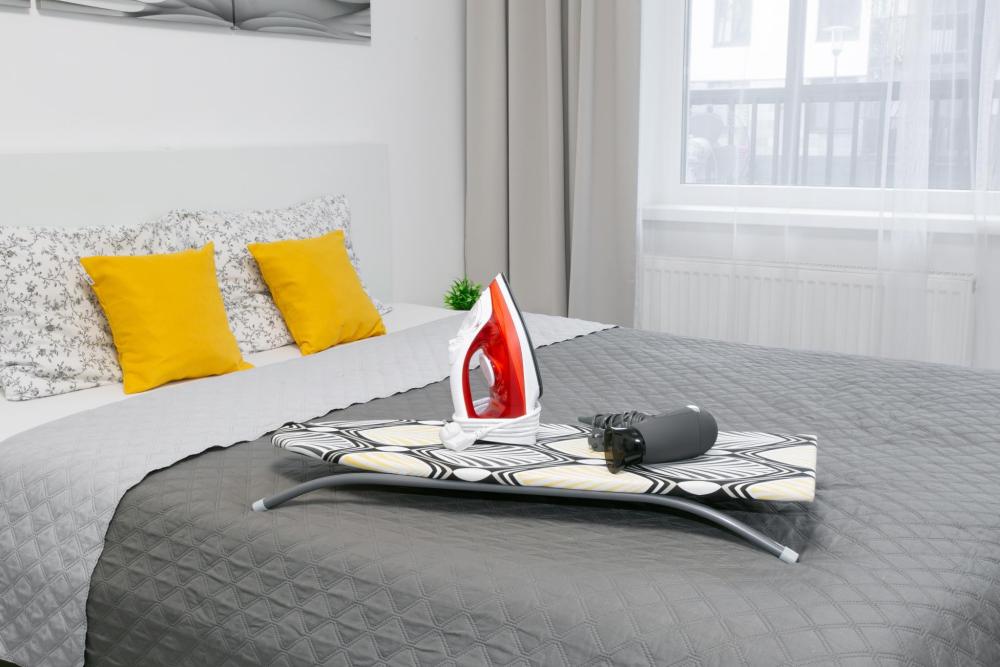 В квартире для проживания предоставлено все необходимое: -Большая двуспальная кровать с ортопедическим матрасом размером 160х200 -дополнительный раскладной диван для третьего гостя -Холодильник -Электрический чайник -Стиральная машина -Утюг -Фен -Микроволновка