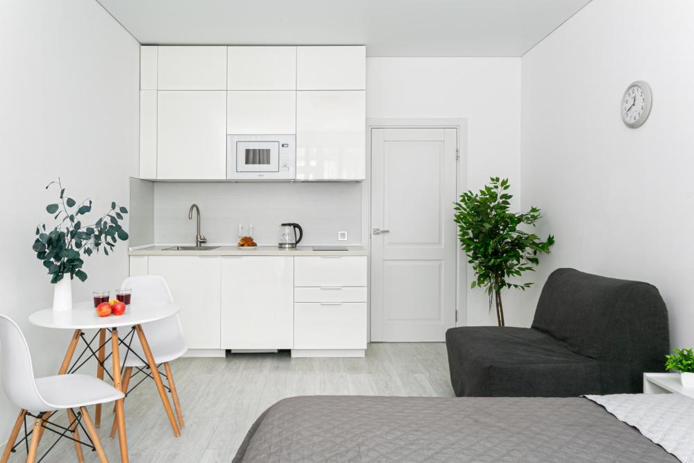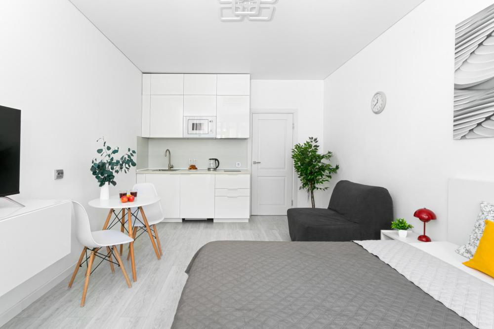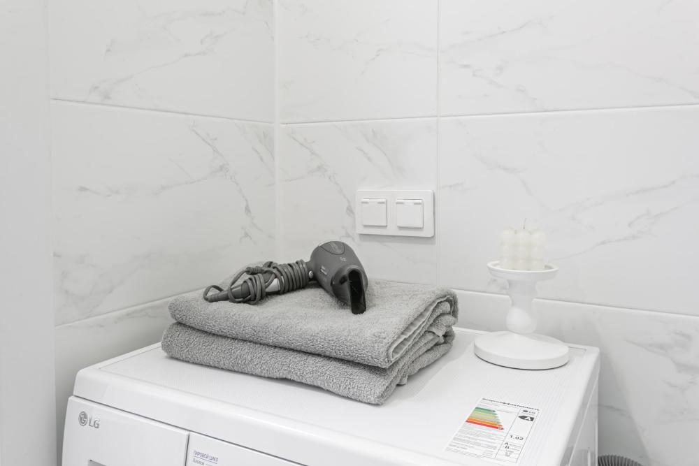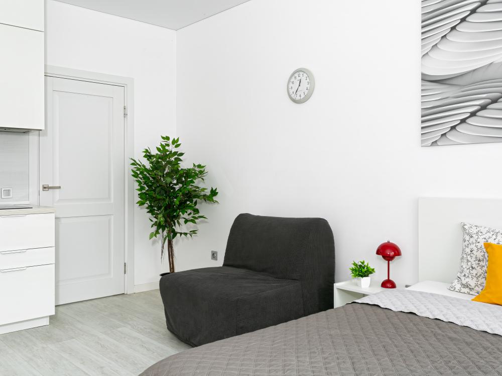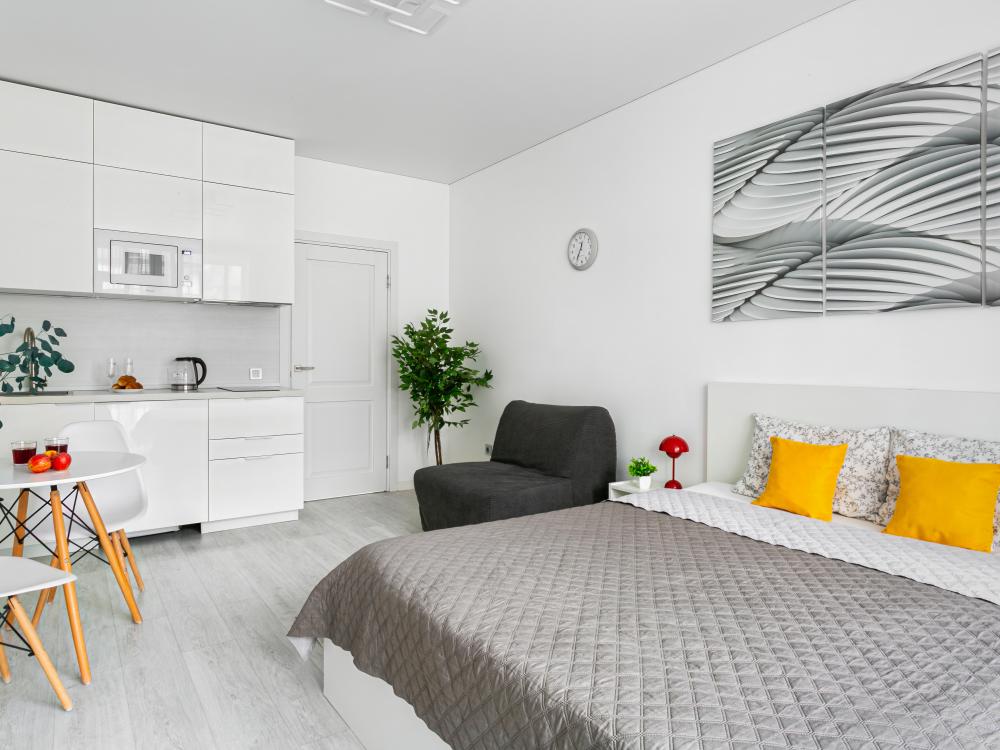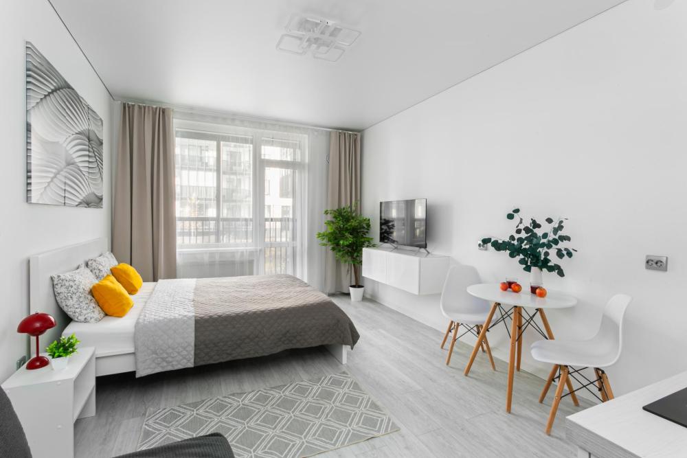 В квартире для проживания предоставлено все необходимое: -Большая двуспальная кровать с ортопедическим матрасом размером 160х200 -дополнительный раскладной диван для третьего гостя -Холодильник -Электрический чайник -Стиральная машина -Утюг -Фен -Микроволновка