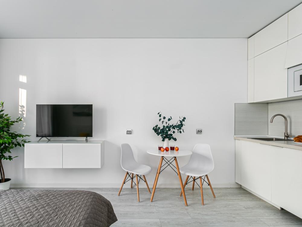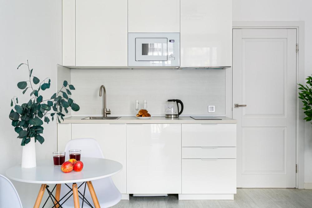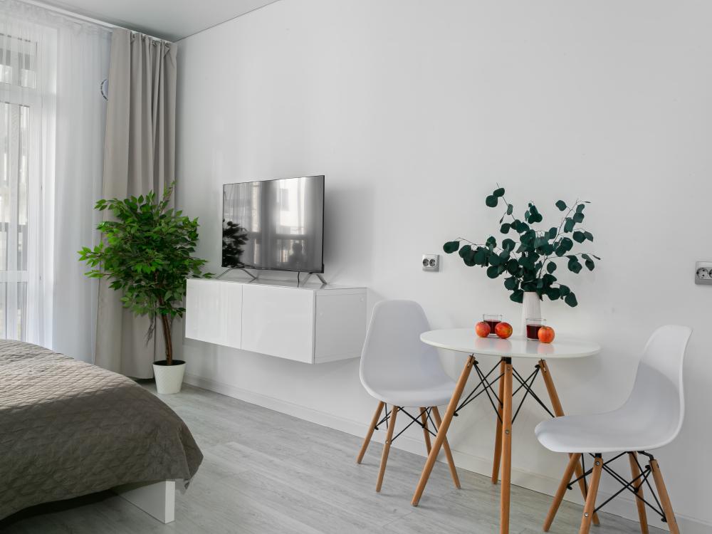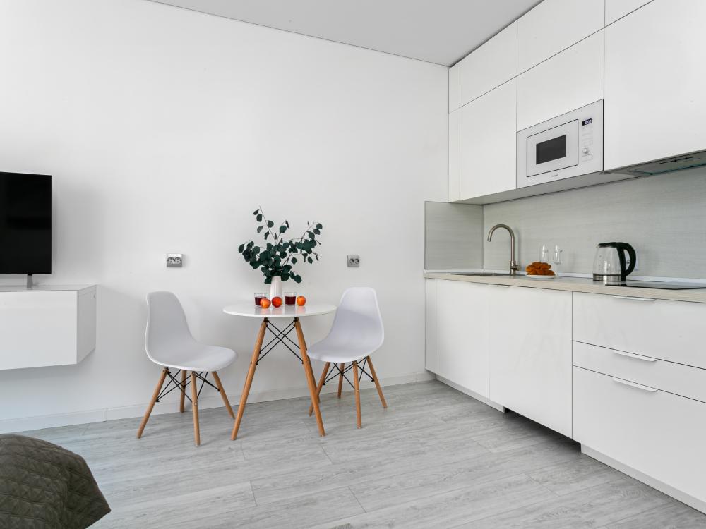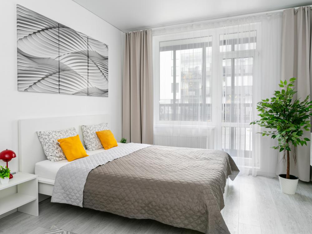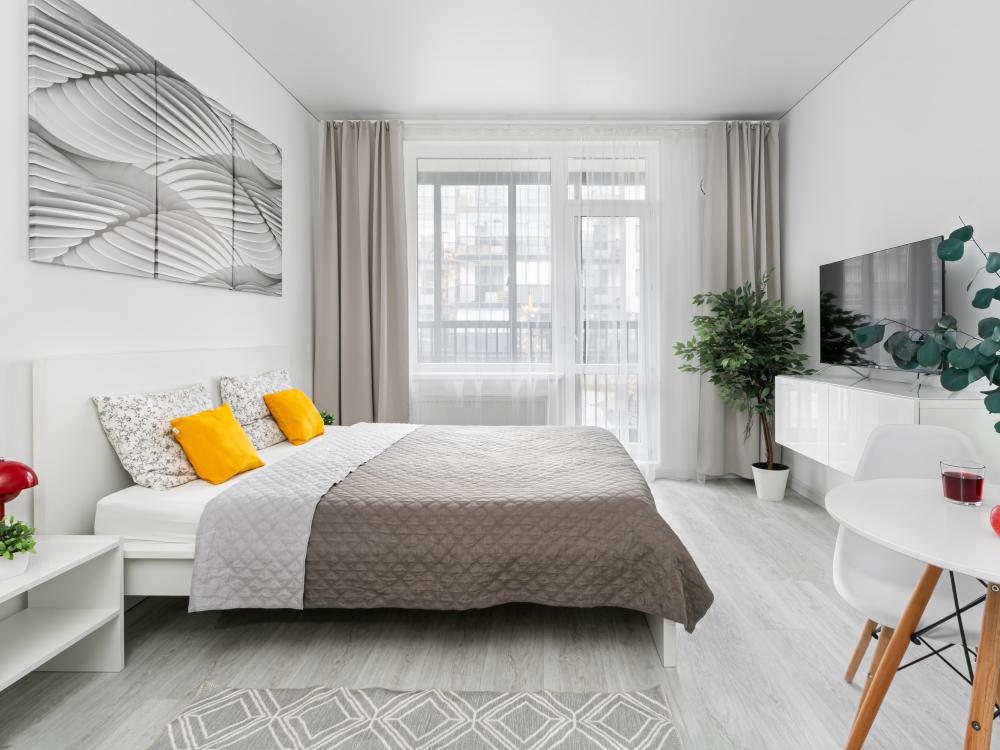 В квартире для проживания предоставлено все необходимое: -Большая двуспальная кровать с ортопедическим матрасом размером 160х200 -дополнительный раскладной диван для третьего гостя -Холодильник -Электрический чайник -Стиральная машина -Утюг -Фен -Микроволновка