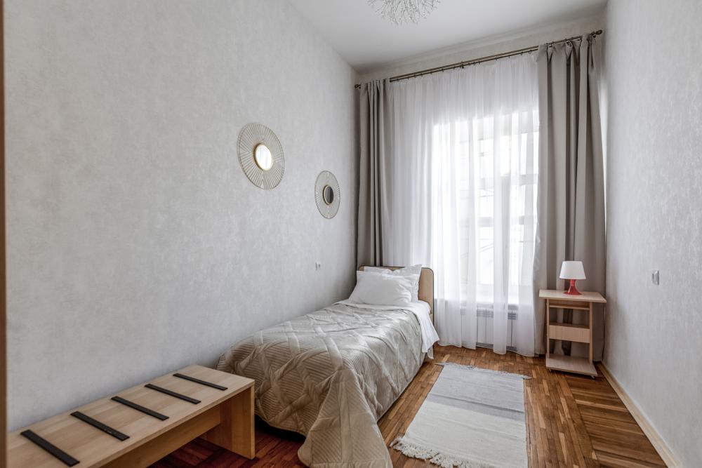 Апартаменты расположены в историческом центре Санкт-Петербурга напротив метро Маяковская. Три раздельные спальни: удобные кровати с ортопедическим матрасом, чистое и свежее белье; удобный двуспальный диван в просторной кухне-гостиной. Для комфорта в наличии бытовая техника, включая телевизор, скоростной WI-FI, гладильную доску, утюг, фен, стиральную машину, установлен бойлер, полный комплект посуды, комплект полотенец для каждого гостя и такие необходимые мелочи, как гель для душа, мыло. Нашим гостям не приходится беспокоиться о парковке – у дома имеется своя закрытая парковка внутри двора (выдаётся брелок, стоимость парковки 1000 руб за сутки ) . Вариант 2 парковка в ТЦ, Невский , ТЦ Галерея - охраняемая платная парковка в 5 минутах ходьбы.