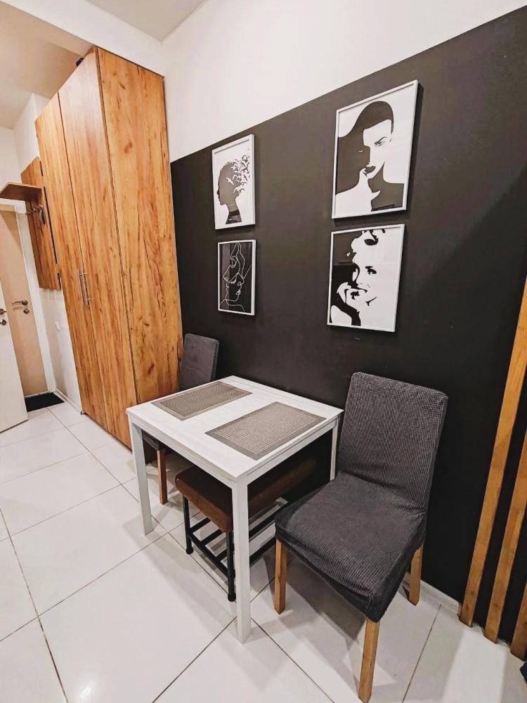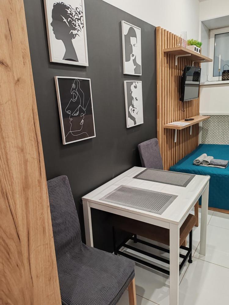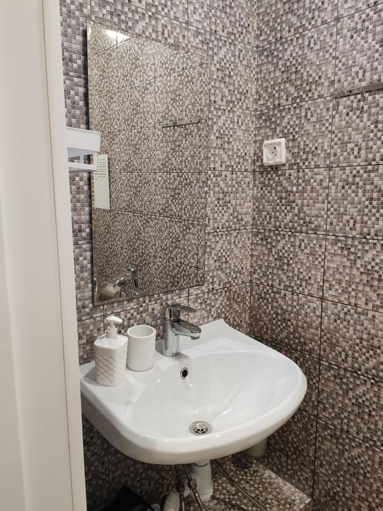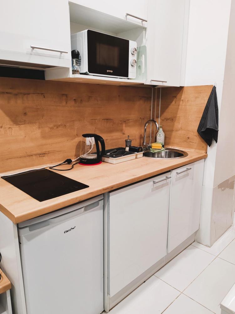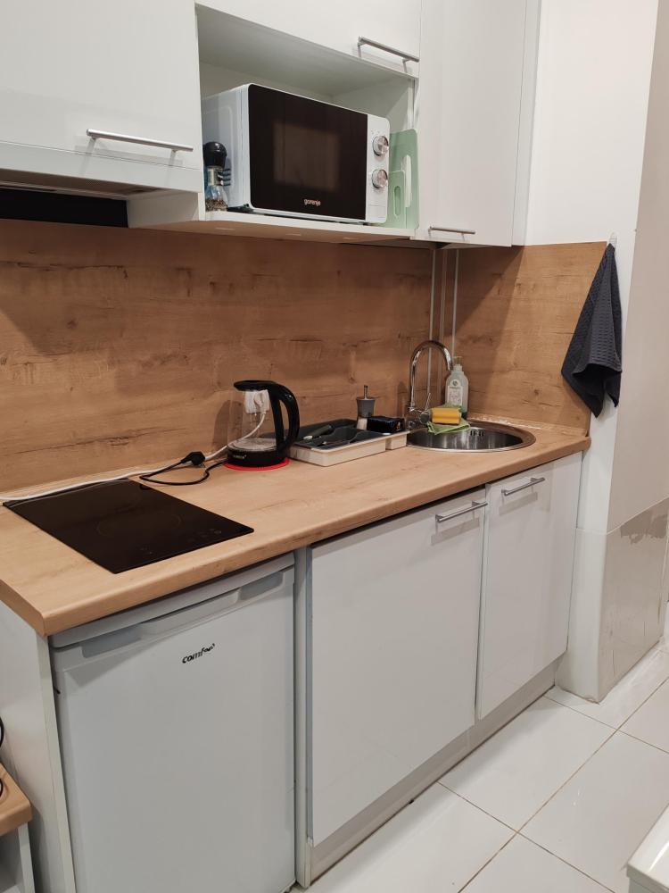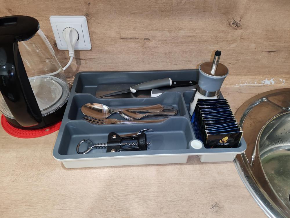В студии есть все необходимое для комфортного проживания: удобная двуспальная кровать с ортопедическим матрасом, качественное бельё из 100% хлопка, комплект полотенец, стиральная машина, утюг, фен, сушилка, гладильная доска; на кухне есть все необходимое: варочная панель, микроволновка, холодильник с морозильной камерой, электрочайник, полный набор посуды и столовых приборов, кофе, чай, сахар; шампунь-кондиционер, гель, мыло