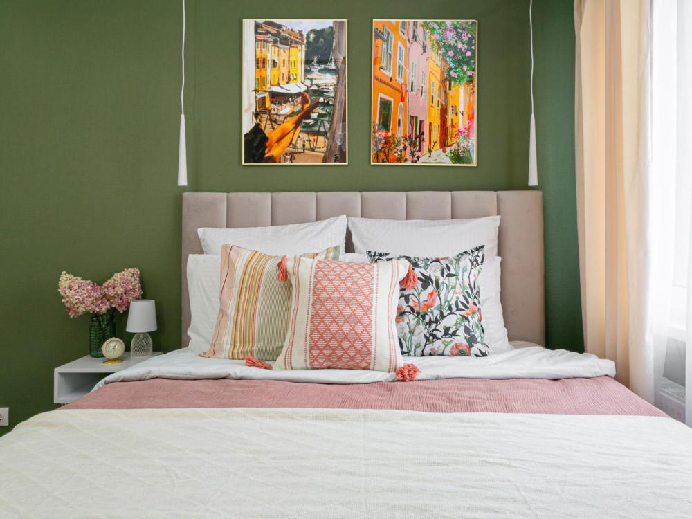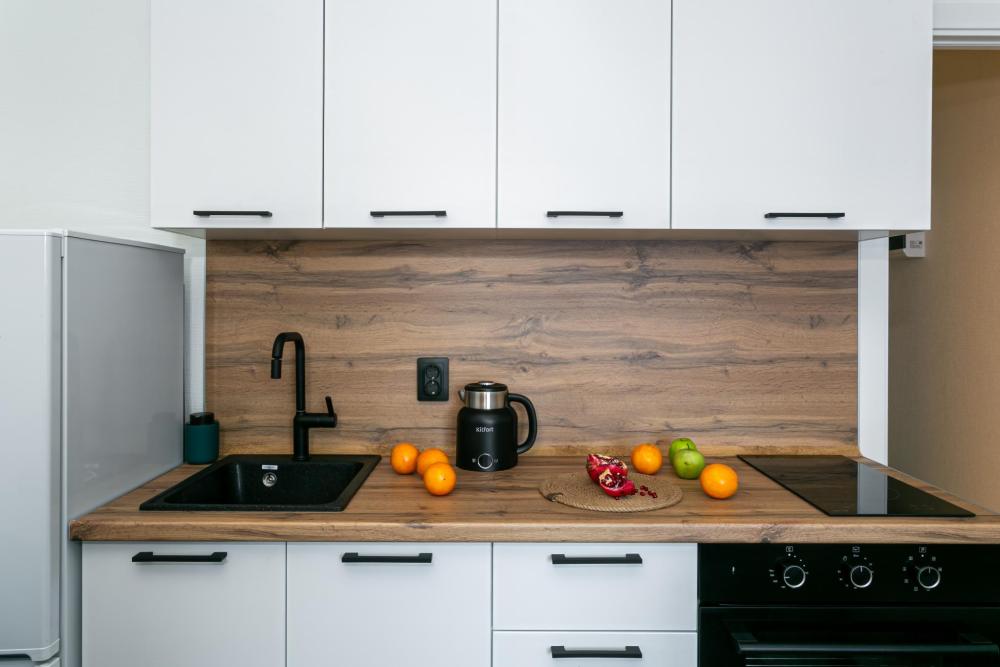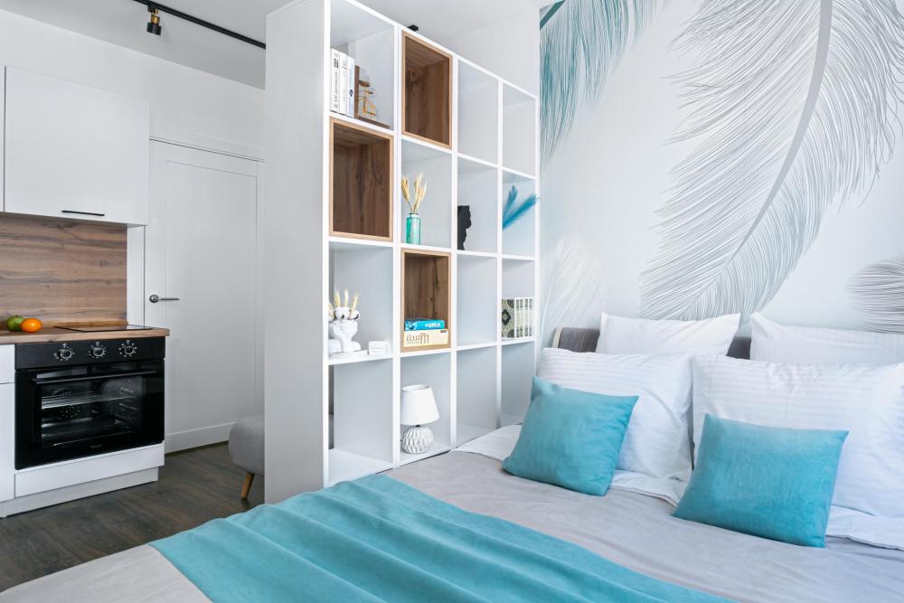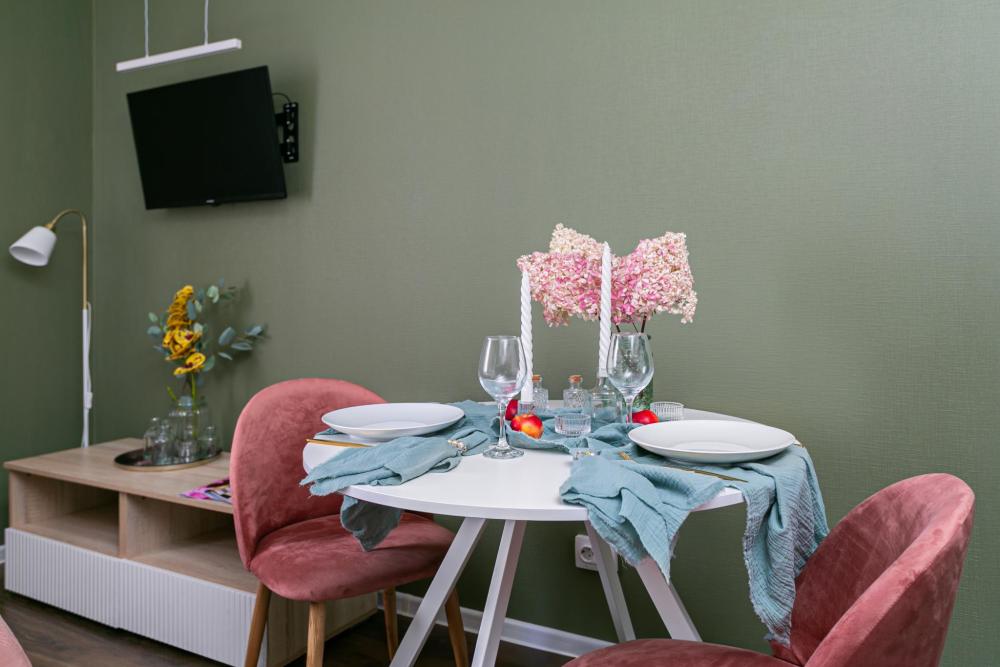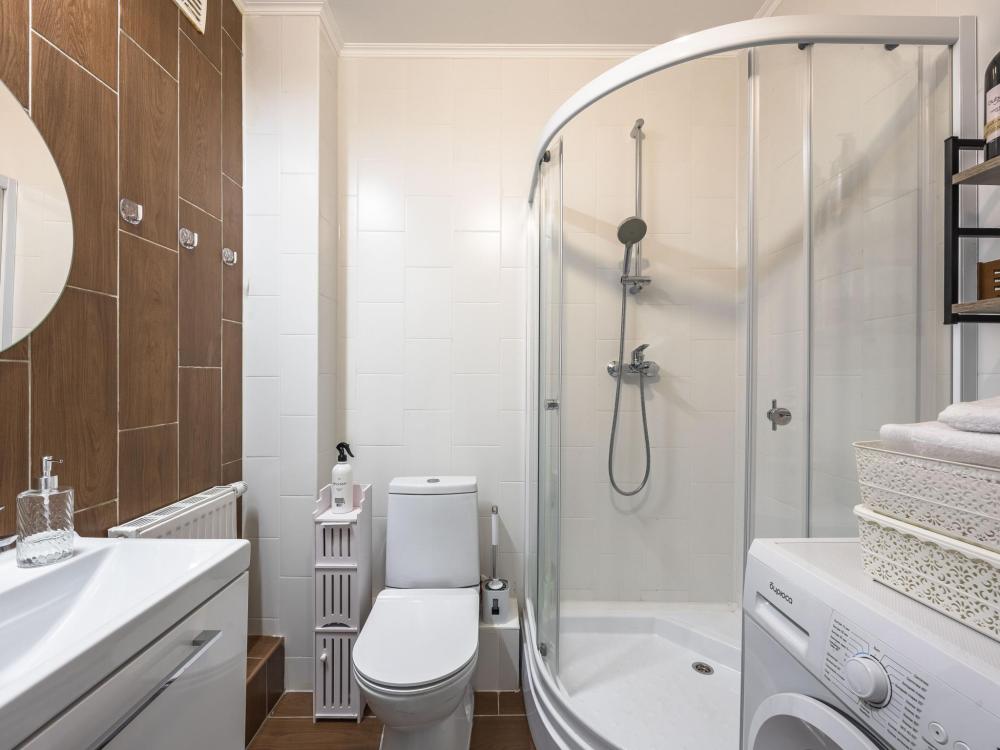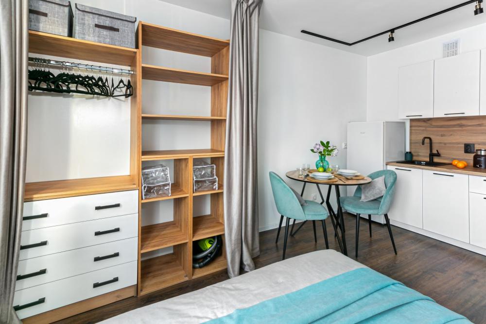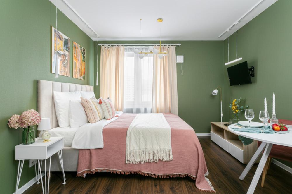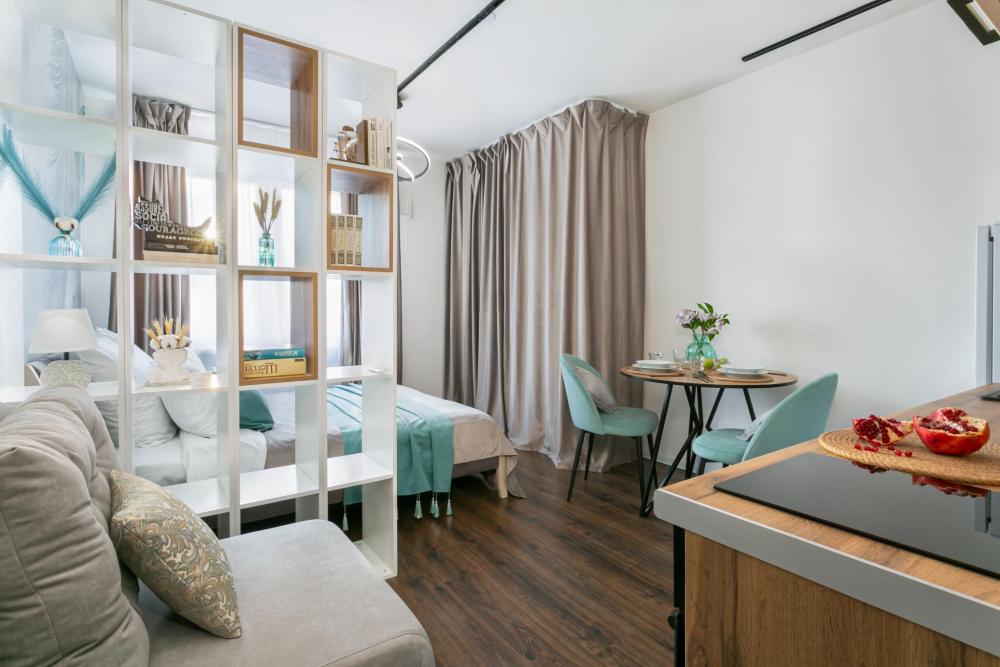В апартаментах имеется все необходимое для комфортного проживания. Отличная двуспальная кровать 1600*2000 с ортопедическим матрасом, раскладное кресло-кровать. Кухня со всей необходимой техникой и аксессуарами, чайник. Дополнительно предоставляется набор полотенец и комплект постельного белья. Есть парогенератор, ванные принадлежности, фен, высокоскоростной интернет, телевизор со смарт ТВ.