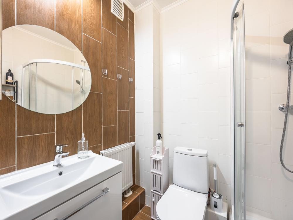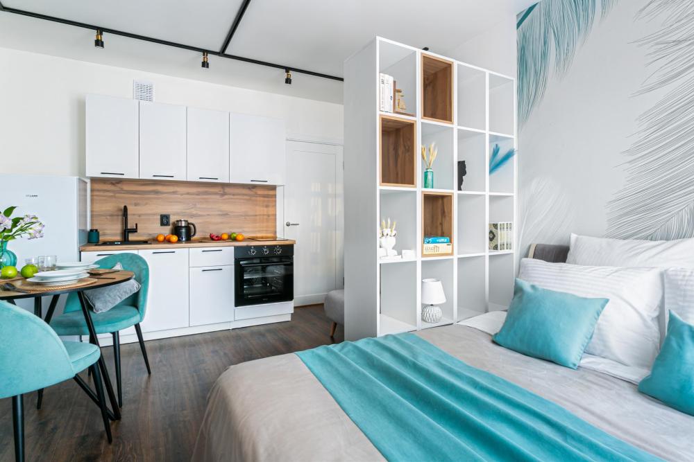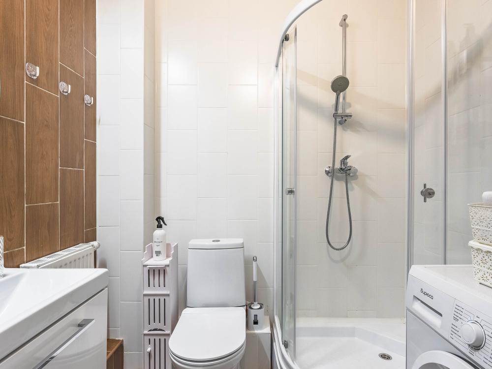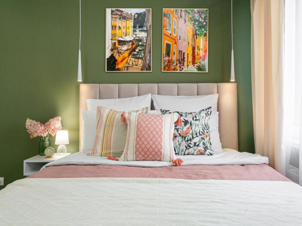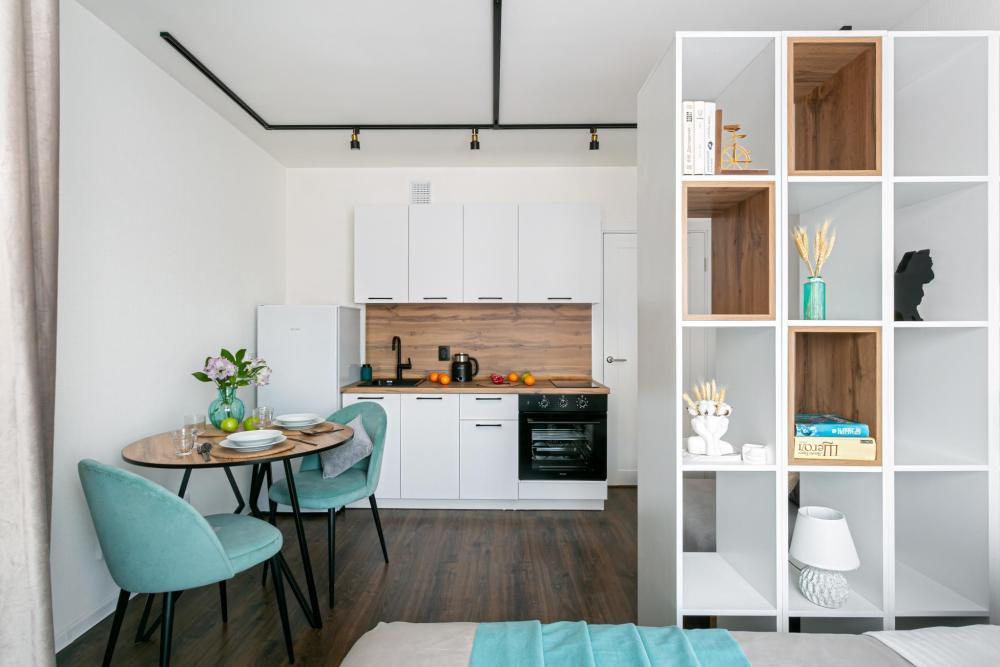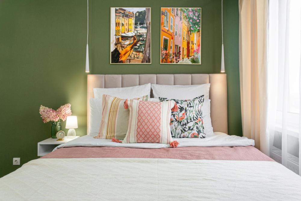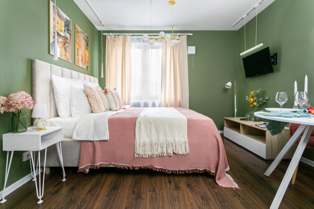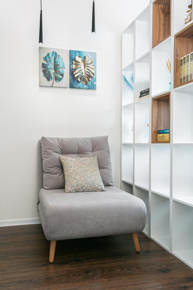 В апартаментах имеется все необходимое для комфортного проживания. Отличная двуспальная кровать 1600*2000 с ортопедическим матрасом, раскладное кресло-кровать. Кухня со всей необходимой техникой и аксессуарами, чайник. Дополнительно предоставляется набор полотенец и комплект постельного белья. Есть парогенератор, ванные принадлежности, фен, высокоскоростной интернет, телевизор со смарт ТВ.