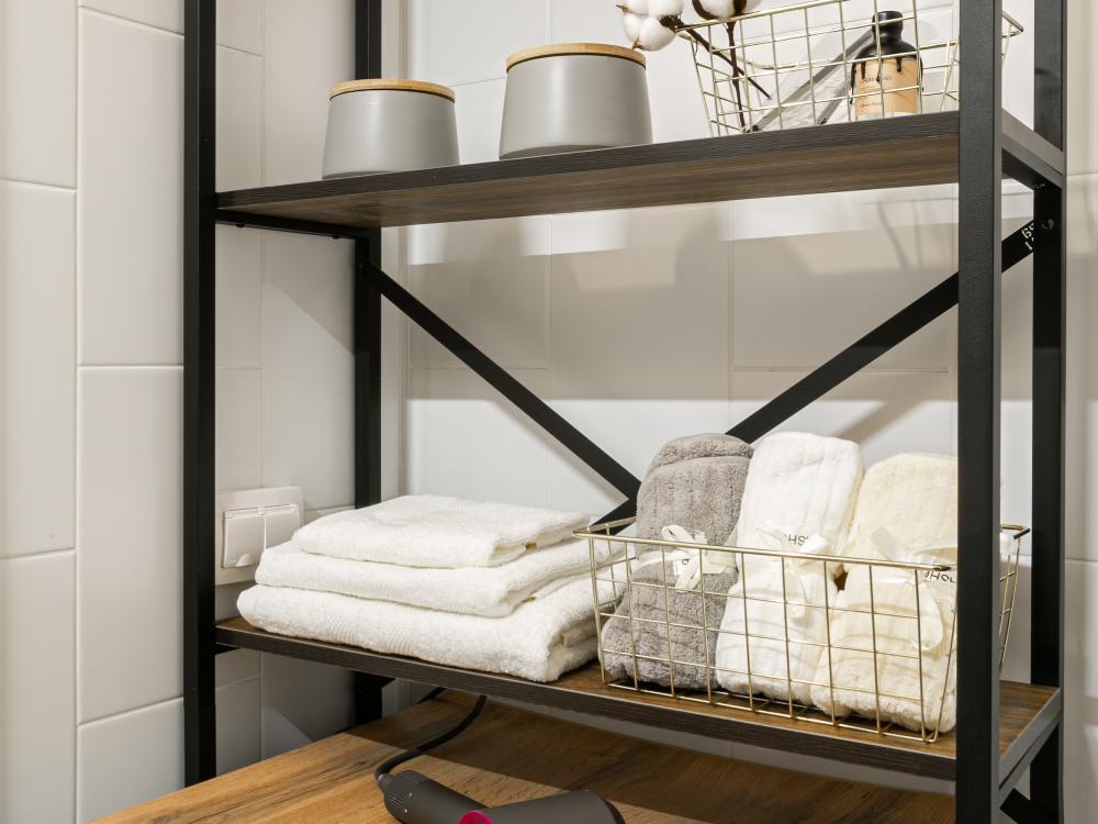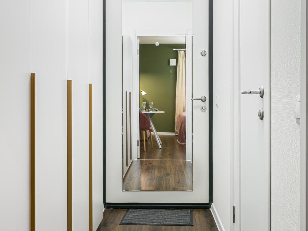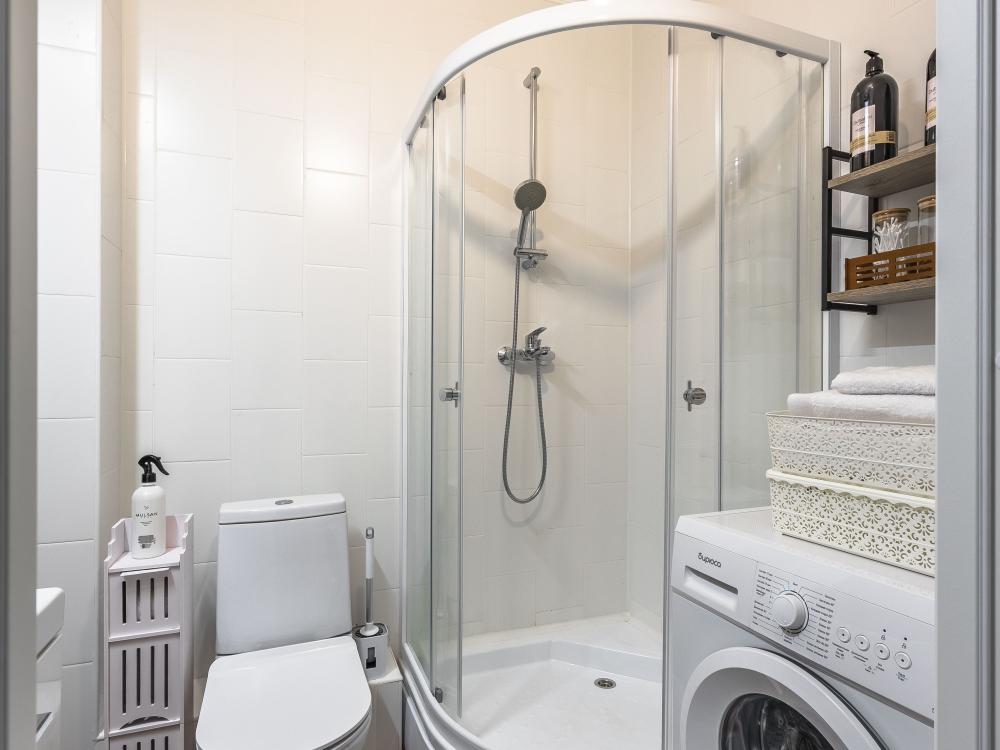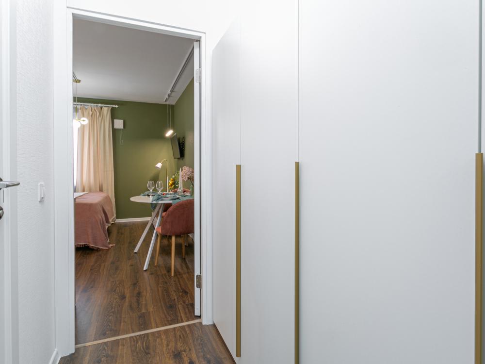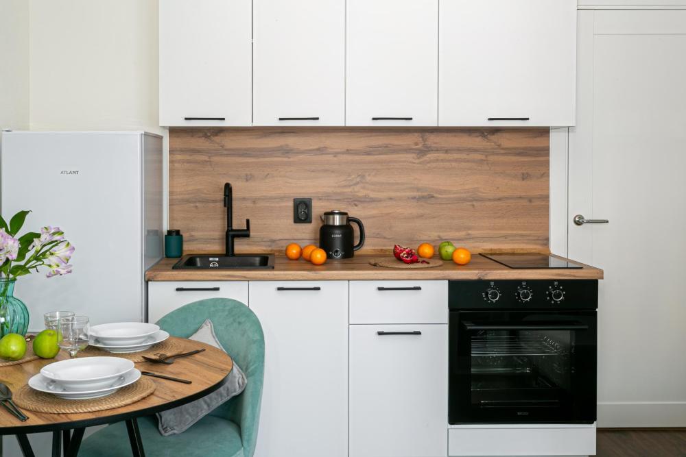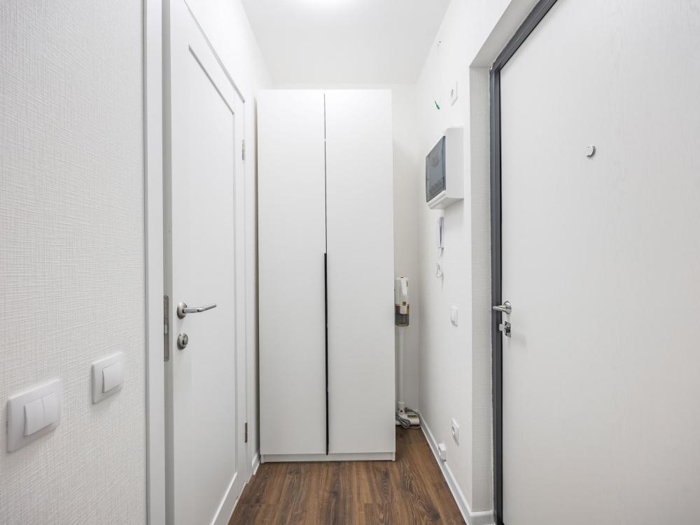 В апартаментах имеется все необходимое для комфортного проживания. Отличная двуспальная кровать 1600*2000 с ортопедическим матрасом, раскладушка. Кухня со всей необходимой техникой и аксессуарами, чайник. Дополнительно предоставляется набор полотенец и комплект постельного белья. Есть парогенератор, ванные принадлежности, фен, высокоскоростной интернет. Для комфорта гостей предусмотрен телевизор со смарт ТВ и умная колонка Алиса.