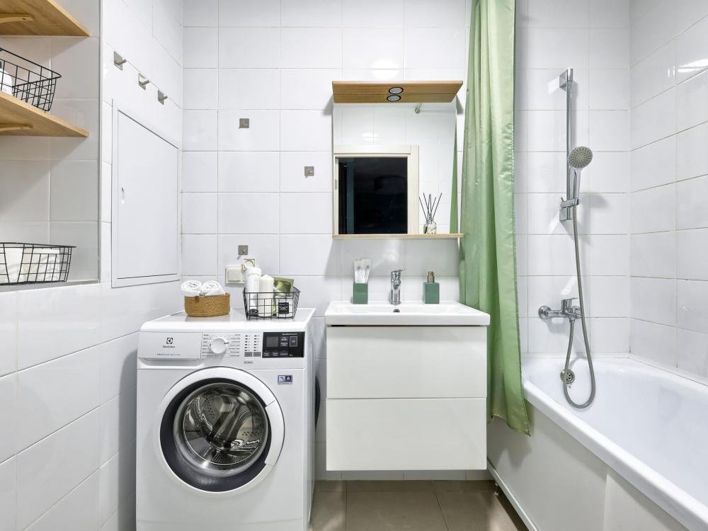 В апартаментах K&K действует единый стандарт качества: Белоснежное постельное белье высокого качества для каждых новых гостей. Профессиональный клининг. Наличие необходимых в быту вещей: посуда, техника, средства гигиены. Приветственный набор продуктов. Качественный сервис. В квартире: Двуспальная кровать с ортопедическим матрасом (160х200), Диван раскладной на 2 места, Кухня со всем необходимым (питьевой фильтр, холодильник, варочная панель, микроволновая печь, чайник, посуда).WI-FI, Smart -TV. Просторный балкон с лаундж зоной. Водонагреватель проточный, стиральная машина, фен, утюг, гладильная доска, сушилка для одежды. Шкаф.Шампунь, гель для душа, жидкое мыло, ватные палочки, ватные диски, гель для стирки, кондиционер для белья, одноразовые тапочки, одноразовый зубной набор.Чай, кофе, конфеты, сахар, соль, масло.На каждого гостя предусмотрено по 4 полотенца.