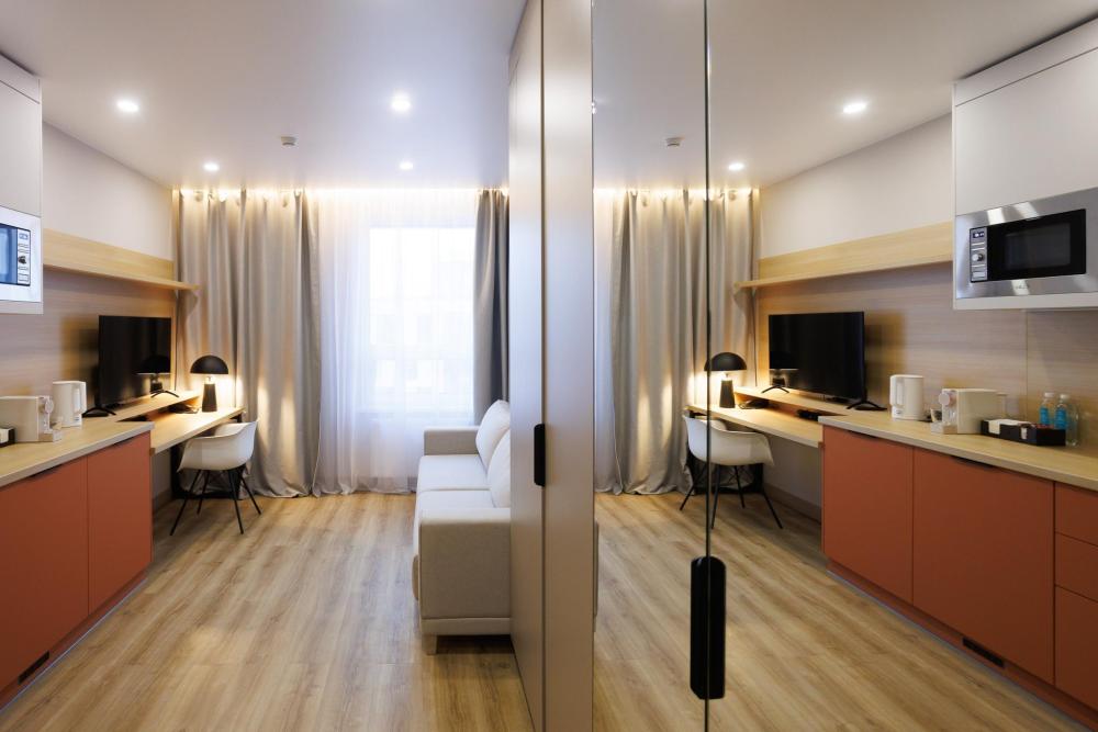 Новая современная видовая студия на 9 этаже комплекса Well. Общая площадь - 20м.кв. Студия оснащена всем необходимым для комфортного проживания: Зона отдыха - двуспальный диван дополненный топпером для комфортного сна. Рабочая зона - удобный рабочий стол и кресло, Интернет проводной и Wi-Fi. Зона кухни - мебель, посуда, плита, холодильник, кофемашина, СВЧ, вытяжка - все для возможности приготовления еды. Зона хранения - два больших вместительных шкафа Санузел с просторной душевой кабиной. Все предусмотрено для вашего комфорта.