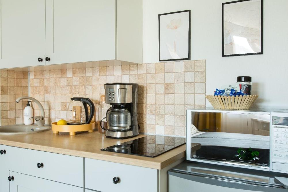УДОБСТВА: кондиционер, кофеварка, WiFi, TV, стиральная машина, холодильник, индукционная плита, СВЧ, чайник, посуда, ортопедические матрасы высотой 20 см, качественное хлопковое постельное белье, полотенца, моющие средства и принадлежности для личной гигиены, утюг, фен, швейный набор, сладкий приветственный комплимент для гостей, уютная лоджия с панорамными видами на реку Охта ?️Изюминка апаратамента - стильный дизайн с элементами интерьера в петербургском ретро-стиле