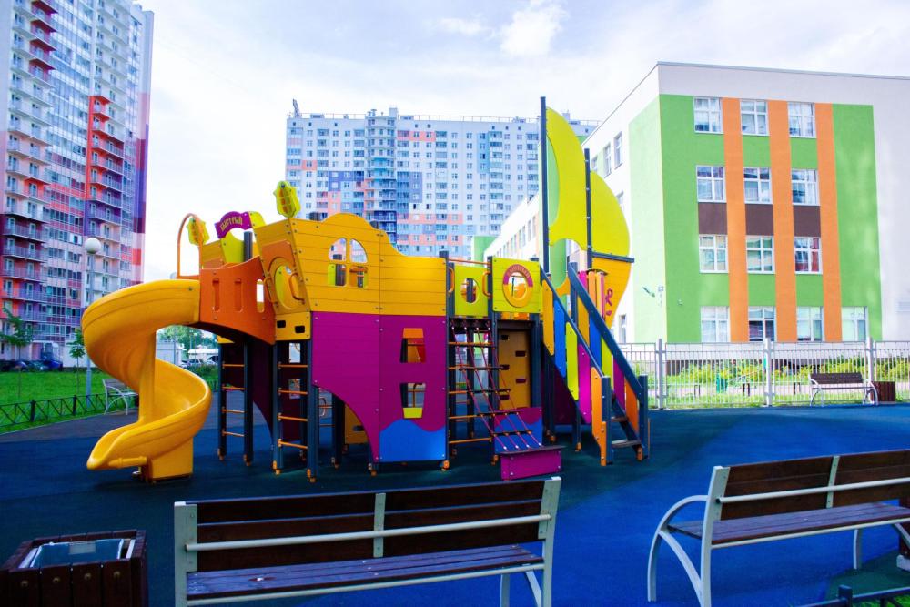 В радиусе 10 минут пешком расположены: ТЦ Охта Молл, Парк чудес Галилео, ТЦ Заневский Каскад, БЦ Русские самоцветы, БЦ Амбер, супермаркеты ОКЕЙ, Лента, Перекресток