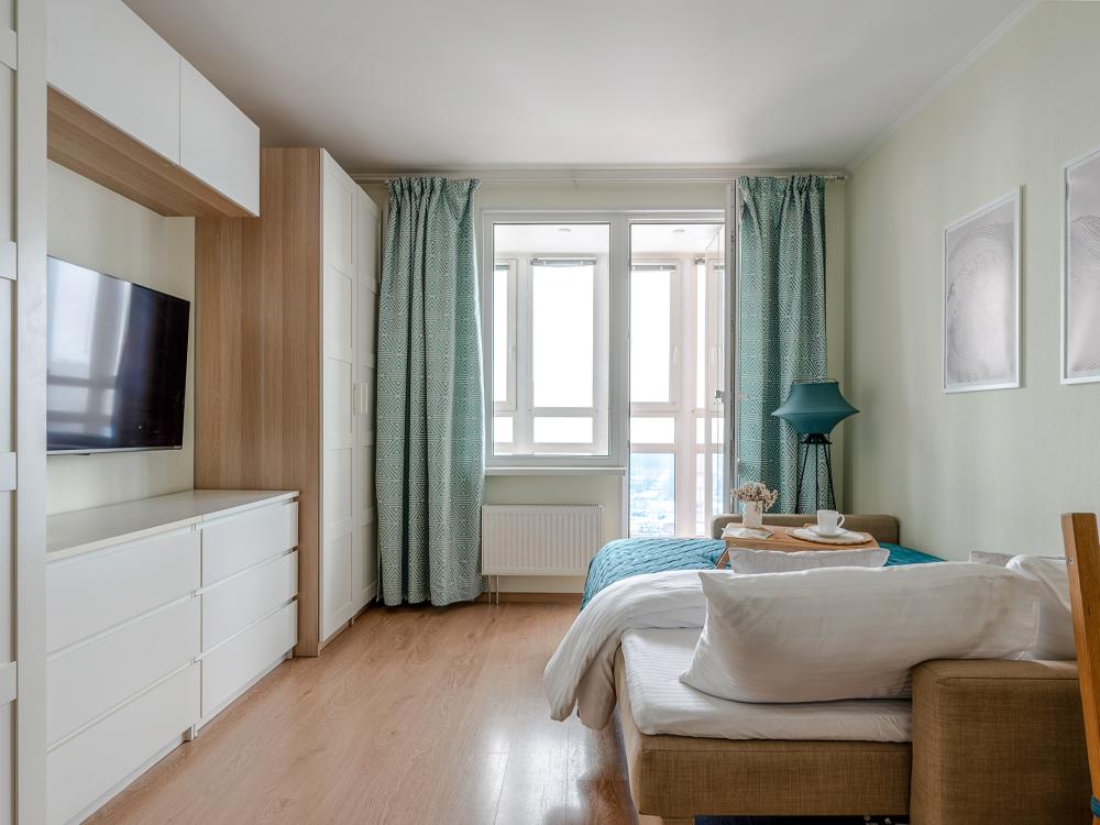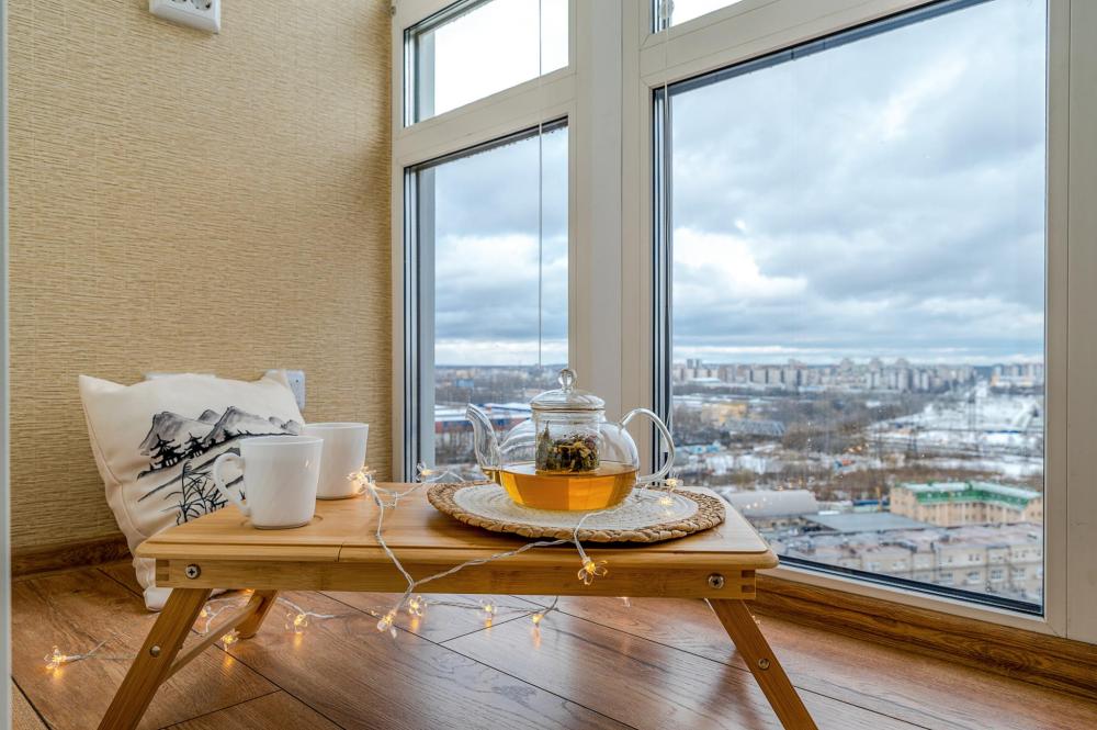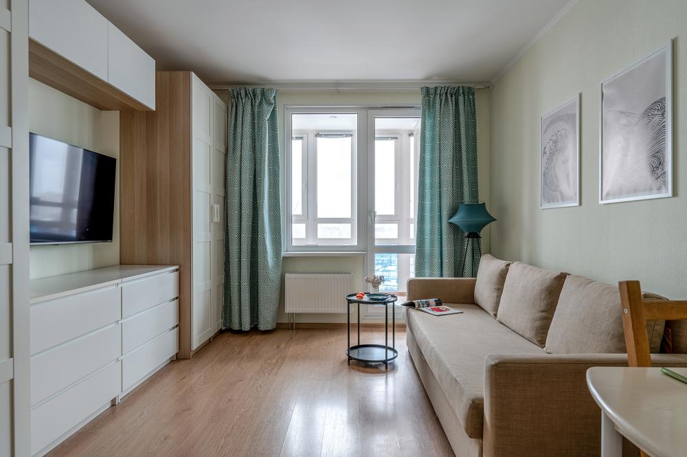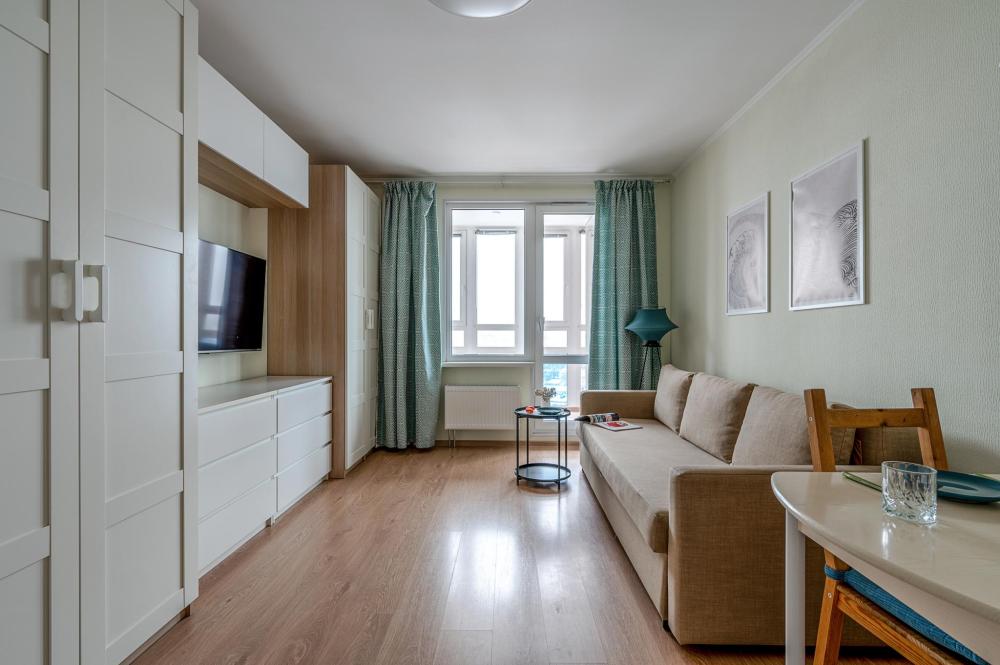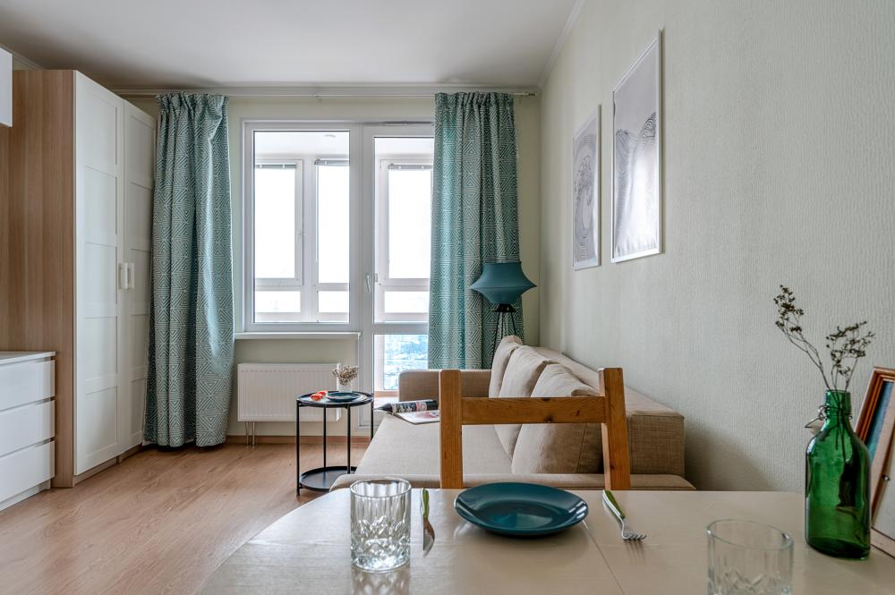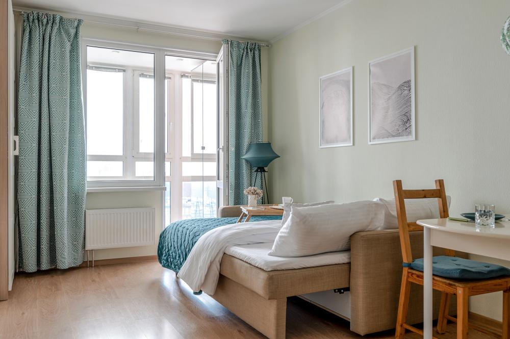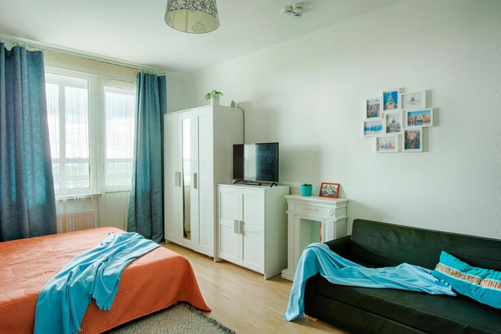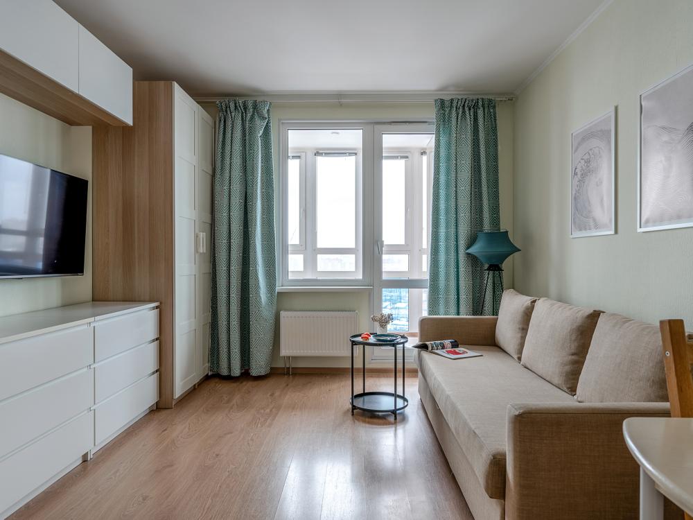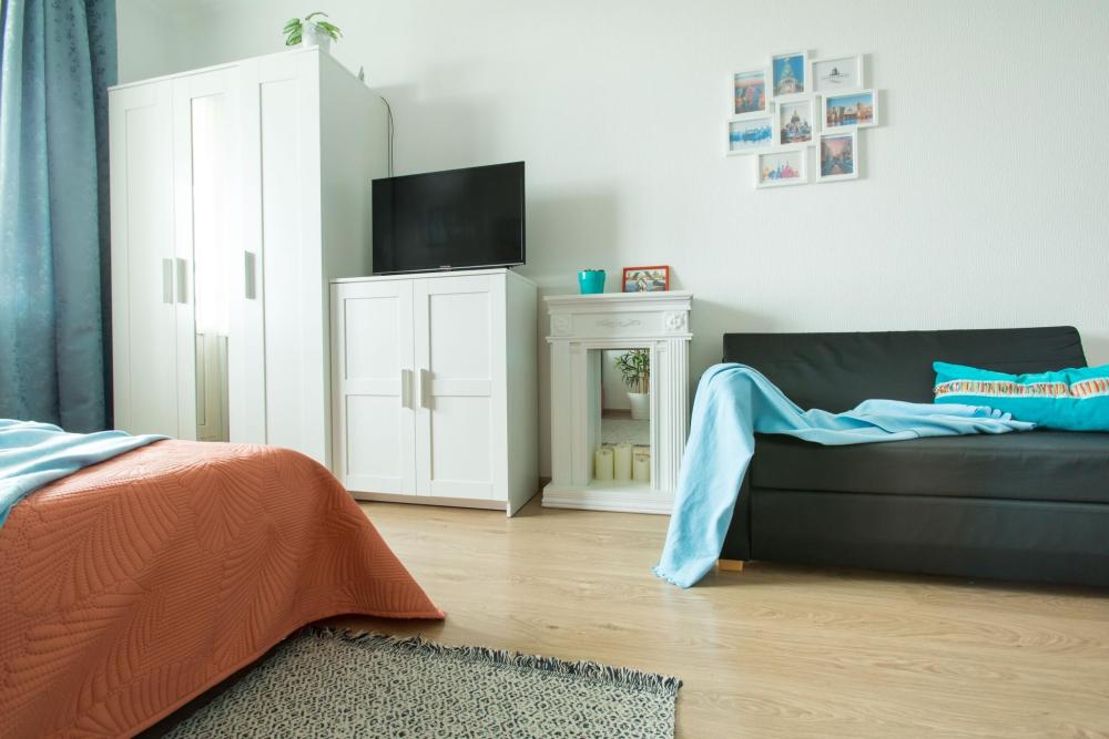 СПАЛЬНЫЕ МЕСТА от 1 до 4 гостей ?️2 гостя: две кровати 80×200, которые можно соединить в двуспальную кровать ?️1-2 гостя: диван-кровать 120×200 ?УДОБСТВА: WiFi, TV, стиральная машина, холодильник, индукционная плита, СВЧ, кофеварка, чайник, посуда, хлопковое постельное белье, полотенца, моющие средства и принадлежности для личной гигиены, утюг, фен, швейный набор, сладкий приветственный комплимент для гостей, уютная лоджия с панорамными видами с 19 этажа на город и реку Охта Изюминка апаратамента - декоративный камин мерцающими свечами, создающий особенное настроение?