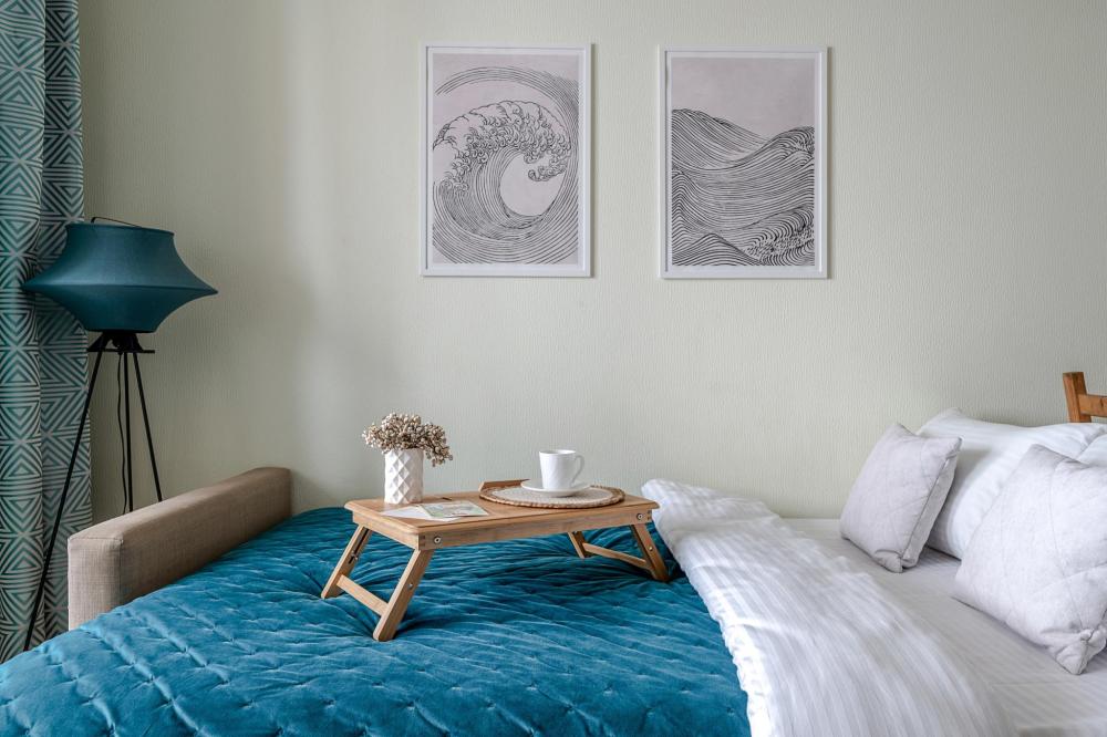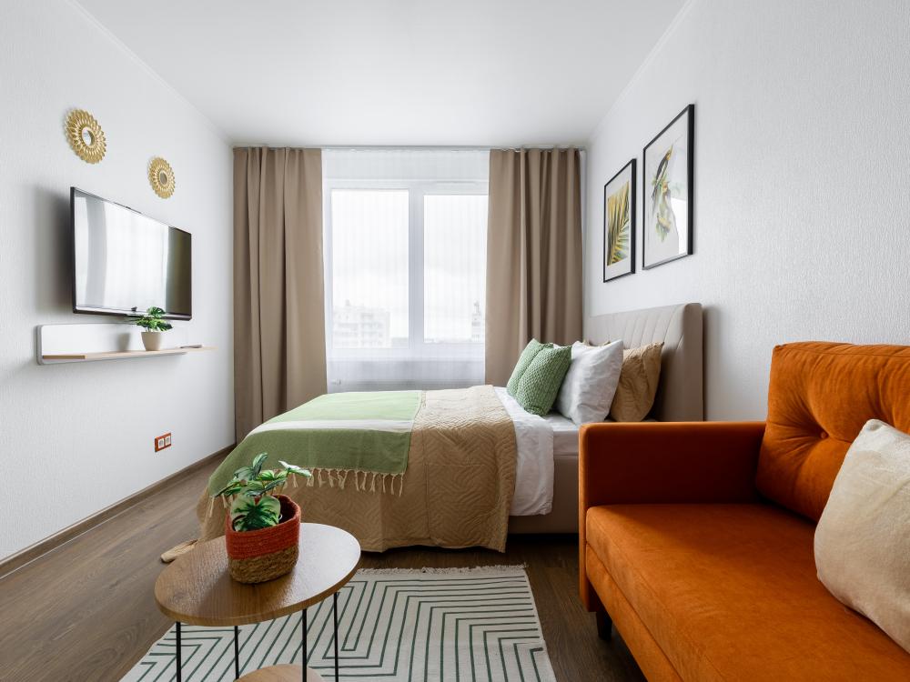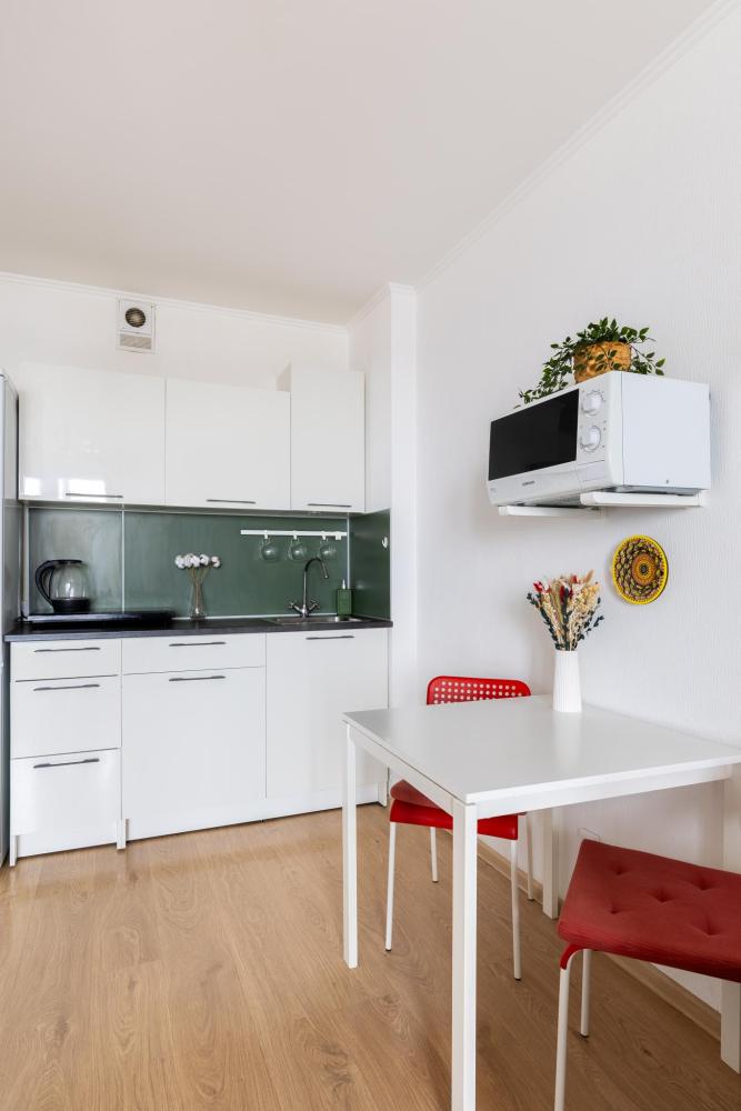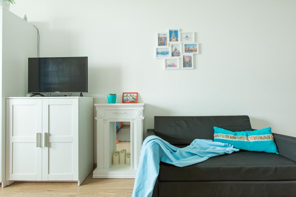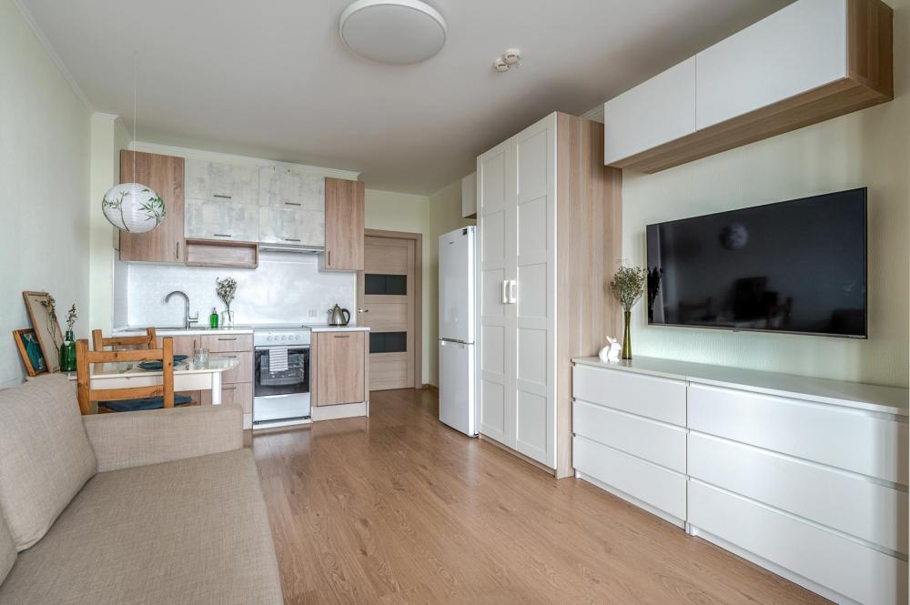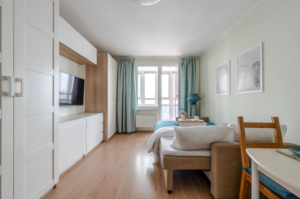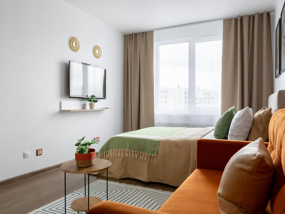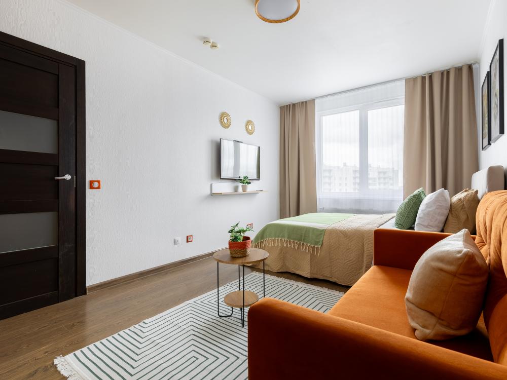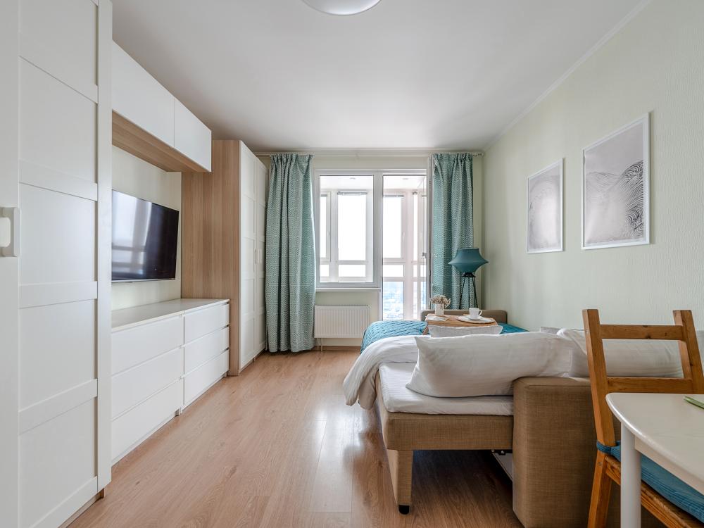 СПАЛЬНЫЕ МЕСТА от 1 до 4 гостей ?️2 гостя: две кровати 80×200, которые можно соединить в двуспальную кровать ?️1-2 гостя: диван-кровать 120×200 ?УДОБСТВА: WiFi, TV, стиральная машина, холодильник, индукционная плита, СВЧ, кофеварка, чайник, посуда, хлопковое постельное белье, полотенца, моющие средства и принадлежности для личной гигиены, утюг, фен, швейный набор, сладкий приветственный комплимент для гостей, уютная лоджия с панорамными видами с 19 этажа на город и реку Охта Изюминка апаратамента - декоративный камин мерцающими свечами, создающий особенное настроение?