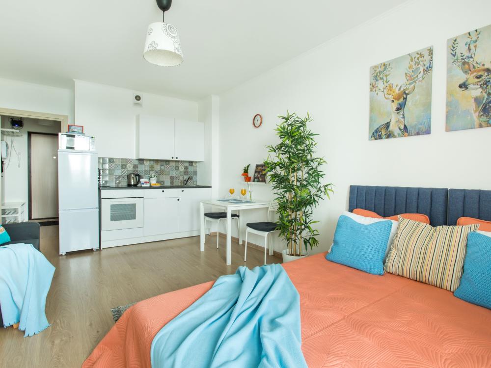 ? ЛОКАЦИЯ: г. Санкт-Петербург, метро Ладожская, ЖК комфорт-класса "ЗимаЛето" СПАЛЬНЫЕ МЕСТА от 1 до 2 человек: удобный большой диван Икеа с топпером, размер спального места 160×200 ?УДОБСТВА: WiFi, TV, посудомоечная машина, стиральная машина, холодильник, варочная плита с духовым шкафом, вытяжка, утюг, чайник, посуда, хлопковое постельное белье, полотенца, моющие средства и принадлежности для личной гигиены, фен, уютная утепленная лоджия с панорамными видами на город и реку Охта.