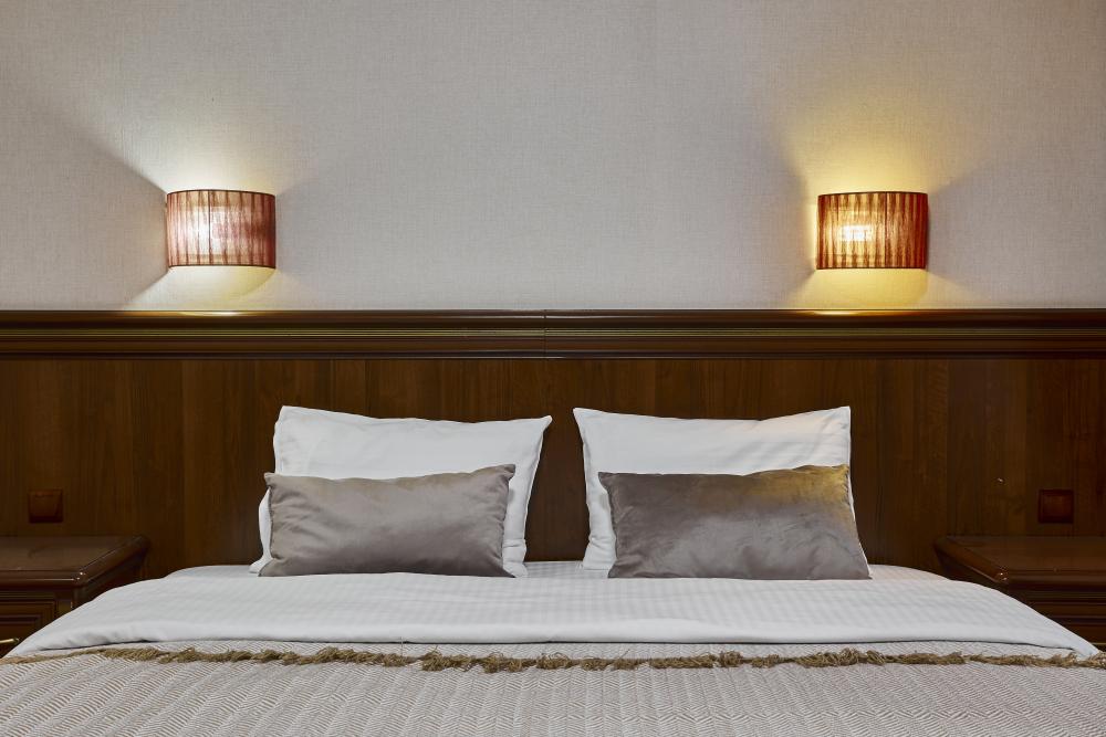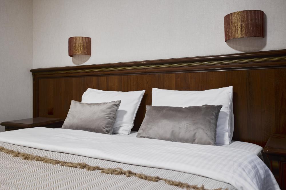 Улучшенная двухместная комната с широкой двуспальной кроватью или двумя одноместные кроватями. В распоряжении гостей собственная ванная комната. Оборудована кондиционером, феном, телевизором, холодильником.