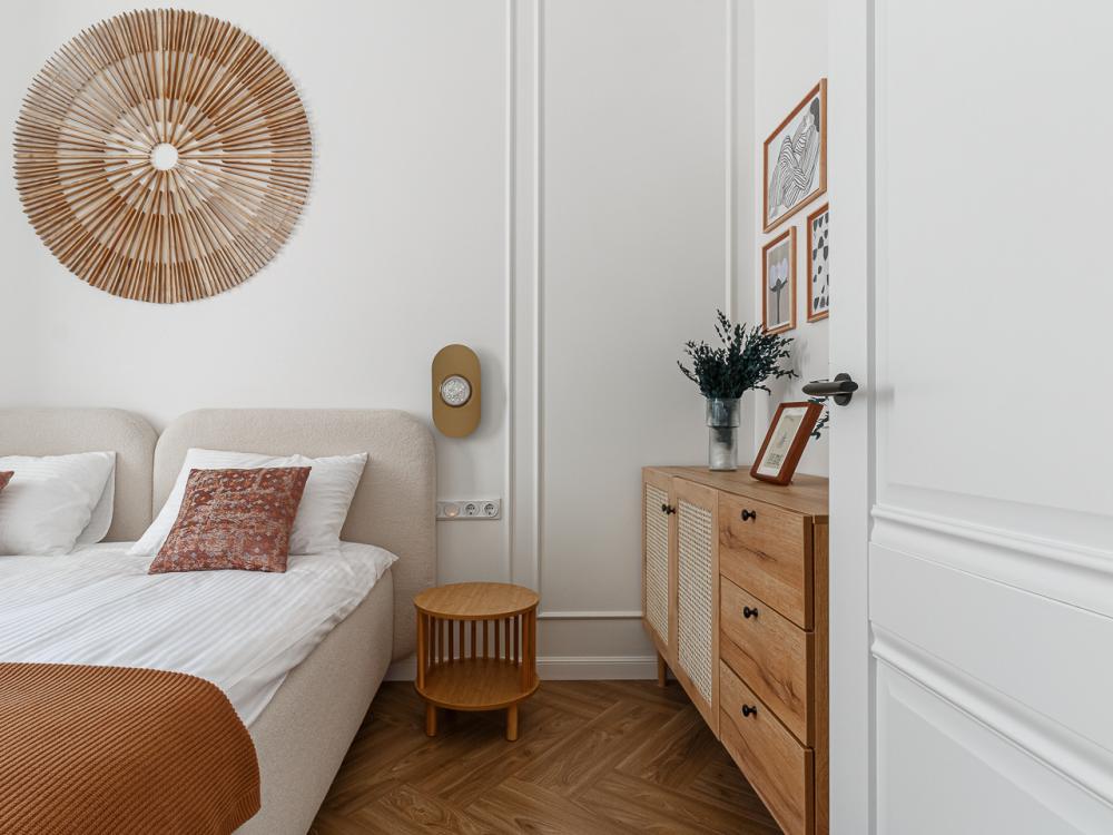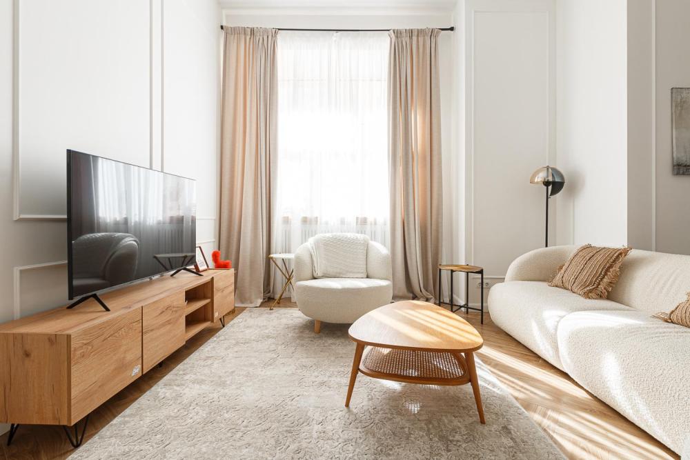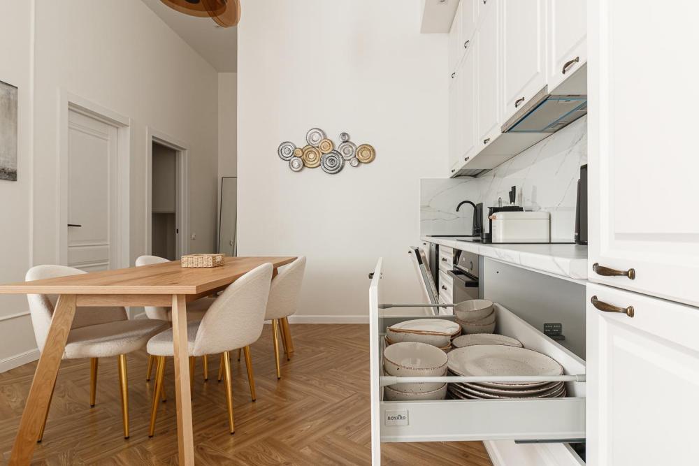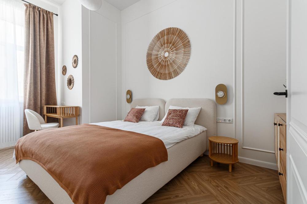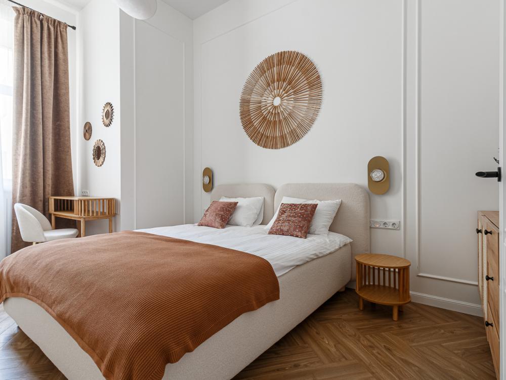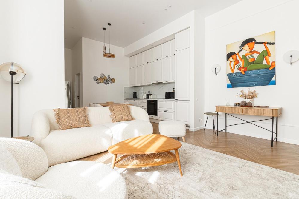Большая, уютная и светлая квартира (кухня-гостиная) с двумя отдельными спальнями / комнатами. Локация. Квартира расположена в тихом центре Санкт-Петербурга. В пешей доступности Таврический и Некрасовский сады (10 минут пешком), метро Чернышевская и пл. Восстания (15 минут пешком). В самом доме, и вокруг него, расположено много продуктовых магазинов, ресторанов и кафе. Окна квартиры выходят в тихий, просторный, светлый и закрытый внутренний двор. Парковочного места нет. Но, вдоль дома имеются платные парковочные места. Описание. Общая площадь квартиры 82.6 м2. Высота потолков 3.5 м. В квартире только что завершен дизайнерский ремонт. Квартира расположена на втором этаже (лифта нет). В квартире новая мебель. Кухня полностью оборудована бытовой техникой (включая и посудомоечную машину). Стиральная машина установлена в отдельной бытовой комнате / кладовке. Всего в квартире 4 спальных места. Размеры спальных мест: Двуспальная кровать в большой спальне: ширина — 160 см, длина — 200 см. Полуторная кровать в маленькой спальне: ширина — 120 см, длина — 200 см. Односпальный диван в гостиной: ширина — 60 см, длина — 170 см. В маленькой комнате имеется рабочее место и маленький гардероб. Также, в квартире предусмотрена отдельная, просторная гардеробная комната. Санузел раздельный: Отдельно – туалет. Отдельно – ванная комната с просторной душевой. Имеется бойлер. Напор воды в квартире очень хороший.