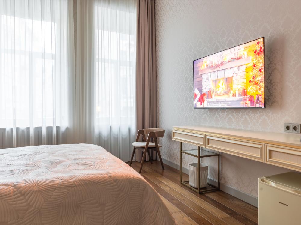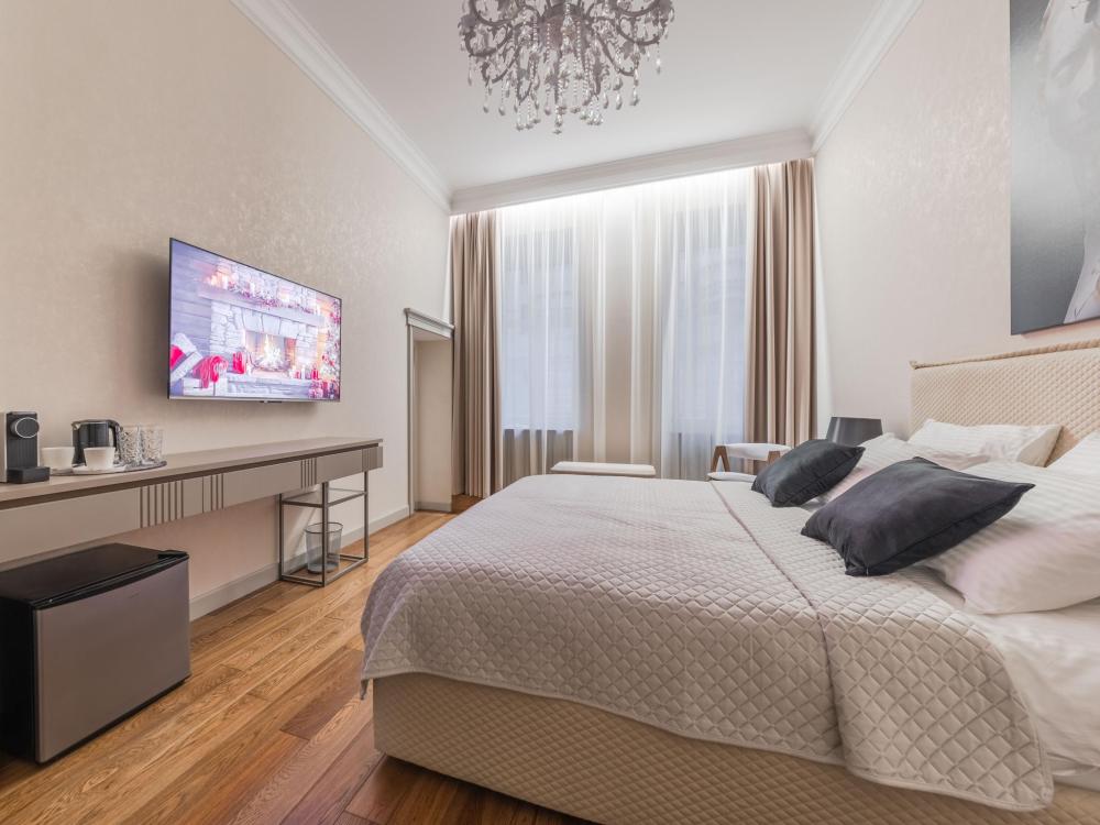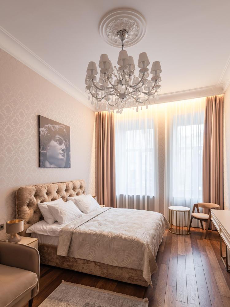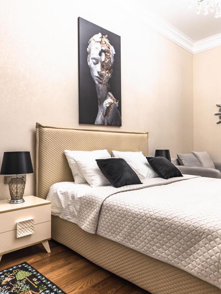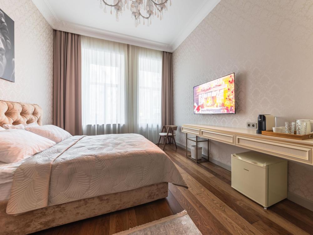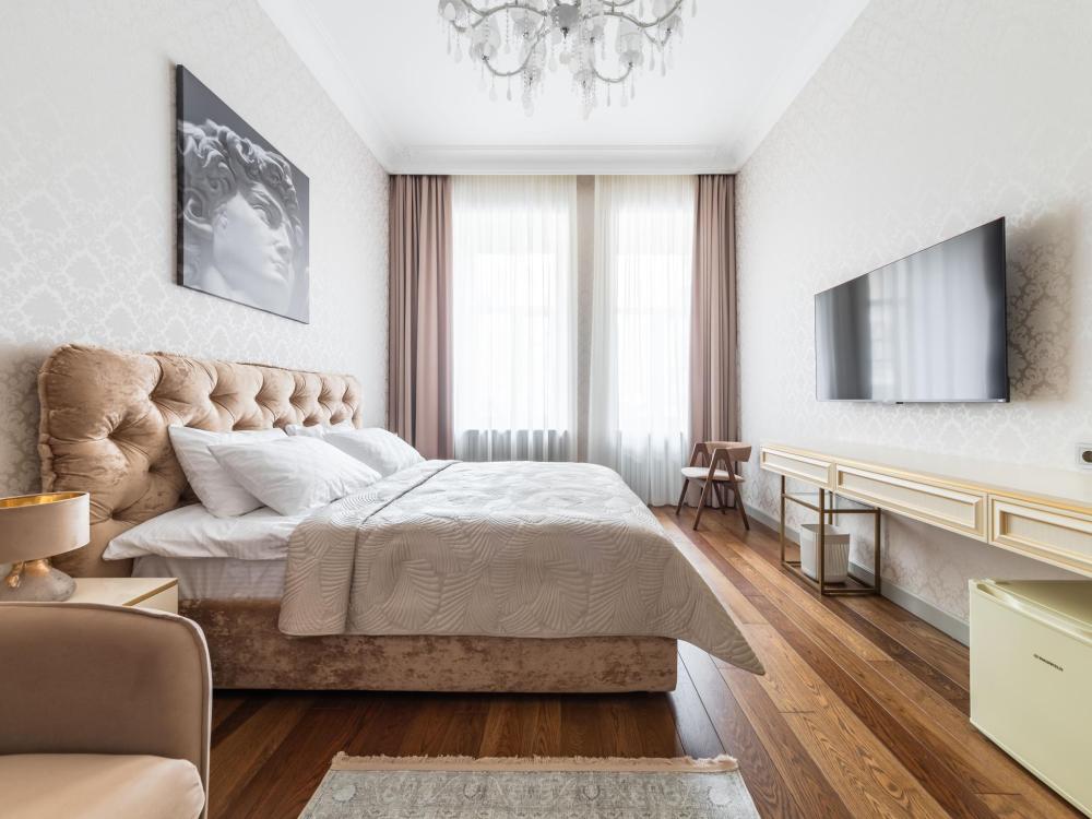 Уникальные апартаменты премиального гостиничного уровня находятся в самом центре Петербурга на главной ресторанной улице города. Расположены в бывшем доходном доме М. В. Баструевой, построенном в стиле необарокко по проекту архитектора Кенеля В. А., автора цирка Чинизелли. Дом расположен в историческом центре города, на улице с богатой историей, где в настоящее время, кроме знаменитых ресторанов, находится много памятников архитектуры, объектов культуры. Вид из окон на знаменитый дом, в котором жил писатель Сергей Довлатов. Рядом БДТ им. Г.А. Товстоногова, МДТ, театр Европы. В 7 минутах пешком Невский проспект, рядом набережная реки Фонтанки и знаменитые 5 углов. Парадный вход, широкая лестница, консьерж. Вход с улицы Рубинштейна. Идеальным преимуществом является красивый закрытый внутренний двор и бесплатная парковка на несколько машиномест. Ремонт был закончен в ноябре 2024 года. Апартаменты оснащены бесключевым доступом, возможен заезд в любое время суток. Атмосфера роскоши апартаментов представлена уникальным дизайном и создана отделочными материалами высшего качества. Высокие потолки и большие окна наполняют комнату светом, дубовый паркет обеспечивает тепло и шумоизоляцию. В апартаментах есть: мебель и техника высокого класса, широкие мраморные подоконники, большая кровать размера king-size с ортопедическим матрасом и полноценный раскладывающийся диван, смарт ТВ, безлимитный и бесплатный wifi, капсульная кофемашина Nespresso, чайник, фен, утюг, гладильная доска, мини-бар, стиральная машина, новое постельное белье и новые полотенца.