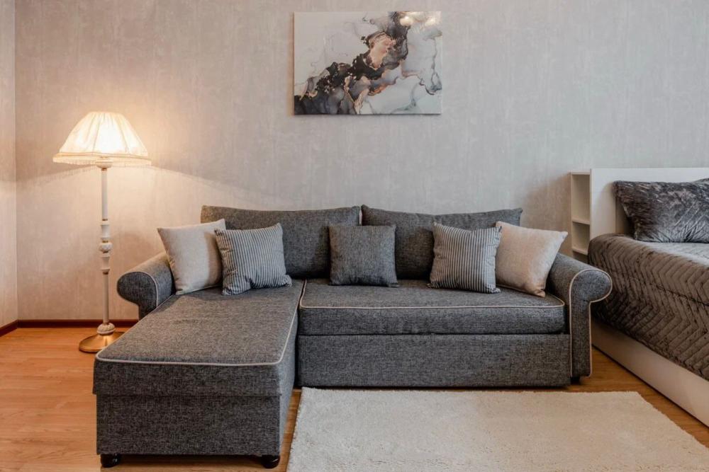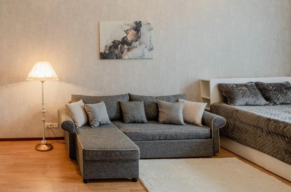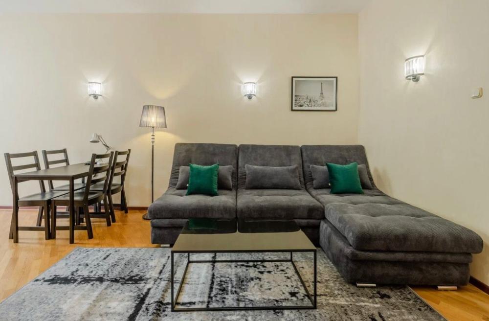 3-комнатные апартаменты улучшенные с вместимостью до 12 гостей. 2 спальни, просторная гостиная, отдельная кухня и 2 полноценных санузла с душем и ванной. Квартира оборудована всем необходимым для комфортного проживания: 2 двуспальные кровати шириной 160 см, 3 раскладных двуспальных дивана шириной 160 см и раскладной двуспальный диван шириной 140 см, 2 шкафа, кондиционер, посудомоечная машина, духовой шкаф, чайник, микроволновая печь, стиральная машина, утюг, гладильная доска, фен, постельное белье, комплект банных полотенец, 2 ТВ, Wi-Fi.