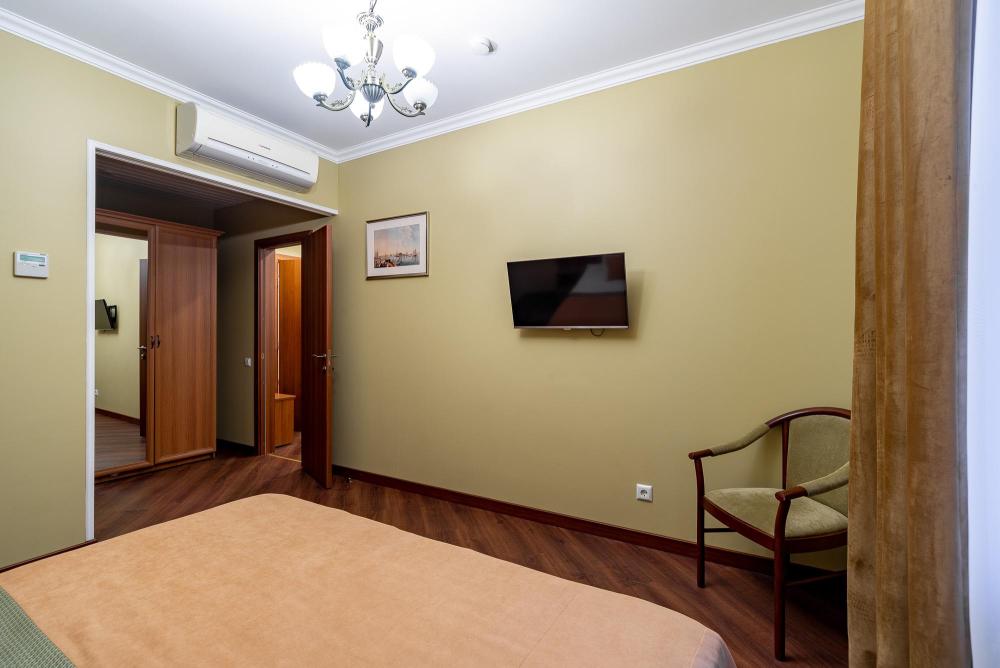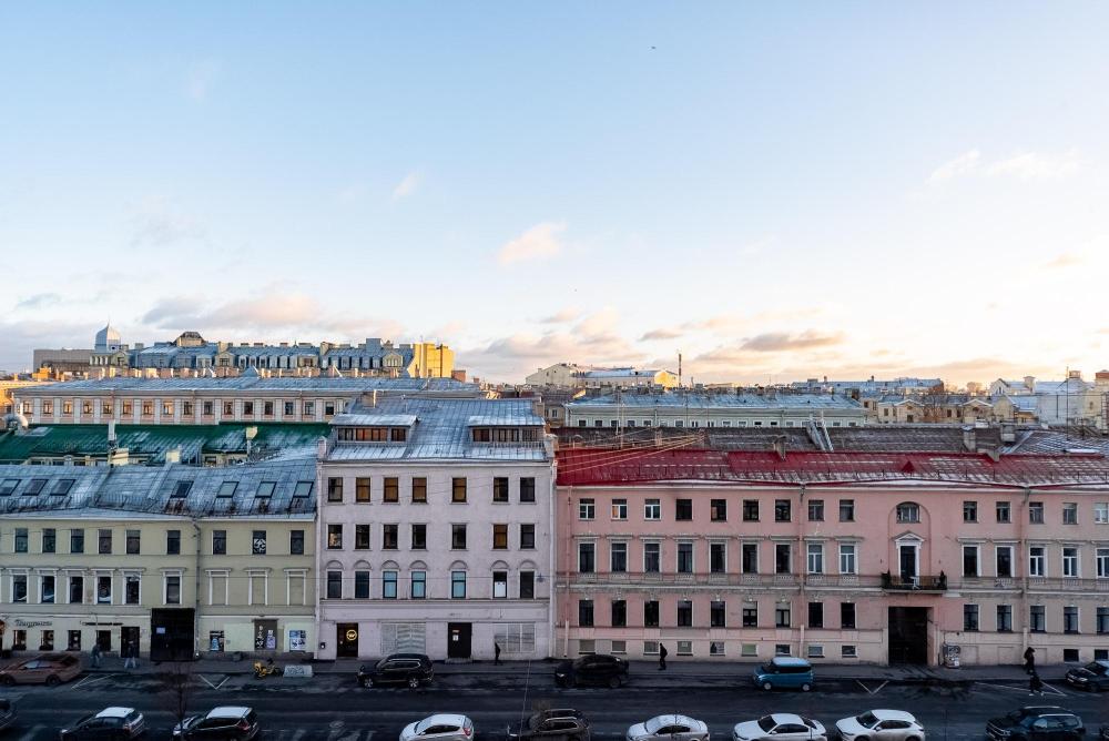 Евро-двухкомнатная квартира с видом на Столярный переулок с 1 двуспальной кроватью.