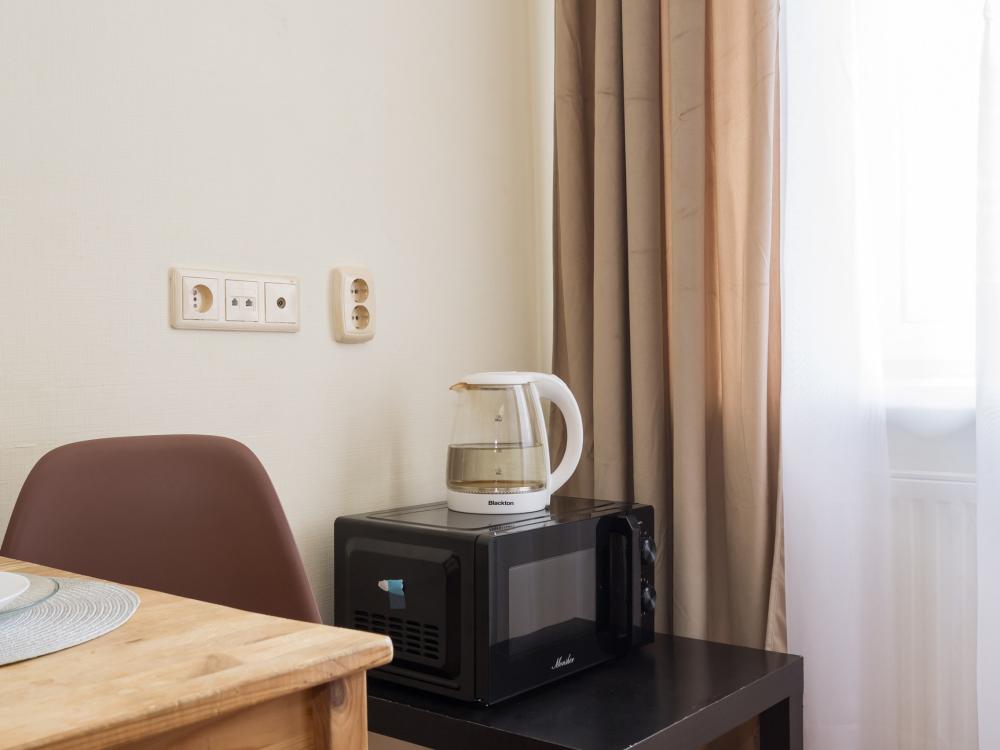 Современные, светлые и полностью оборудованные апартаменты. Количество возможных гостей 2. Сервис полностью сопоставим с отелем: встреча, белье, уборка, поддержка 24/7. Дизайн и оснащение намного лучше, чем в отеле, так как вся инфраструктура сконцентрирована в самом номере. Возможно готовить еду на современном оборудовании. Новый ремонт и мебель. Телевизор. Посуда.