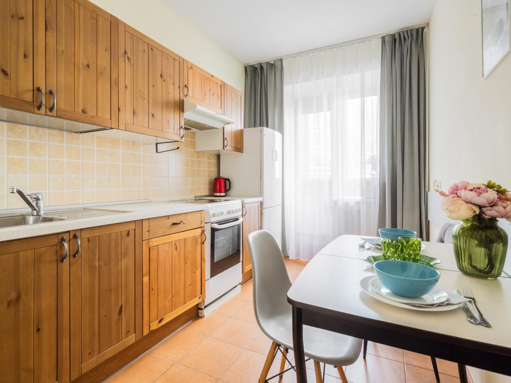 Современные, светлые и полностью оборудованные апартаменты. Количество возможных гостей 2 + 1 Полноценная однокомнатная квартира с 2-мя зонами с балконом. Сервис полностью сопоставим с отелем: встреча, белье, уборка, поддержка 24/7. Дизайн и оснащение намного лучше, чем в отеле, так как вся инфраструктура сконцентрирована в самом номере. Возможно готовить еду на современном оборудовании. Новый ремонт и мебель. Телевизор. Посуда.