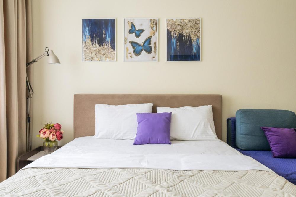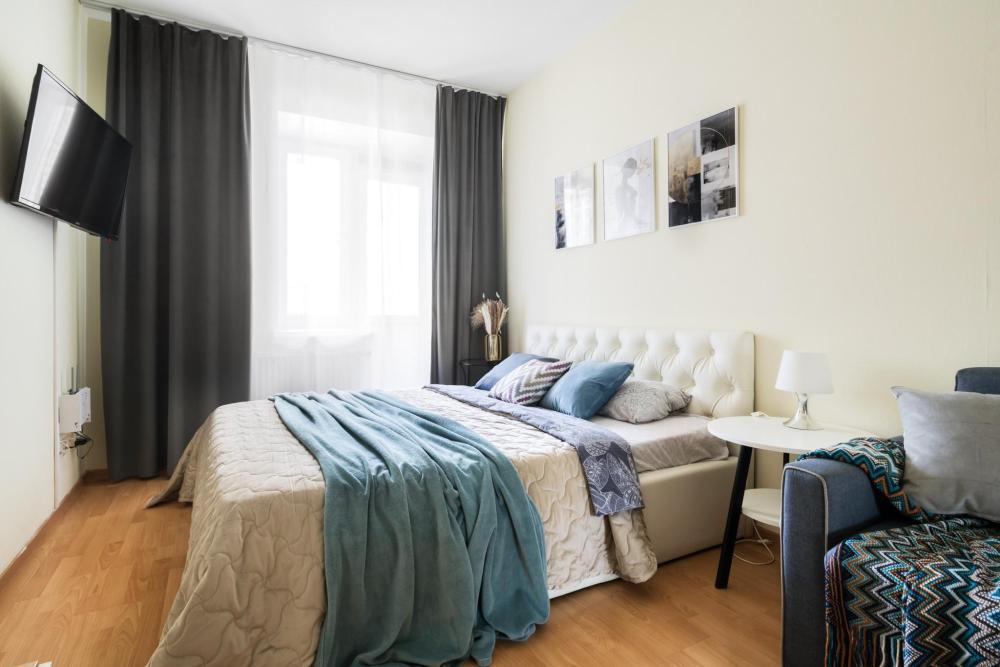 Современные, светлые и полностью оборудованные апартаменты. Количество возможных гостей 2 Полноценная однокомнатная квартира с 2-мя зонами с балконом. Сервис полностью сопоставим с отелем: встреча, белье, уборка, поддержка 24/7. Дизайн и оснащение намного лучше, чем в отеле, так как вся инфраструктура сконцентрирована в самом номере. Возможно готовить еду на современном оборудовании. Новый ремонт и мебель. Телевизор. Посуда.