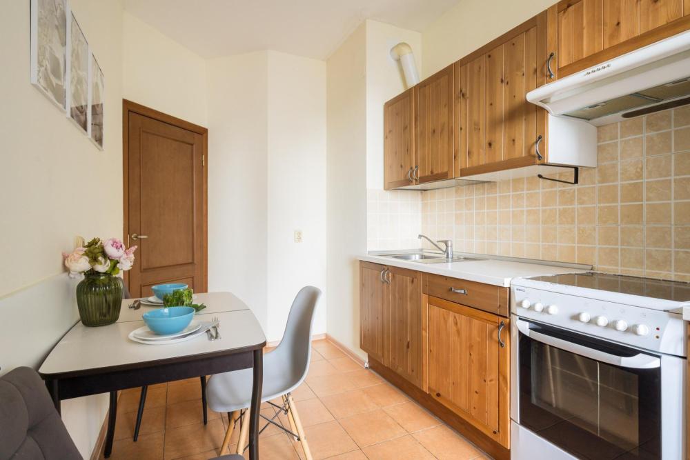 Современные, светлые и полностью оборудованные апартаменты. Количество возможных гостей 2 + 1Полноценная однокомнатная квартира с 2-мя зонами. Сервис полностью сопоставим с отелем: встреча, белье, уборка, поддержка 24/7. Дизайн и оснащение намного лучше, чем в отеле, так как вся инфраструктура сконцентрирована в самом номере. Возможно готовить еду на современном оборудовании. Новый ремонт и мебель. Телевизор. Посуда.