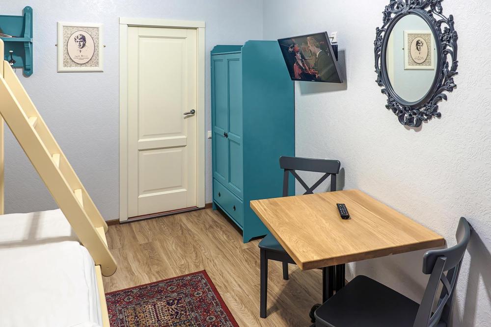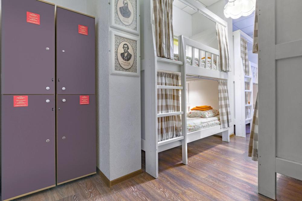 В комнате: четыре двухъярусные кровати, индивидуальные шкафчики-локеры, вешалка, зеркало и вентилятор. Комната сдается по местам. Удобства (душ, туалет) находятся на этаже.