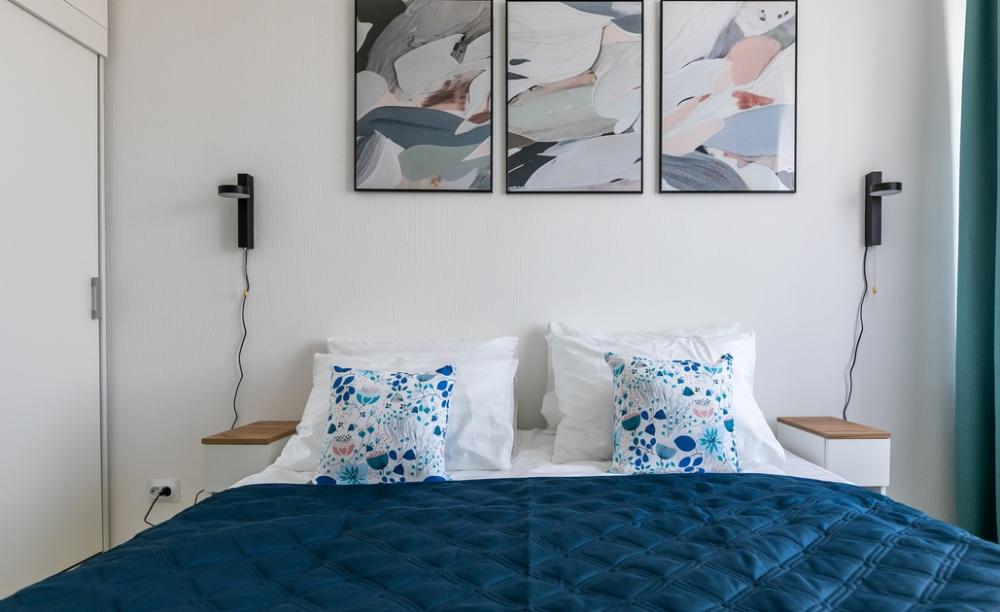 В апартаментах: 5 спальных мест: просторная двуспальная кровать 160х200, 2 односпальные кровати 80х200, которые могут быть объединены в одну двуспальную, диван-кровать 100х200, телевизор Smart TV, скоростной Wi-Fi. Современная кухня с холодильником, посудомоечной машиной, СВЧ печью, плитой и набором посуды. Стиральная машина, утюг, фен, гладильная доска, сушилка для белья, гигиенические принадлежности (мыло, шампунь, гель), постельное белье и полотенца отельного качества - гарантия чистоты и гигиены.