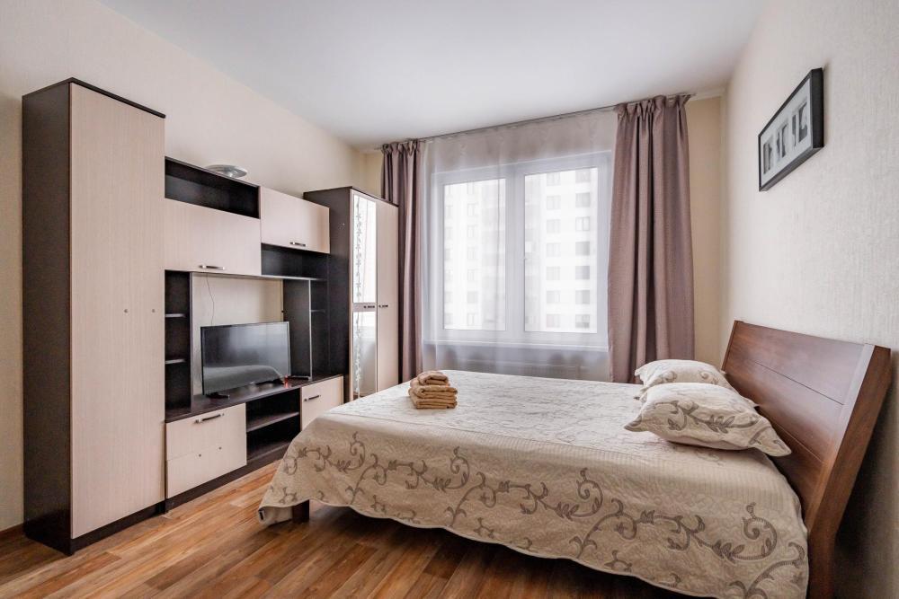 Сдаются уютные апартаменты в новом ЖК София на Южном шоссе. В квартире есть все необходимое для комфортного размещения до 6 гостей: двуспальная кровать с ортопедическим матрасом (160 см), двуспальный диван ИКЕА (140 см), диван-кровать ИКЕА на кухне (140 или 80 см). В кухне есть электроплита, холодильник, СВЧ, чайник, посуда на 6 персон. Также гостям предоставляются свежее постельное белье, полотенца, подушки, одеяла, фен, утюг, гладильная доска, стиральная машина, сушилка. В ванной есть средства личной гигиены (гель для душа, мыло, туалетная бумага). А также гостям доступен ТВ на 20 цифровых каналов и бесплатный безлимитный WiFi.