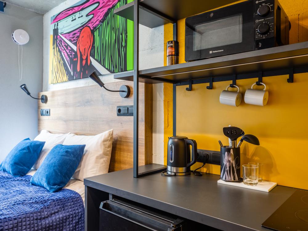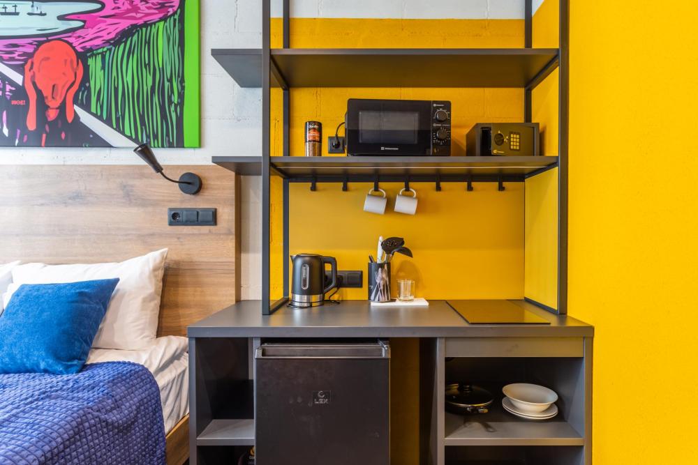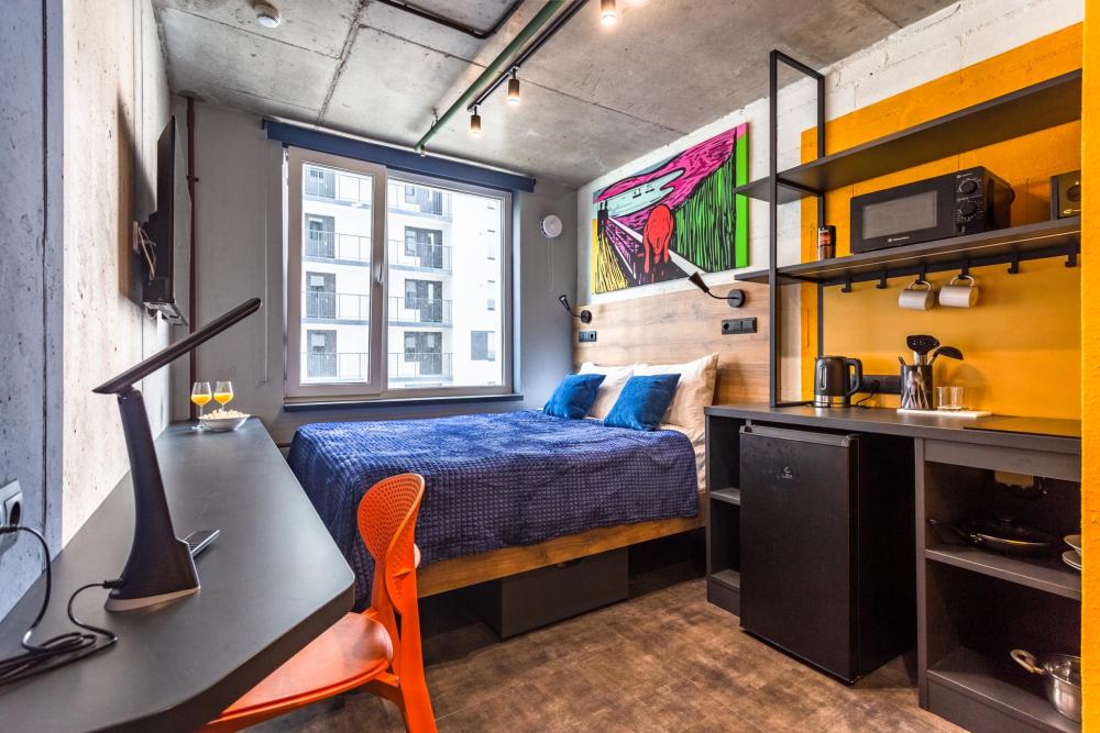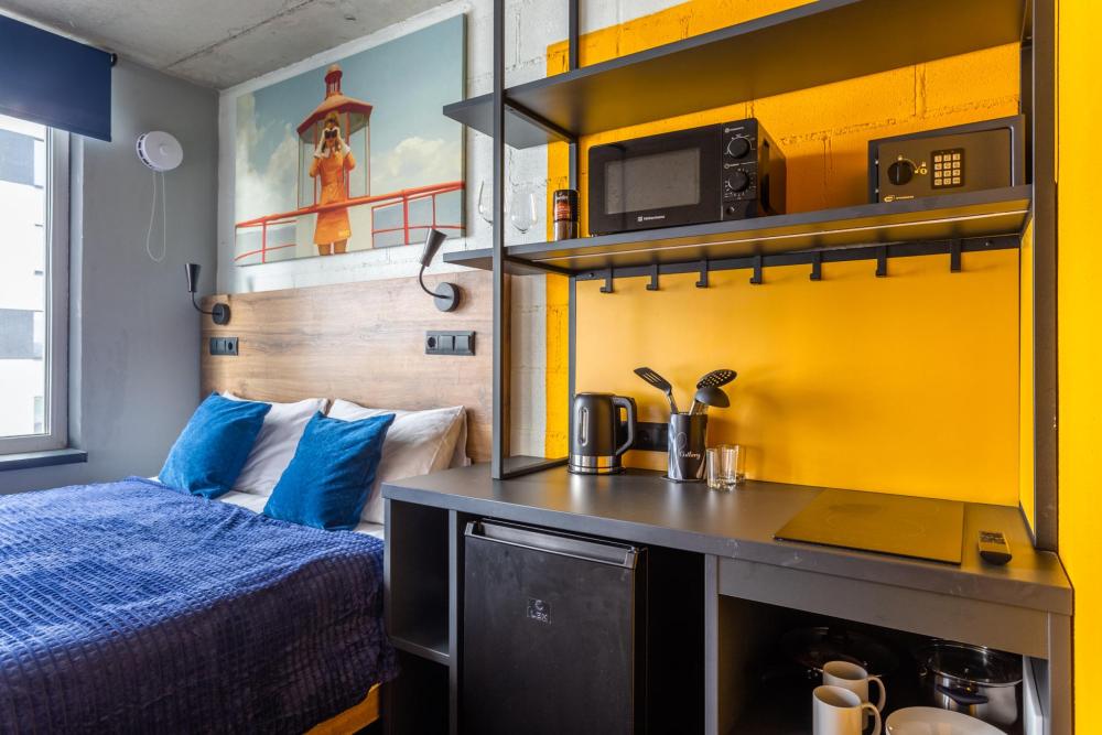 В апартаменте есть: Двуспальная кровать с ортопедическим матрасом Кухня с холодильником, варочной панелью, микроволновкой, чайником и посудой Фен Smart TV и высокоскоростной Wi-Fi Жидкое мыло Чай, кофе, сахар, соль, масло Удобства заселения: Бесконтактное самостоятельное заселение — быстро, удобно и безопасно! После оплаты бронирования вы получите подробную инструкцию по заселению с кодами доступа. Правила проживания в апартаментах ELIZA HOME В квартире категорически запрещается: Курение любых видов табачных изделий, электронных сигарет, вейпов и прочих курительных средств. Проведение шумных вечеринок и мероприятий. Данные правила не только соответствуют законодательству, но и направлены на уважение комфорта соседей. Нарушение этих условий приведёт к досрочному выселению без возврата залога. Время заезда и выезда: Заселение — после 15:00 Выезд — до 12:00 Важное дополнение про спальное бельё: Для проживания гостю предоставляется один комплект постельного белья для двуспальной кровати. При необходимости замены белья во время проживания взимается дополнительная плата. При бронировании квартиры на двоих гостей, спящих на разных местах (один — на кровати, другой — на диване), за второй комплект постельного белья также взимается дополнительная плата. Возможность раннего заселения или позднего выезда обсуждается индивидуально!