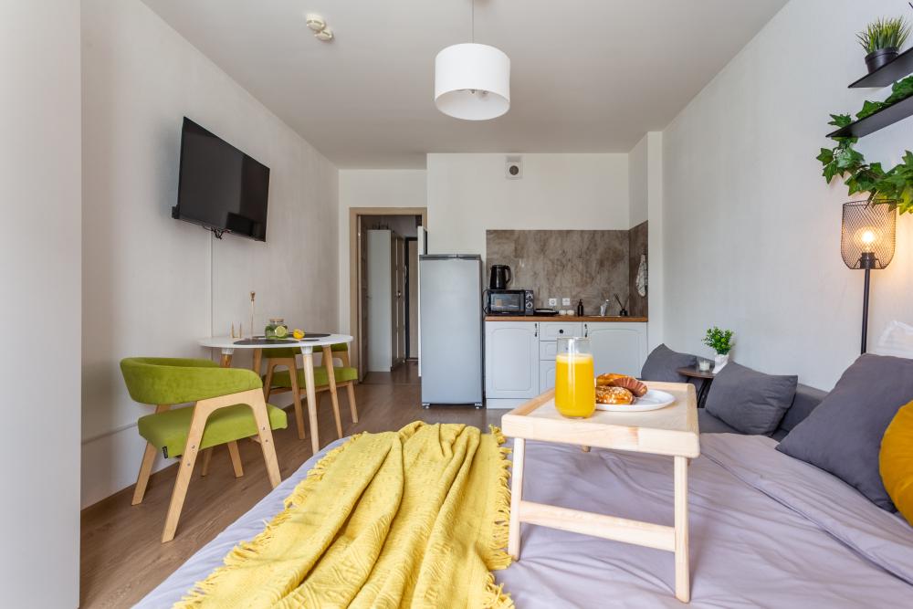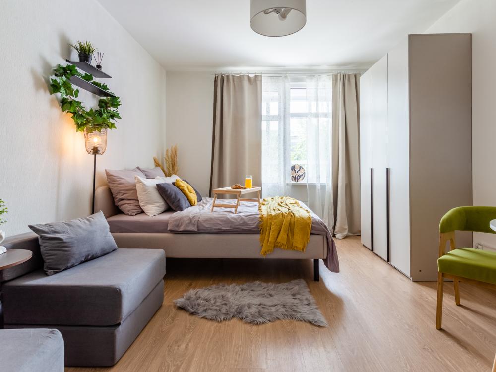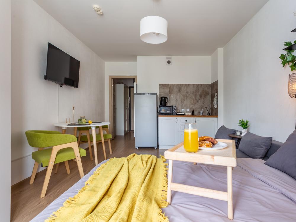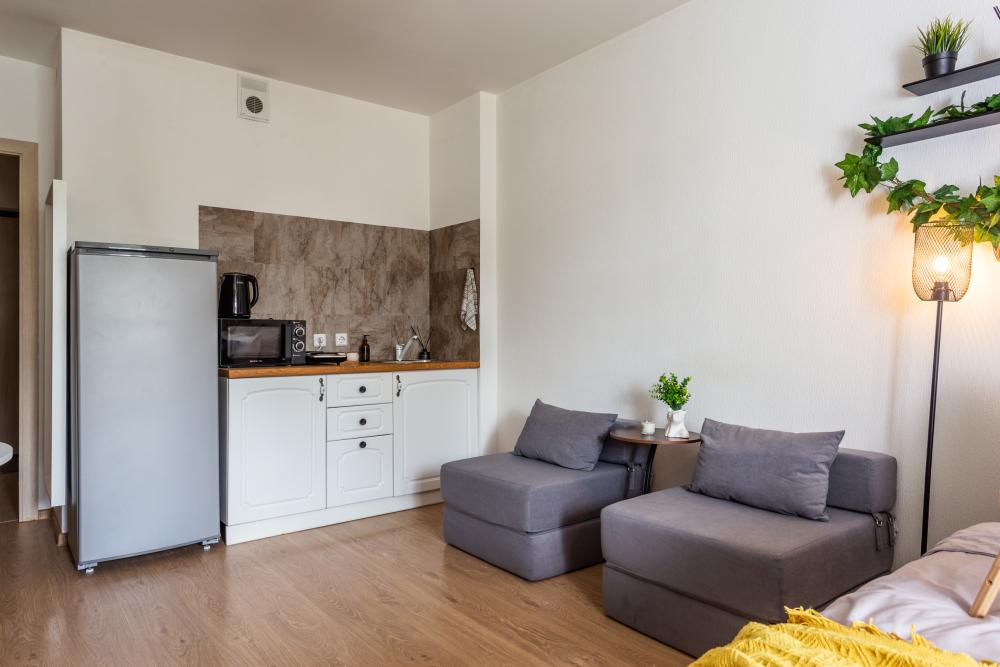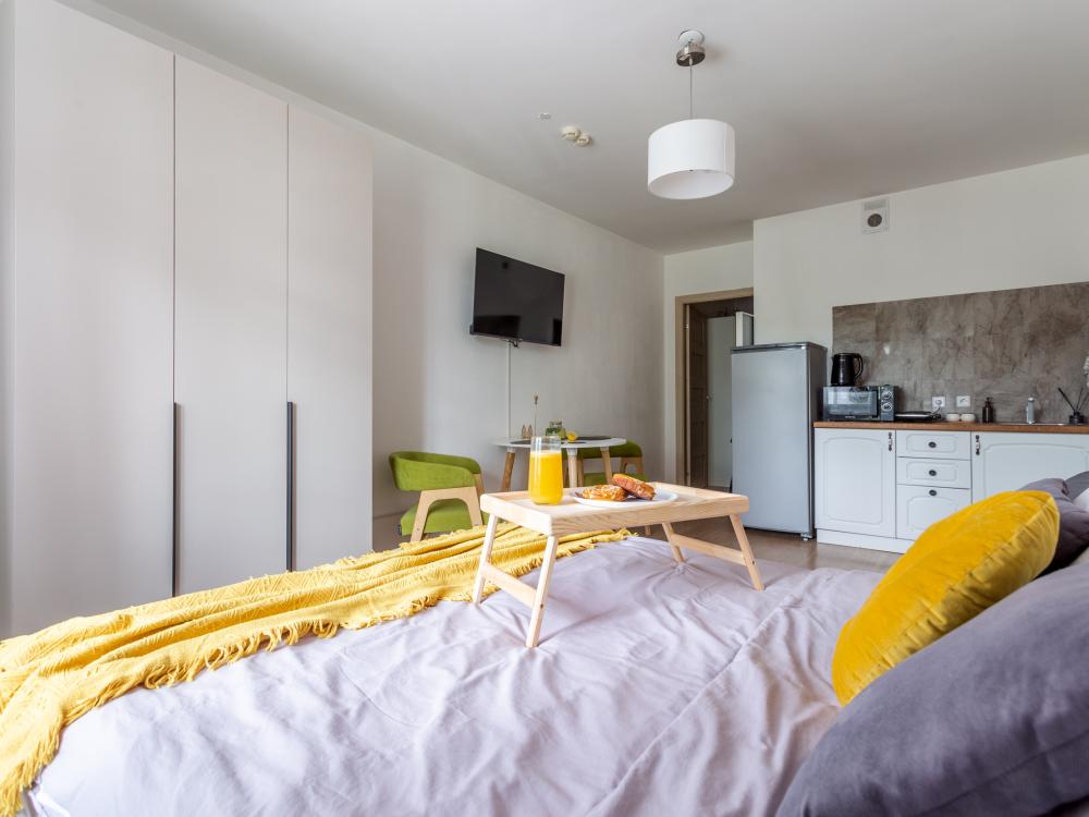 Внутри вы найдете все необходимое для комфортного проживания: ✅ Двуспальная кровать с ортопедическим матрасом ✅ Два раскладных диванчика ✅ Кухня со всем необходимым (холодильник, настольная плита, микроволновая печь, чайник, а так же посуда и приборы) ✅ Фен ✅ ТV (онлайн-кинотеатры, YouTube) ✅ Высокоскоростной Wi-Fi ✅ Шампунь, гель для душа, жидкое мыло ✅ Чай, кофе, сахар, конфеты, соль, масло ? БЕСКОНТАКТНОЕ ЗАСЕЛЕНИЕ ? Мы ценим ваше время, поэтому во всех наших апартаментах настроено удаленное бесконтактное заселение. Сотни наших гостей уже оценили удобство такой системы! Это быстро, удобно, безопасно. ✅ Документы для командированных сотрудников предоставляем по запросу. Мы дорожим качеством своих апартаментов! Залог неотъемлемая часть бронирования. Мы не придираемся к состоянию апартаментов, не имея на то веской причины. Стараемся всегда лояльно и максимально справедливо проверять апартаменты на предмет ущерба или порчи. Проживание лиц младше 18 лет только с родителями! В КВАРТИРЕ КАТЕГОРИЧЕСКИ ЗАПРЕЩАЕТСЯ: ? Курение ЛЮБЫХ форм курительных средств, жидкостей и пр. ? Шумные вечеринки Это не только требование закона, но и простое уважение к соседям! Нарушение данного условия влечёт за собой досрочное выселение с удержанием залога в полном объёме. ⏰ Заселение – после 15:00 ⏰ Выезд – до 12:00 Условия раннего заселения и позднего выезда оговариваются индивидуально ❤️ Сохраняйте в Избранное, будьте в курсе лучших предложений от нас! C любовью ♥️ ELIZA HOME, посуточная аренда квартир и апартаментов в Санкт-Петербурге.