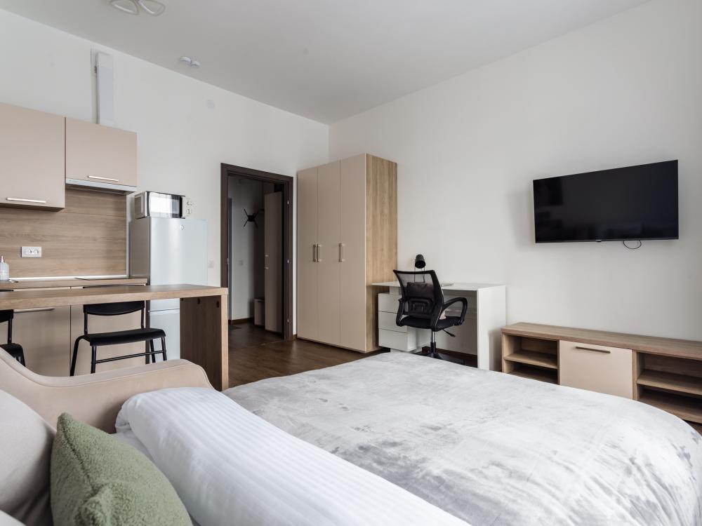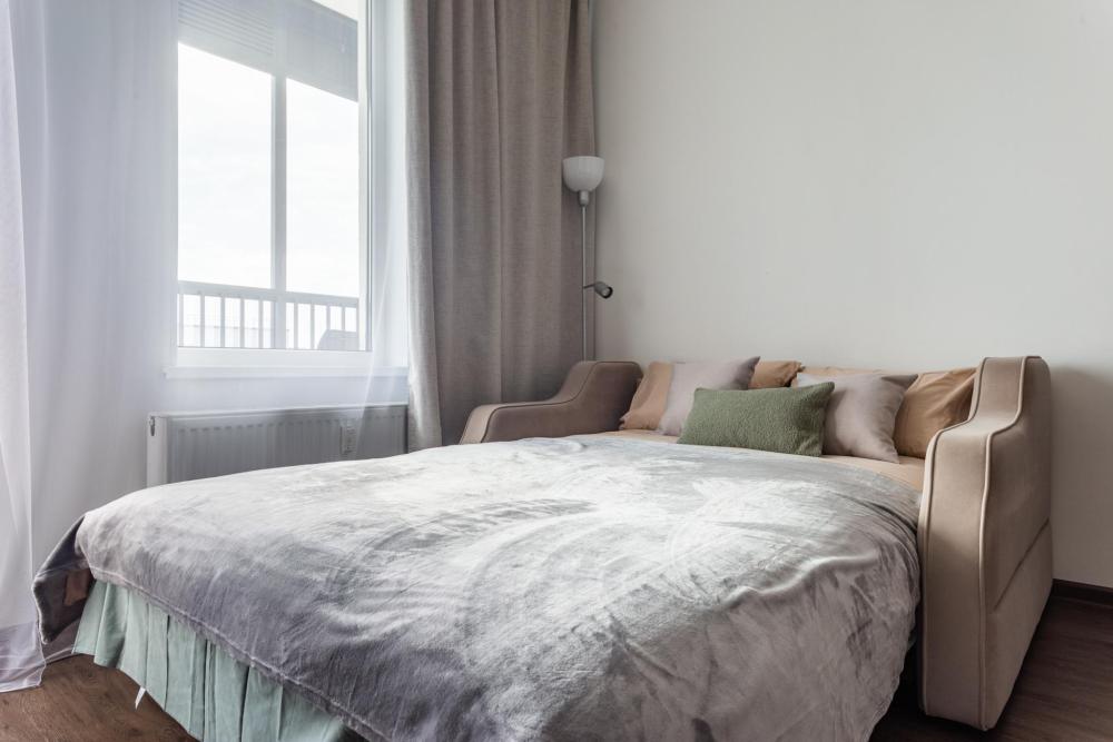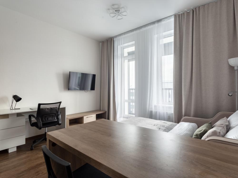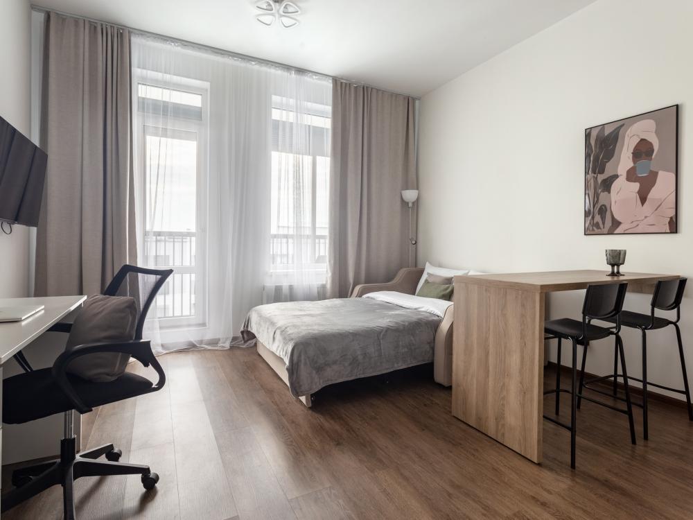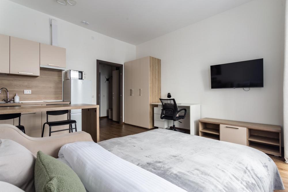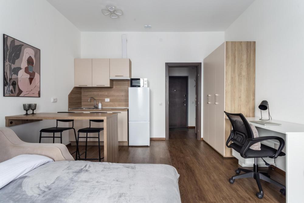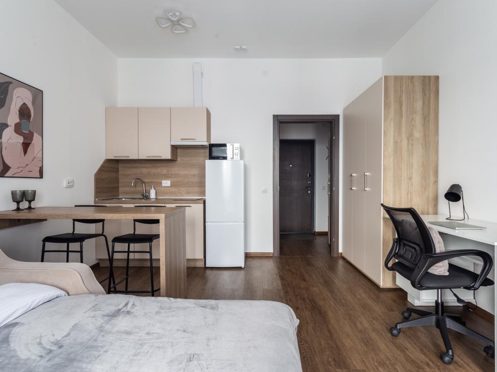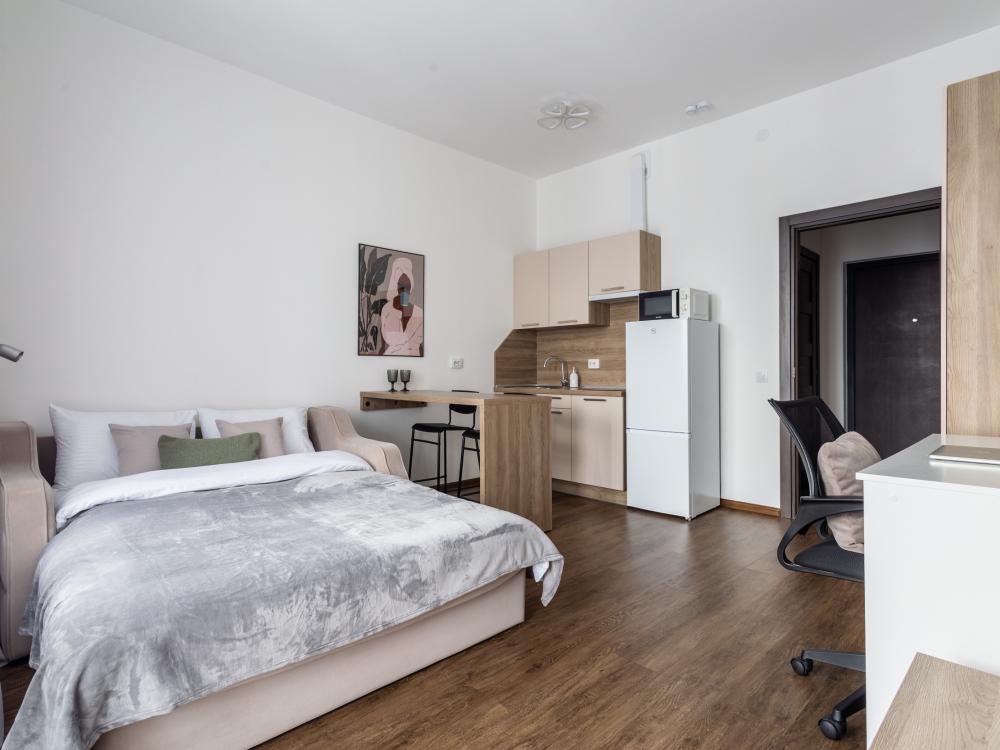 В СТУДИИ ЕСТЬ: ✅Двуспальный диван ✅ Кухня со всем необходимым (холодильник, варочная панель, микроволновая печь, чайник, а так же посуда и приборы) ✅ Фен ✅ TV ✅ Высокоскоростной Wi-Fi ✅ Шампунь, кондиционер, жидкое мыло ✅ Чай, кофе, сахар, конфеты, соль, масло ? БЕСКОНТАКТНОЕ ЗАСЕЛЕНИЕ ? Мы ценим ваше время, поэтому во всех наших апартаментах настроено удаленное бесконтактное заселение. После оплаты бронирования вы получаете подробную инструкцию по заселению. Сотни наших гостей уже оценили удобство такой системы! Это быстро, удобно, безопасно. ✅ Документы для командированных сотрудников предоставляем по запросу! Мы дорожим качеством своих апартаментов. Залог неотъемлемая часть бронирования. После проверки состояния объекта размещения на предмет соблюдения правил дома и сохранности имущества залог будет полностью возвращен вам также на карту. Мы не придираемся к состоянию апартаментов, не имея на то веской причины, стараемся всегда лояльно и максимально справедливо проверять апартаменты на предмет ущерба или порчи. Проживание лиц младше 18 лет только с родителями. ⛔️ В КВАРТИРЕ КАТЕГОРИЧЕСКИ ЗАПРЕЩАЕТСЯ: ? Курение ЛЮБЫХ форм курительных средств, жидкостей и пр. ? Шумные вечеринки Это не только требование закона, но и простое уважение к соседям. Нарушение данного условия влечёт за собой досрочное выселение с удержанием залога в полном объёме. ⏰ Заселение - после 15:00 ⏰ Выезд - до 12:00 Важное дополнение про спальное бельё: Для проживания гостю предоставляется один комплект постельного белья для двуспальной кровати. При необходимости замены белья во время проживания взимается дополнительная плата. При бронировании квартиры на двоих гостей, спящих на разных местах (один — на кровати, другой — на диване), за второй комплект постельного белья также взимается дополнительная плата. Условия раннего заселения и позднего выезда оговариваются индивидуально.