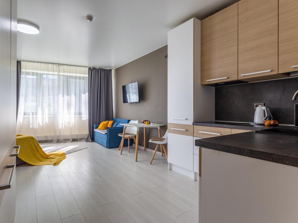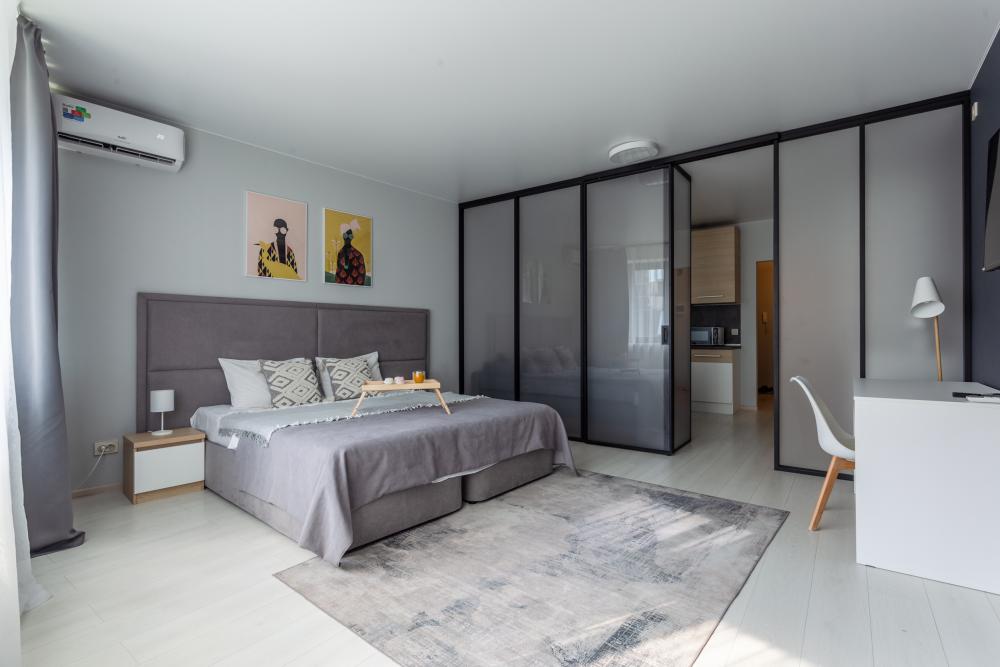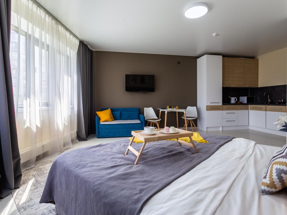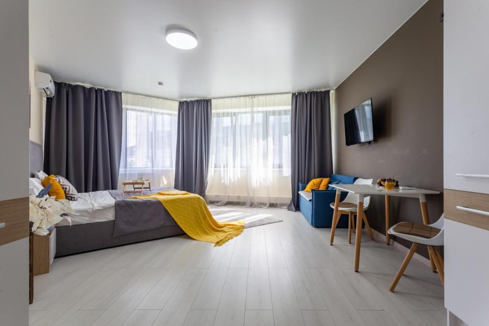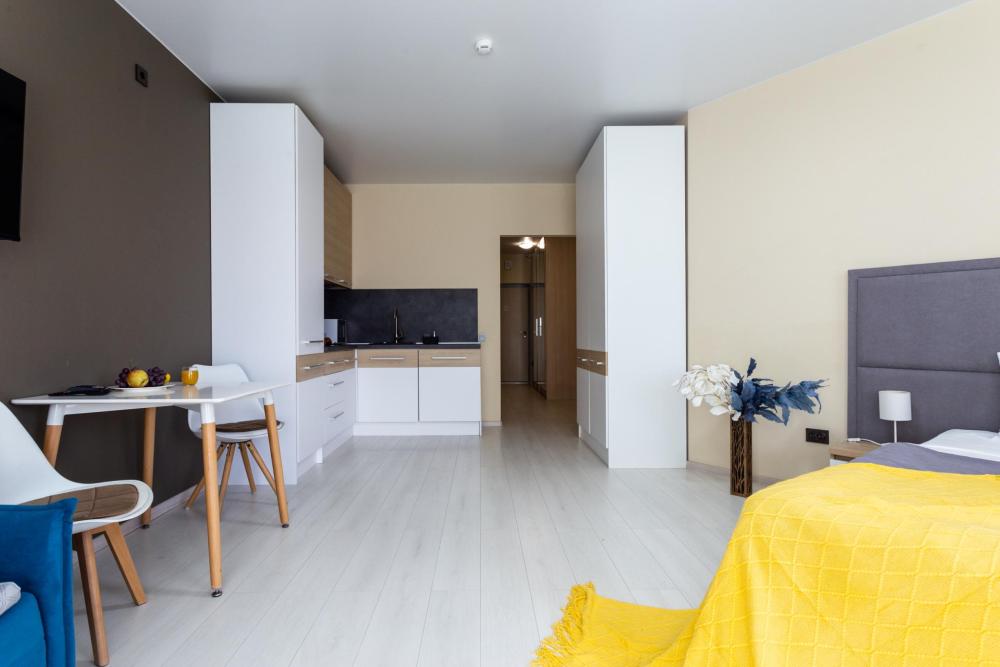 О СТУДИИ Уютная студия в апарт-отеле «Next» — идеальный выбор для пар, путешественников и деловых гостей. В студии есть всё для комфорта: · Двуспальная кровать с ортопедическим матрасом · Удобный диван, на котором могут поместиться один взрослый или двое детей · Функциональная кухня: холодильник, варочная панель, посудомоечная машина, микроволновка, чайник и вся необходимая посуда · Техника: Smart TV, высокоскоростной Wi-Fi, кондиционер, фен, утюг · Средства гигиены: шампунь, гель для душа, жидкое мыло · Приятный бонус: чай, кофе, сахар, соль, масло ПРАВИЛА ПРОЖИВАНИЯ · Строгий запрет на курение (включая вейпы и кальяны) · Запрещены вечеринки и шумные мероприятия · Заселение строго с 18 лет · На время проживания обязательно вносится залог Нарушение правил ведет к досрочному выселению без компенсации. Время заезда/выезда: · Заезд — после 15:00 · Выезд — до 12:00 Ранний заезд и поздний выезд обсуждаются индивидуально.