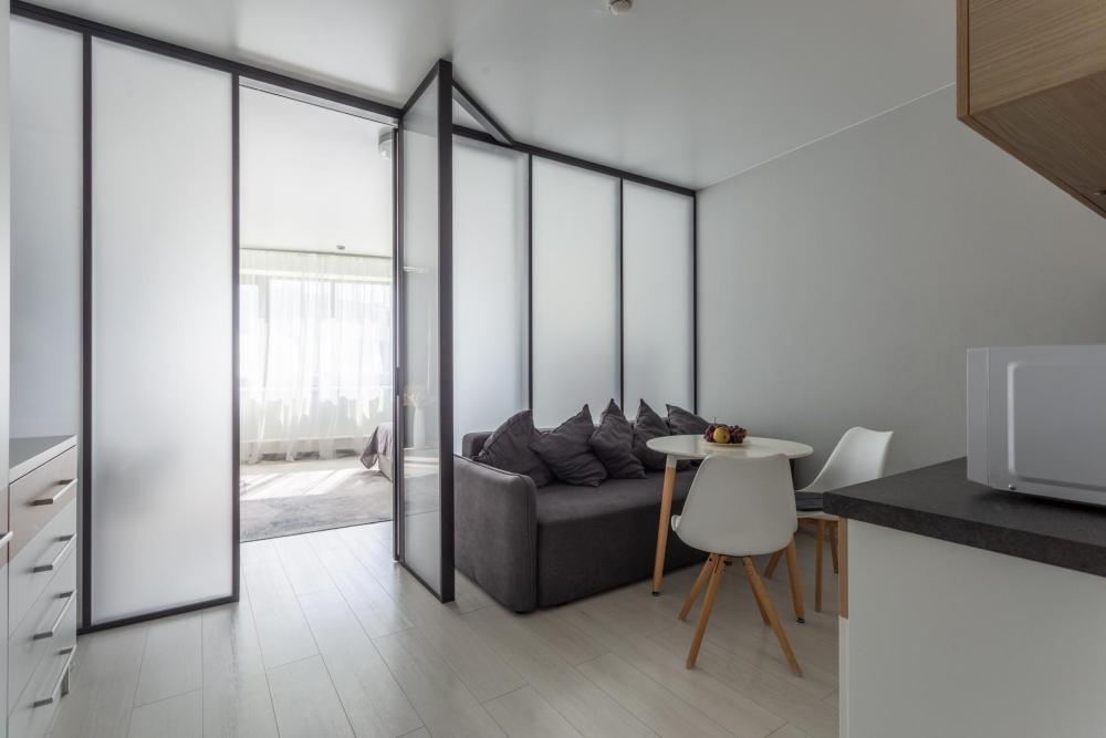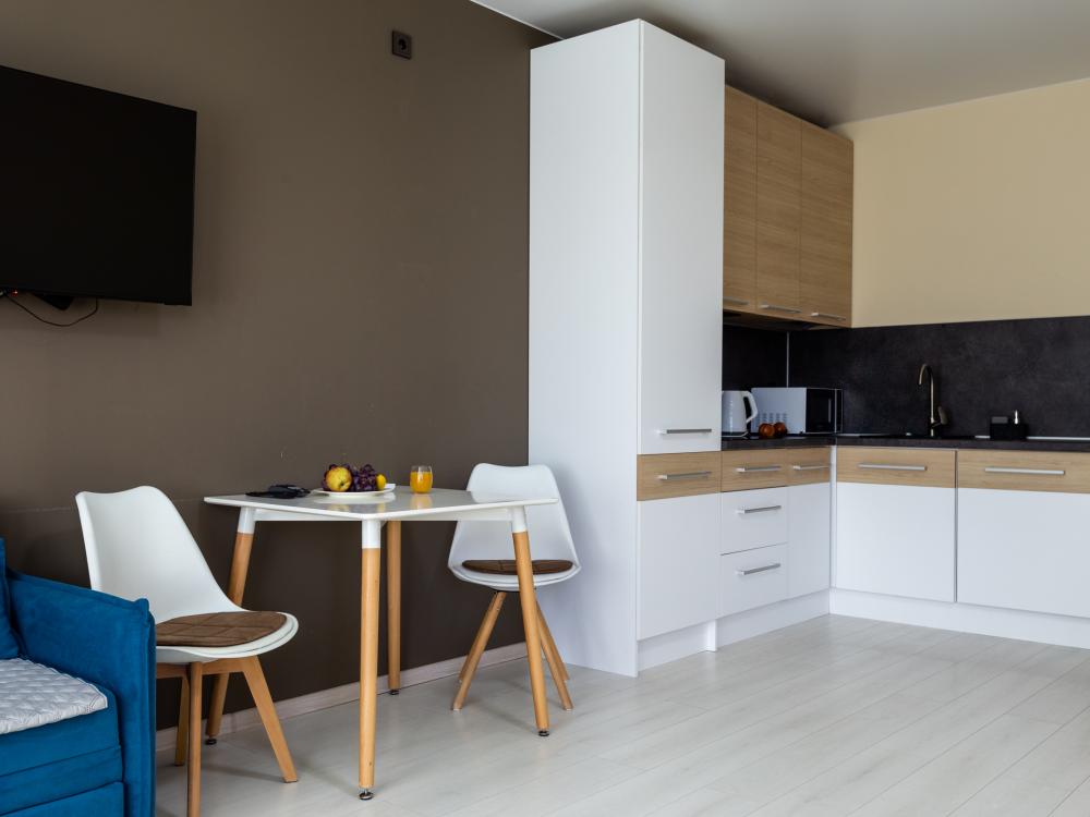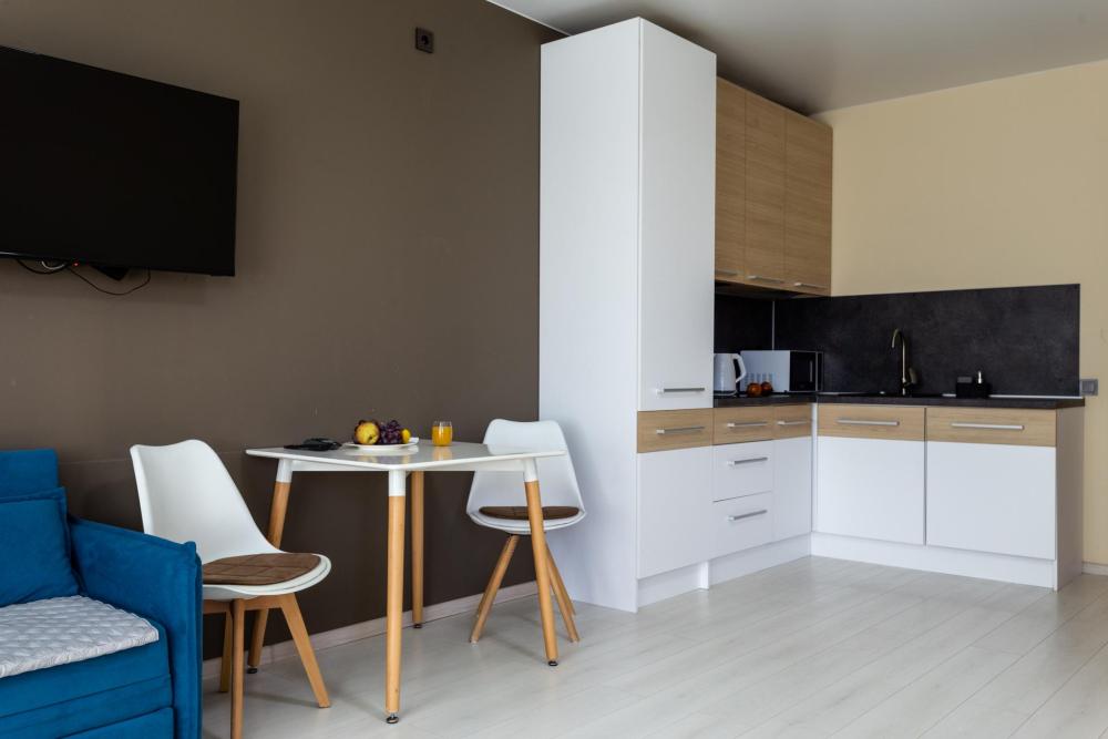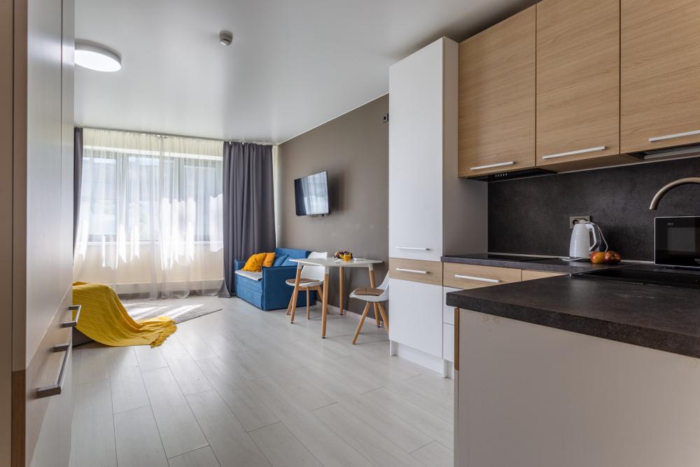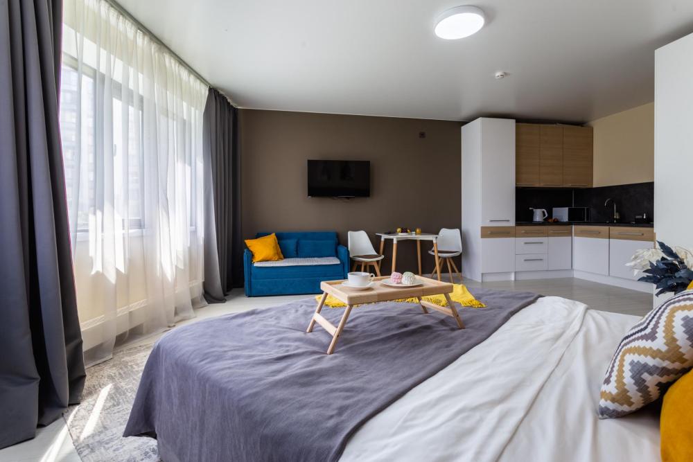О СТУДИИ Уютная студия в апарт-отеле «Next» — идеальный выбор для пар, путешественников и деловых гостей. В студии есть всё для комфорта: · Двуспальная кровать с ортопедическим матрасом · Удобный диван, на котором могут поместиться один взрослый или двое детей · Функциональная кухня: холодильник, варочная панель, посудомоечная машина, микроволновка, чайник и вся необходимая посуда · Техника: Smart TV, высокоскоростной Wi-Fi, кондиционер, фен, утюг · Средства гигиены: шампунь, гель для душа, жидкое мыло · Приятный бонус: чай, кофе, сахар, соль, масло ПРАВИЛА ПРОЖИВАНИЯ · Строгий запрет на курение (включая вейпы и кальяны) · Запрещены вечеринки и шумные мероприятия · Заселение строго с 18 лет · На время проживания обязательно вносится залог Нарушение правил ведет к досрочному выселению без компенсации. Время заезда/выезда: · Заезд — после 15:00 · Выезд — до 12:00 Ранний заезд и поздний выезд обсуждаются индивидуально.