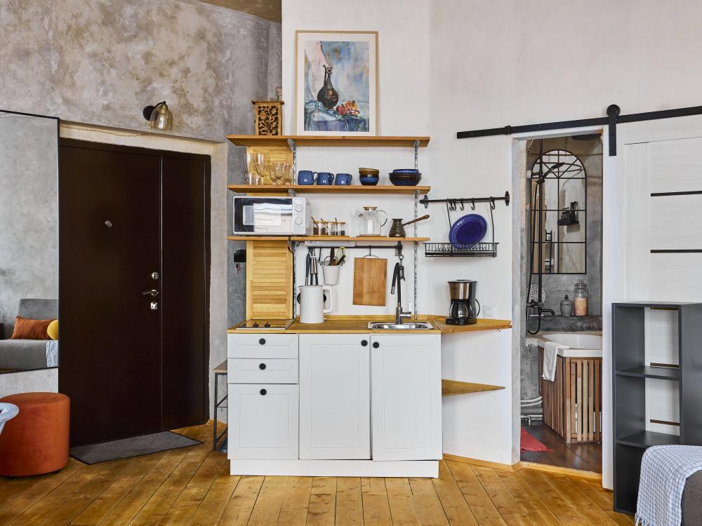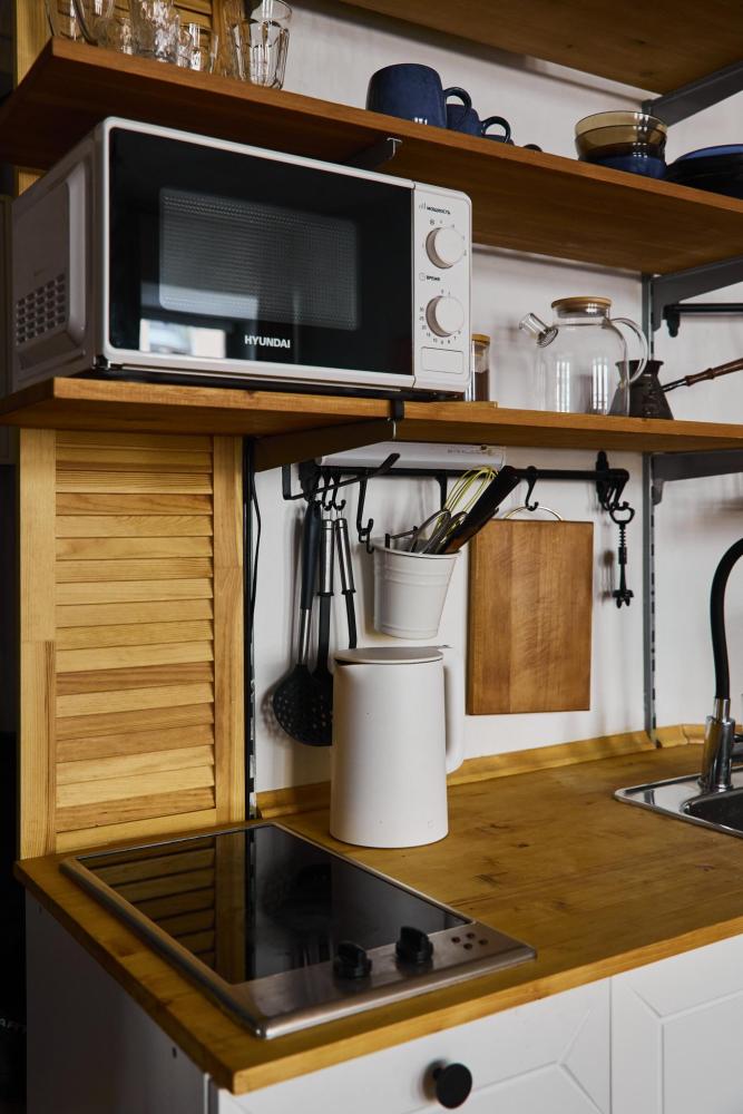 Уют и комфорт: · Окна выходят на улицу · Стильный интерьер с продуманной планировкой · Большая удобная кровать с ортопедическим основанием · Квартира для двух гостей Полностью оборудованная кухня: · Плита, микроволновая печь, холодильник · Красивая посуда и столовые приборы · Обеденный стол для приятных трапез · Чай, кофеварка, сахар и специи в качестве комплимента Современные удобства: · Смарт-ТВ, Wi-Fi и проводной интернет · Утюг, фен, вентилятор и обогреватель · Многоуровневое освещение и множество розеток · Стиральная машина и средства для уборки · Косметика для душа, свежее постельное белье и полотенца Дополнительные мелочи: Мы позаботились о каждой детали: · Ватные палочки и диски · Одноразовые тапочки · Игры настольные · Плечики, сушилка и гладильная доска, утюг