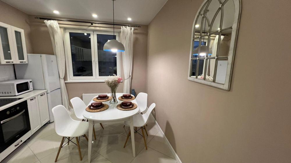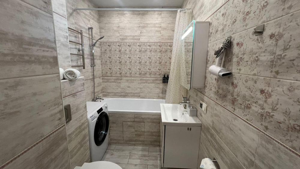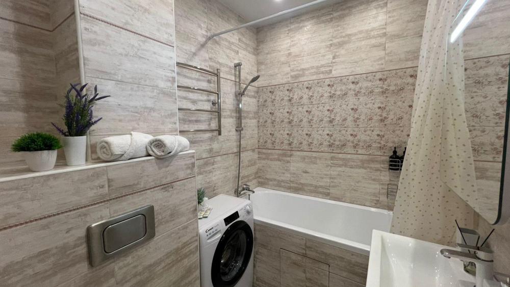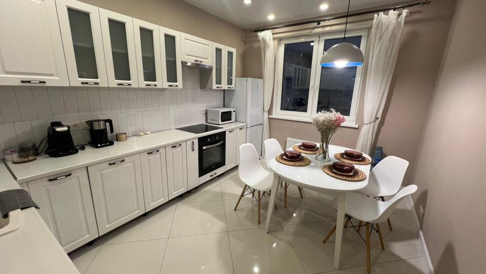 Уют и комфорт: · Из окон прекрасный вид на город · Стильный интерьер с продуманной планировкой · Две большие двухспальные кровати и раскладной диван с ортопедическим матрасом · Квартира для шести гостей · Просторный шкаф и комод для хранения вещей Полностью оборудованная кухня: · Плита, микроволновая печь, холодильник · Красивая посуда и столовые приборы · Обеденный стол для приятных трапез · Чай, кофеварка, сахар и специи в качестве комплимента Современные удобства: · Смарт-ТВ, Wi-Fi и проводной интернет · Утюг, фен, вентилятор и обогреватель · Многоуровневое освещение и множество розеток · Стиральная сушильная машина и средства для уборки · Косметика для душа, свежее постельное белье и полотенца Дополнительные мелочи: Мы позаботились о каждой детали: · Ватные палочки и диски · Игры настольные · Плечики, сушилка и гладильная доска, утюг