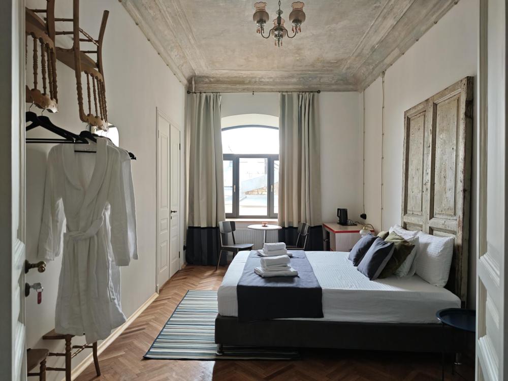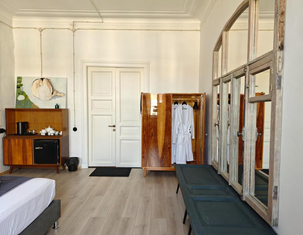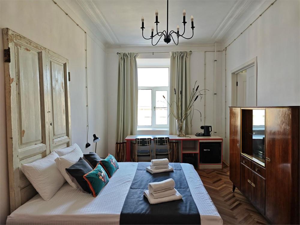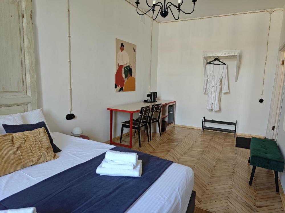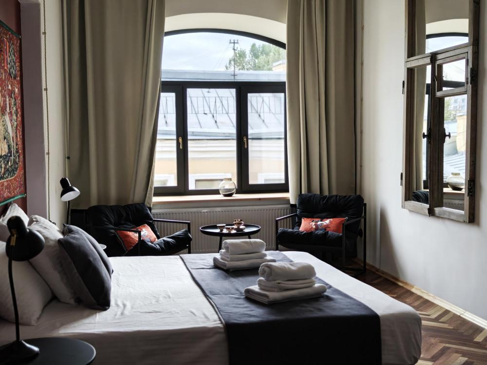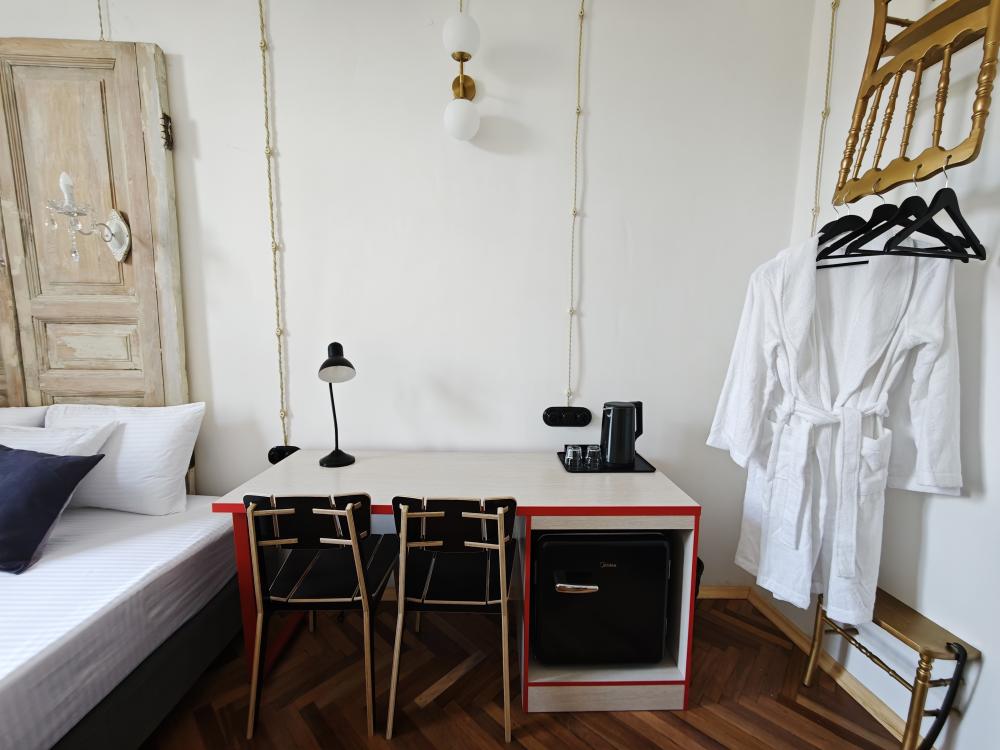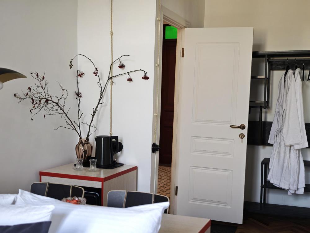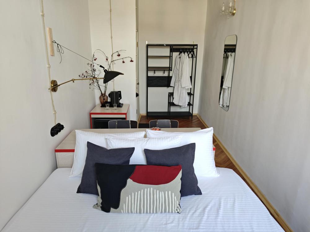 Уютная комната для 2 гостей, оборудованная всем необходимым для комфортного проживания. В комнате: двуспальная или 2 односпальные кровати, чайник, мини-холодильник. Гостям предоставляются халаты, полотенца и постельное белье. Санузел и душевые общие. Комнаты расположены на 5 этаже без лифта.
