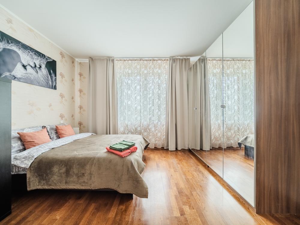 Комфортная , уютная большая двухкомнатная квартира в современном доме в Московском районе Санкт-Петербурга. Квартира прекрасно подойдет для проживания до- 6 гостей! В квартире- 5 отдельных спальных мест. ✨ В КВАРТИРЕ ВЫ НАЙДЕТЕ ВСЕ НЕОБХОДИМОЕ ДЛЯ КОМФОРТНОГО ПРОЖИВАНИЯ: ✔️ 1-комната: двухспальная кровать, двухспальный диван. 2- комната: , двуспальная кровать , тахта. Кухня: двухспальный диван (доп. место) ✔️ постельное белье , полотенце и туалетные принадлежности, тапочки ( жидкое мыло, гель для душа) ✔️ Бесплатный Wi-Fi; ✔️ техника ( 2 телевизора СМАРТ,стиральная машина, варочная панель, духовой шкаф, холодильник, посудомоечная машина, микроволновая печь, электрочайник, фен, утюг, гладильная доска, сушилка для белья). ✔️ посуда и кухонные принадлежности для приготовления еды, в том числе: кастрюли, сковородки, тарелки, чашки, бокалы, стаканы, столовые приборы. ✔️Также для наших гостей в квартире имеется -чай, сахар, масло раст.. ? По запросу предоставляется детская кроватка и детский стульчик.(100 рублей сутки) ?Аэропорт «Пулково» 10-15 минут езды на такси. Автомобильная дорога М-11 "Россия", Также рядом расположены въезд на КАД и ЗСД - 10 минут по Пулковскому или Московскому шоссе. Лего добраться и на общественном транспорте или пешком от ст. метро Звездная или Московская: на общественном транспорте от станции м.Московская автобусами маршрутов 13, 13А, 39, 141, 150, 155, 187, 301; пешком от станции м.Звёздная -15-20 минут, от станции м.Московская-25 минут. До центра культурной столицы можно за 15-25 минут на машине по Московскому пр. в зависимости от трафика либо на метро со станций м.Московская или м.Звездная.