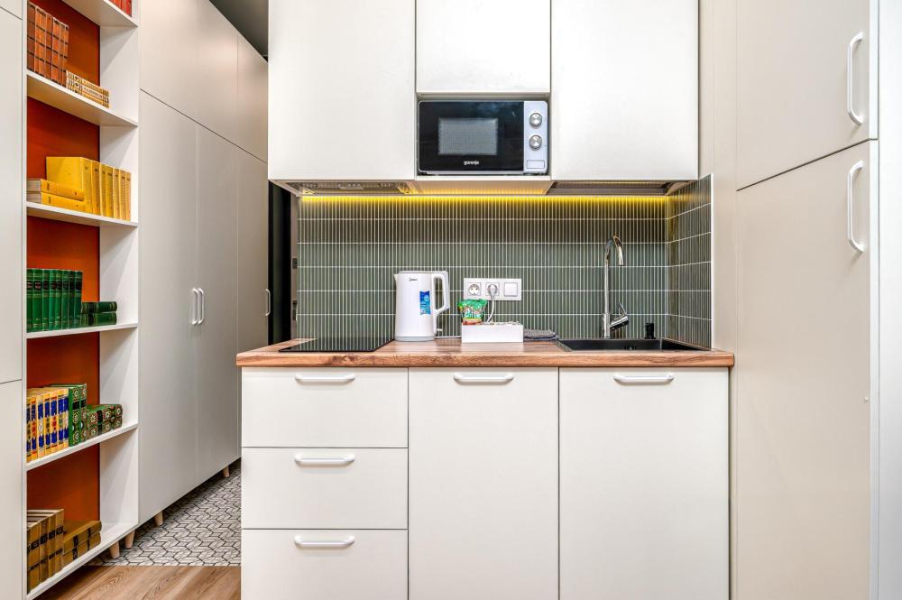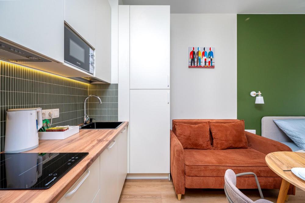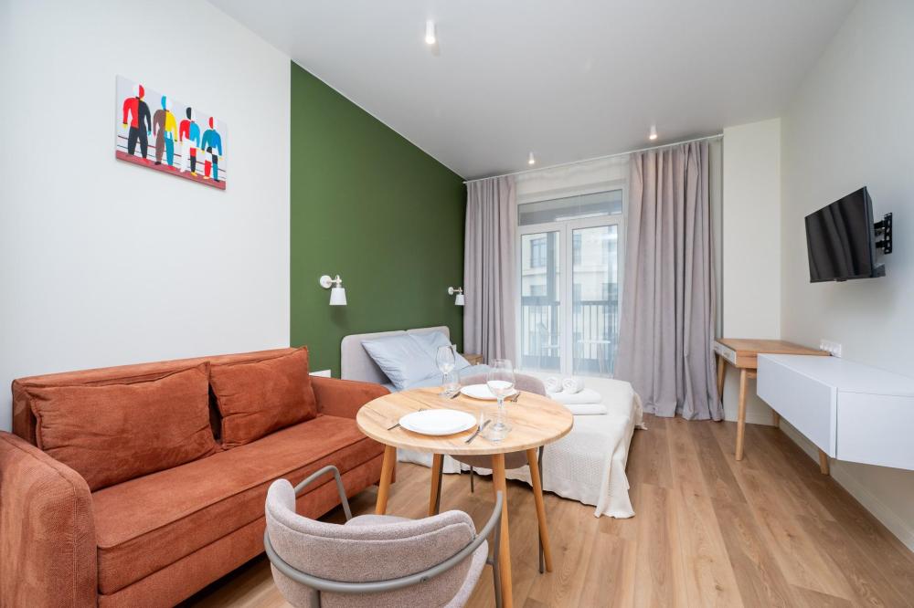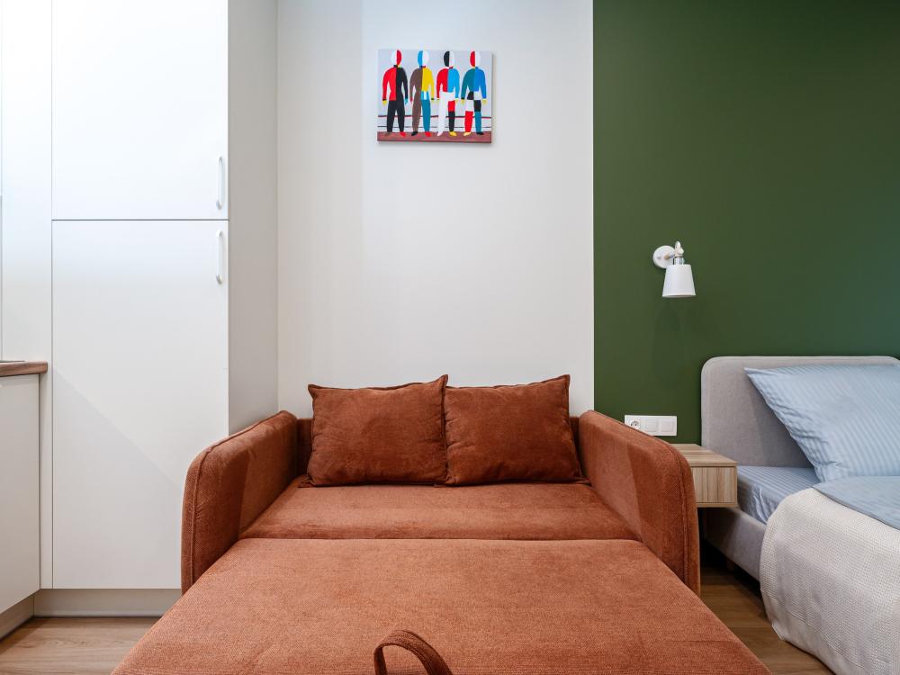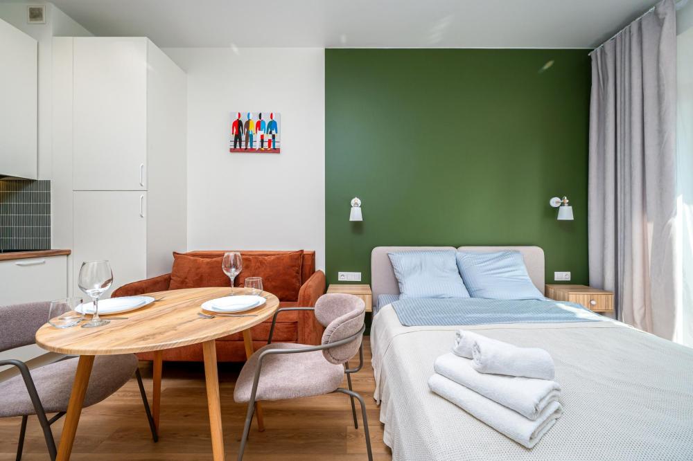 Комфортное размещение для 4 человек: двуспальная кровать (140х200) и раскладной диван (120х190). Квартира полностью соответствует всем фото. В кухонной зоне: посудомоечная машина, микроволновая печь, холодильник, чайник, посуда и столовые приборы. Чай, кофе, сахар, соль, конфеты. В ванной комнате: туалет, душ, стиральная машина, фен, утюг, набор гигиенических средств, тапочки, полотенца для ног, рук и тела на каждого гостя. В местах отдыха: постельное белье на каждого гостя, ЖК телевизор со Smart TV, высокоскоростной Wi-Fi в номере бесплатно, кондиционер, шторы блэкаут, рабочее места с дополнительным освещением, зеркало в полный рост.