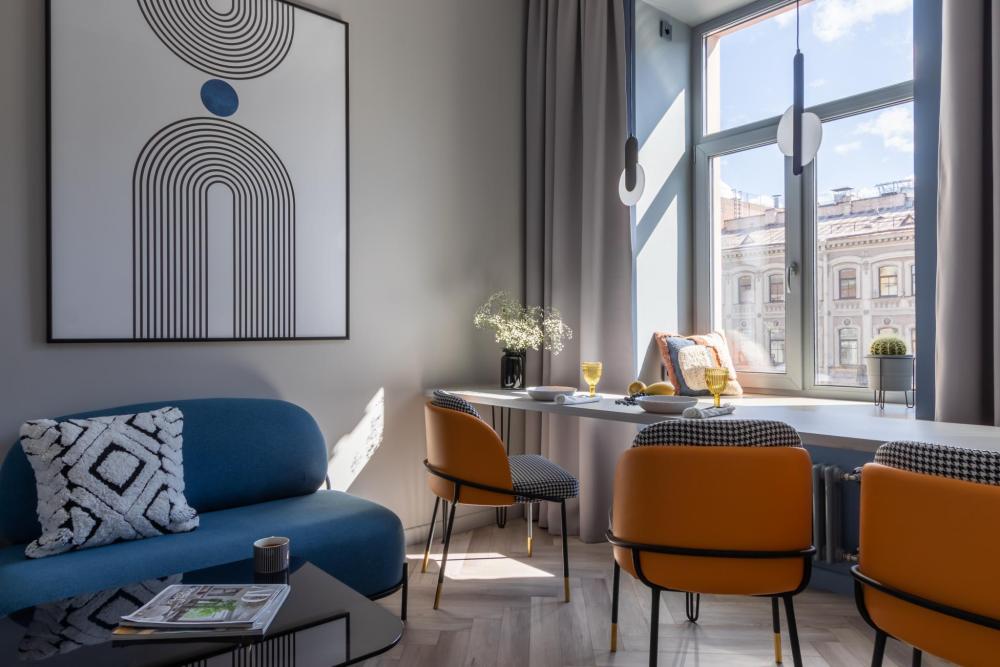 Стильная квартира с дизайнерским ремонтом на Невском проспекте. Идеально для двоих гостей, желающих проживать в самом сердце Петербурга. Бесконтактный заезд 24/7 и поддержка менеджера по всем вопросам. Есть парковка. Предоставляются отчетные документы LetYourFlat "NEO" Пространство, в котором каждая деталь, от дизайнерской мебели до света, продумана для создания идеальной картины. Широкое окно с видом на Невский проспект — ваш личный портал в вечно бурлящую жизнь города. Особенности квартиры: Уникальный современный дизайн с синей отделкой и красными акцентами Комфортная спальня с большой кроватью king size (180x200 см) Окна с видом на Невский проспект Телевизор со Smart TV Полностью оборудованная кухня: посудомоечная машина, микроволновка, чайник, холодильник Стиральная машина и вся необходимая техника Расположение: Дом 96 на Невском проспекте - лучшая локация для знакомства с Петербургом. В шаговой доступности: Дворцовая площадь, Эрмитаж, Казанский собор, множество ресторанов и кафе. Идеальный выбор для пары, ценящей стиль, комфорт и лучшую локацию в городе.