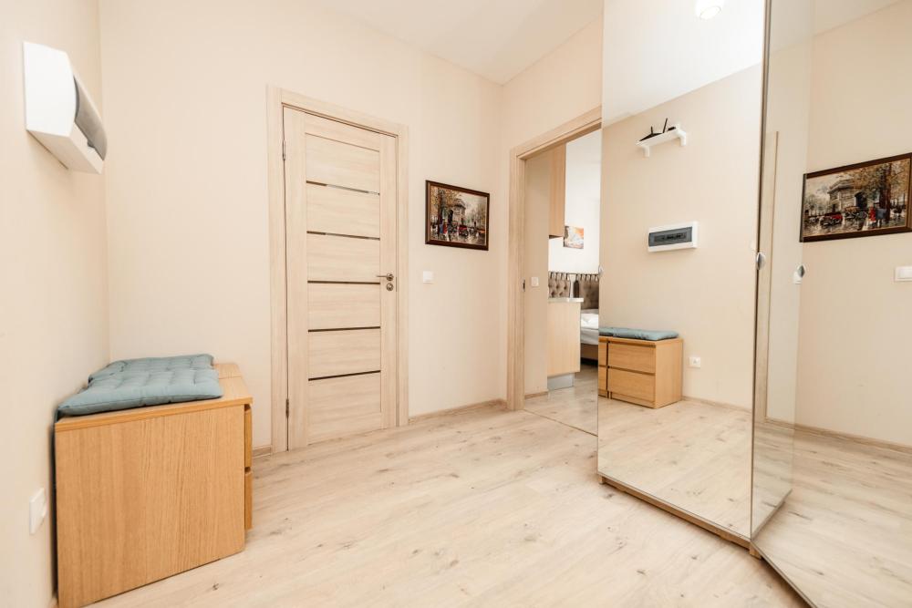 Апартаменты расположены недалеко от центра. Рядом находятся: гипермаркет "Перекресток", большая наземная бесплатная парковка и платная подземная, через дорогу большой и красивый парк Лесотехнической академии, на первом этаже комплекса - ресторан Лесопилка, СПА-комплекс с тренажёрным залом, бассейном, сауной. Во дворе оборудованная детская площадка. Рядом автозаправка и автомойка. Студия оборудована всем необходимым для комфортного проживания: телевизор, быстрый wi-fi, кухня (варочная поверхность, микроволновая печь, чайник, холодильник, посуда), санузел с ванной или душевой кабиной, стиральная машина, гладильные принадлежности, фен, шкафы. В студии двуспальная кровать, есть обеденный стол и рабочее место. Утеплённый балкон с креслами. Проживание с животными возможно по предварительной договоренности, за отдельную плату, взимается обязательный депозит за сохранность имущества, при выезде возвращается.