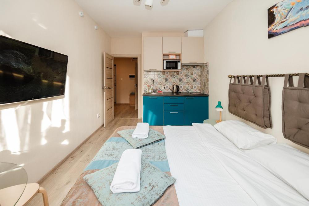 Апартаменты расположены недалеко от центра. Рядом находятся: гипермаркет "Перекресток", большая наземная бесплатная парковка и платная подземная, через дорогу большой и красивый парк Лесотехнической академии, на первом этаже комплекса - ресторан Лесопилка, СПА-комплекс с тренажёрным залом, бассейном, сауной. Во дворе оборудованная детская площадка. Рядом автозаправка и автомойка. Каждая студия оборудована всем необходимым для комфортного проживания: телевизор, быстрый wi-fi, кухня (варочная поверхность, микроволновая печь, чайник, холодильник, посуда), санузел с ванной или душевой кабиной, стиральная машина, гладильные принадлежности, фен, шкафы. В студии возможно размещение 2-х человек: двуспальная кровать или по желанию две односпальные, есть обеденный стол и рабочее место. Возможно размещение ребенка до 6 бесплатно на основном месте. Утеплённый балкон с креслами. Проживание с животными возможно по предварительной договоренности, за отдельную плату, взимается обязательный депозит за сохранность имущества, при выезде возвращается.